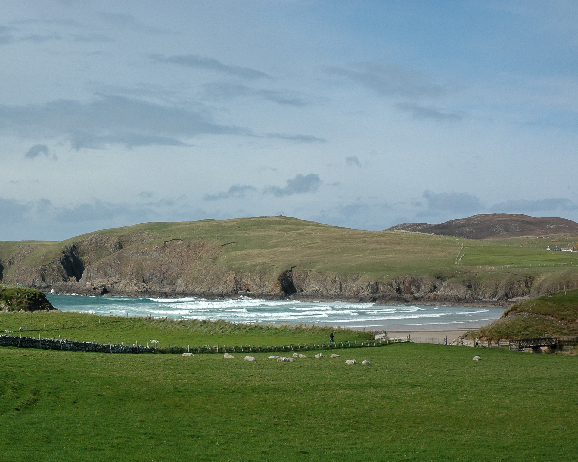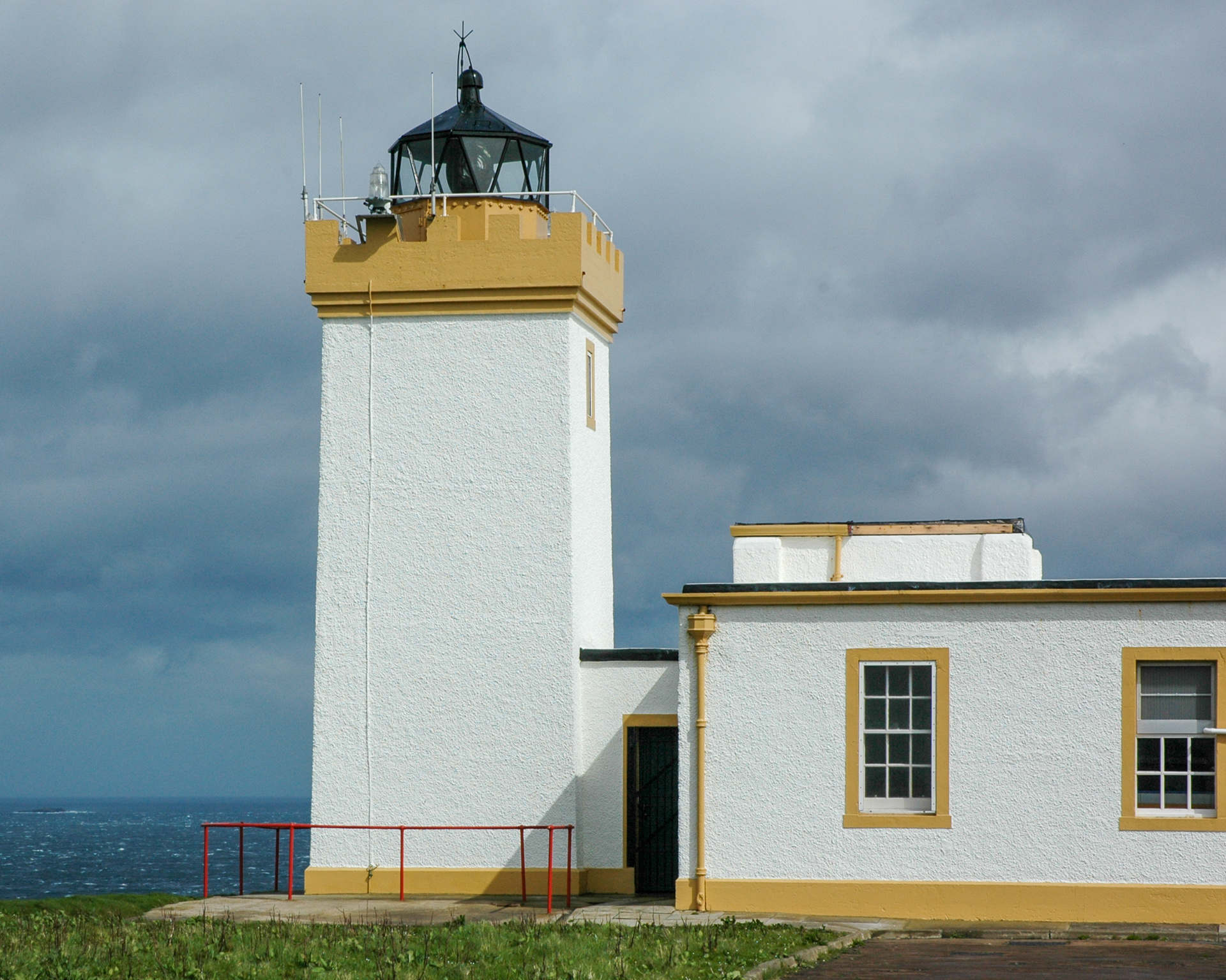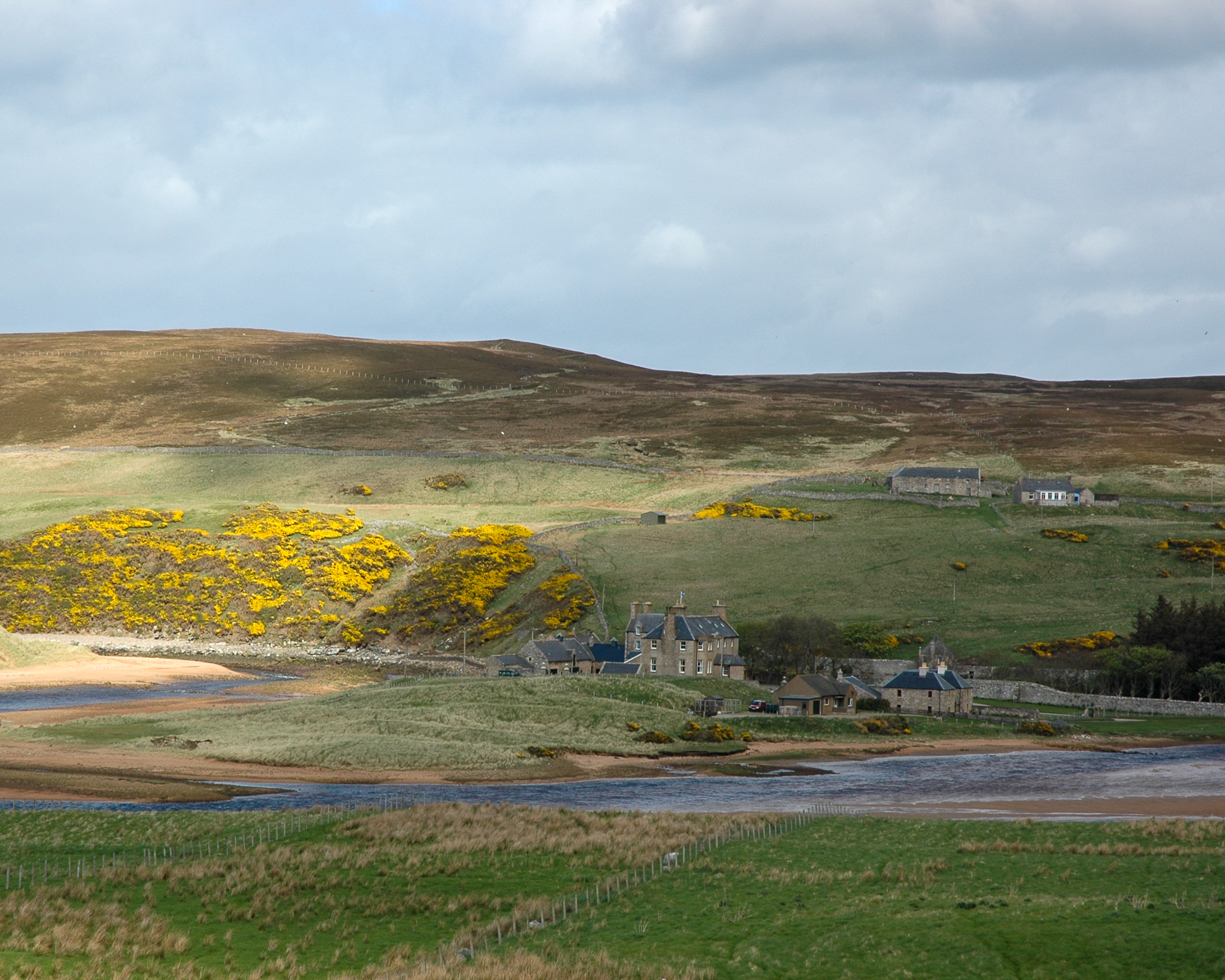Da sind wir nun, in John O’Groats am Fotopunkt oberhalb des kleinen Hafen, während eines der vielen Regenschauer. Im Pub dort machten wir Pause, und dann ging es weiter, zunächst zum Duncansby Head Lighthouse und anschliessend entlang der Nordküste Richtung Osten.