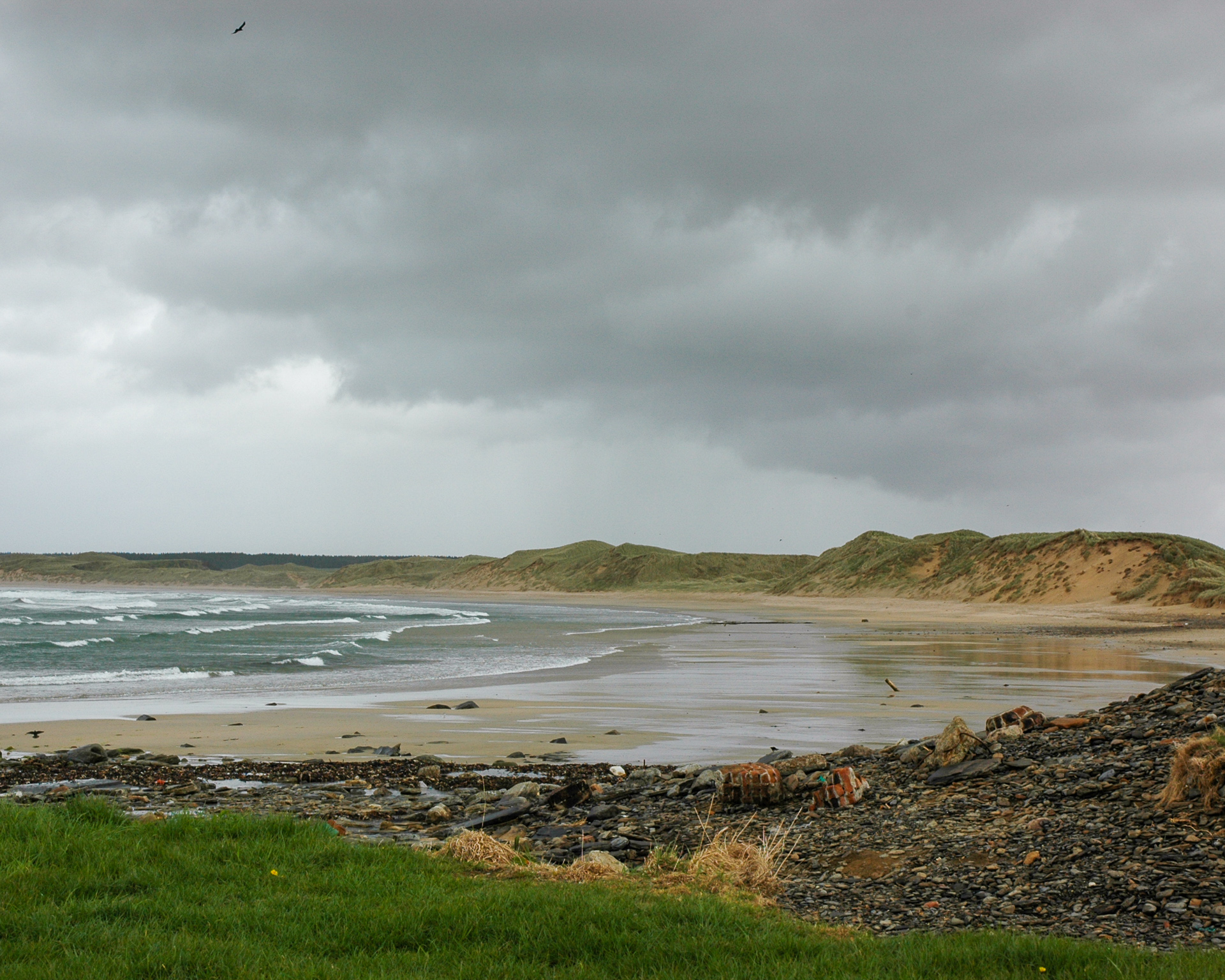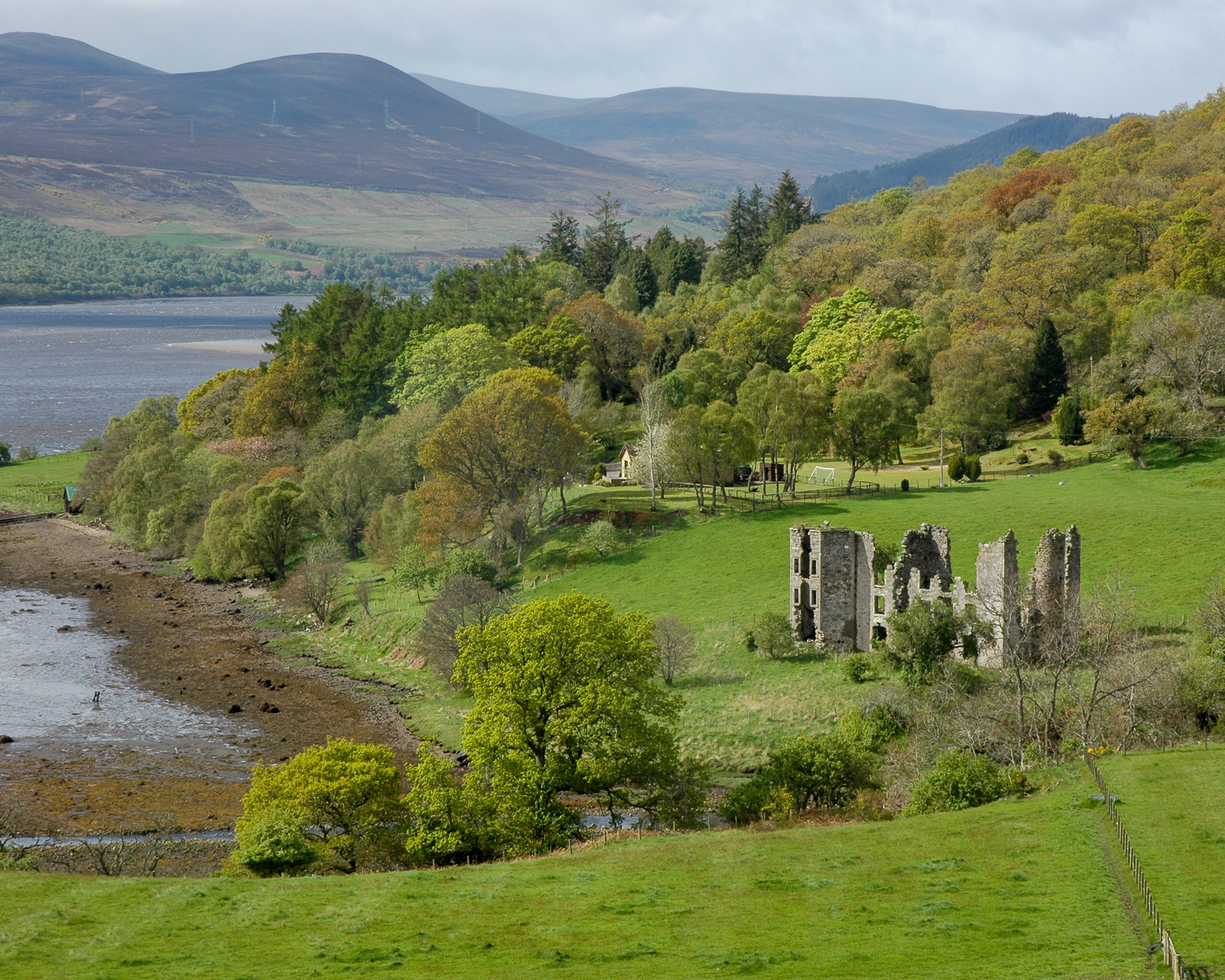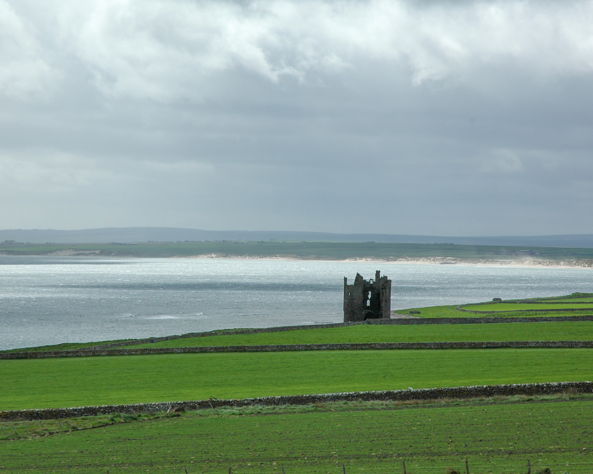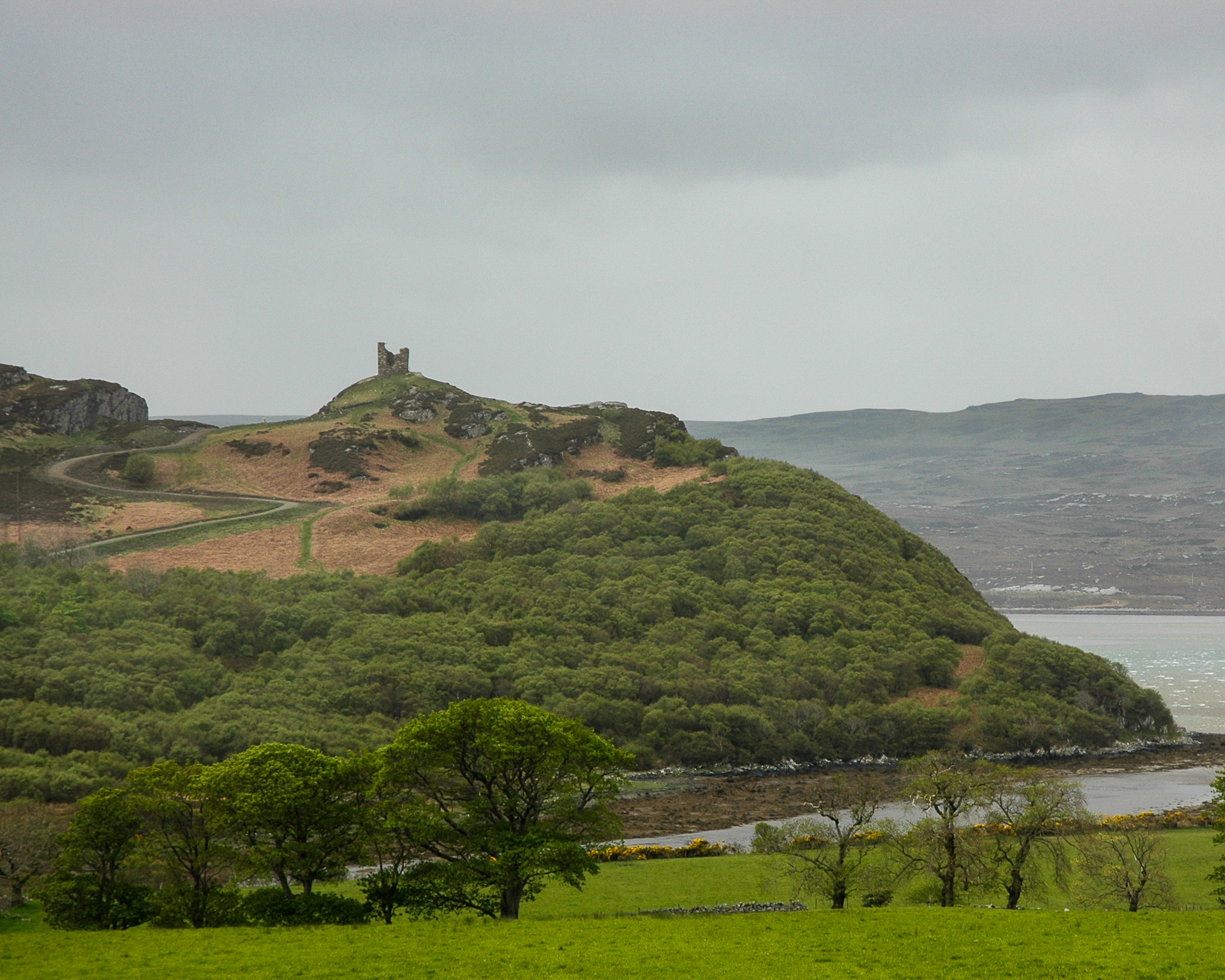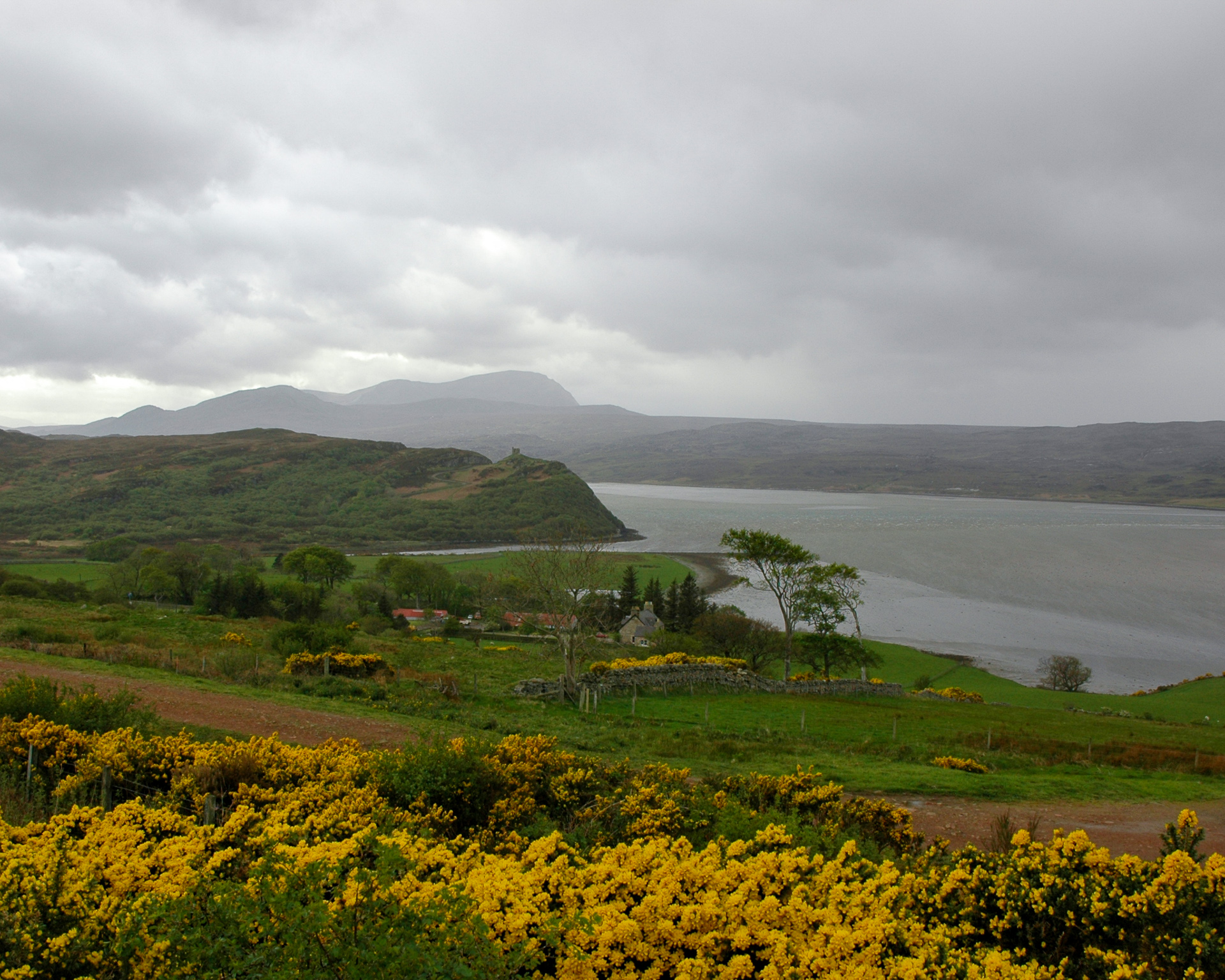 Es wurd dann so langsam spät, und der Weg zurück war auch ziemlich weit, so das wir nicht die gesamte nördliche Küste abgefahren sind. Bei dem kleinen Örtchen Tongue wandten wir uns südwärts. Gegenüber auf dem Hügel liegt ziemlich malerisch (gerade bei dem Wetter) Castle Varrich. Zwei Fotos davon: