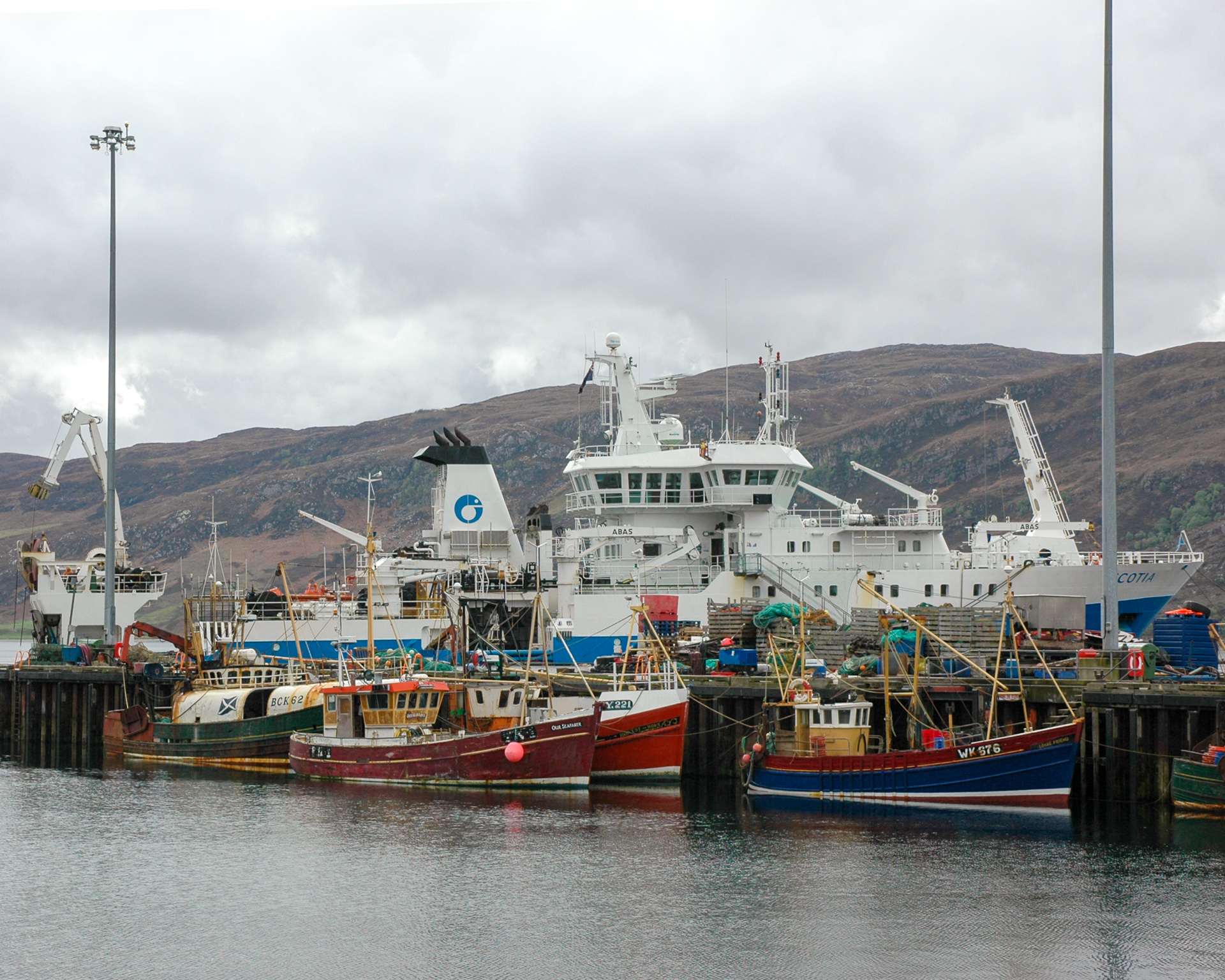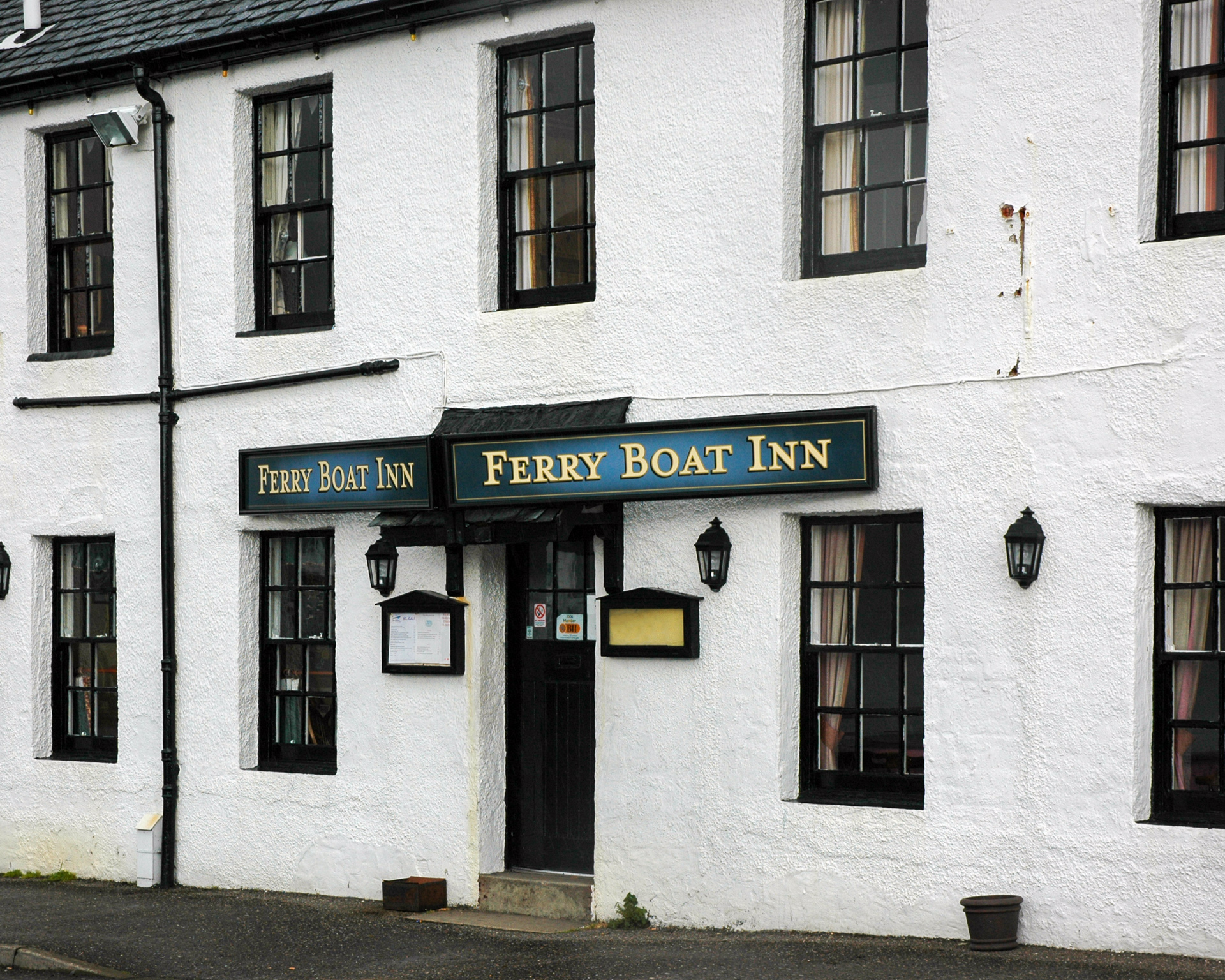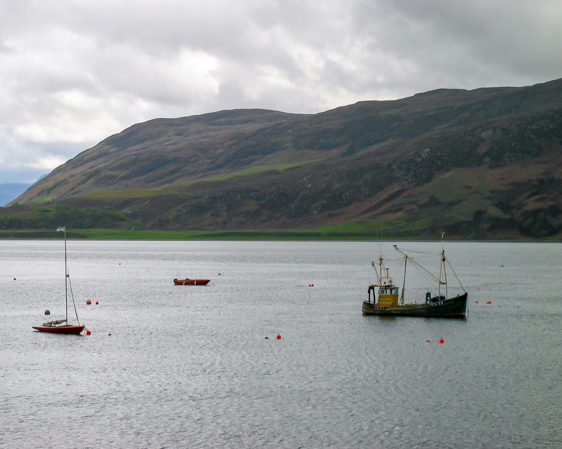 Fotografieren fand heute kaum statt, es gibt einen Fotostopp auf der Hinfahrt, ein paar Fotos aus Ullapool und dann noch mal einen Stop auf der Rückfahrt. In Ullapool machten wir Mittagspause in einem Pub (nicht dem fotografierten Ferry Boat Inn, sondern irgendwo in der Innenstadt). Das ganze war recht spät, so gegen 14 Uhr waren wir erst in Ullapool, was die Vermutung aufkommen lässt, wir hätten heute die Glen Ord Distillery besichtigt.