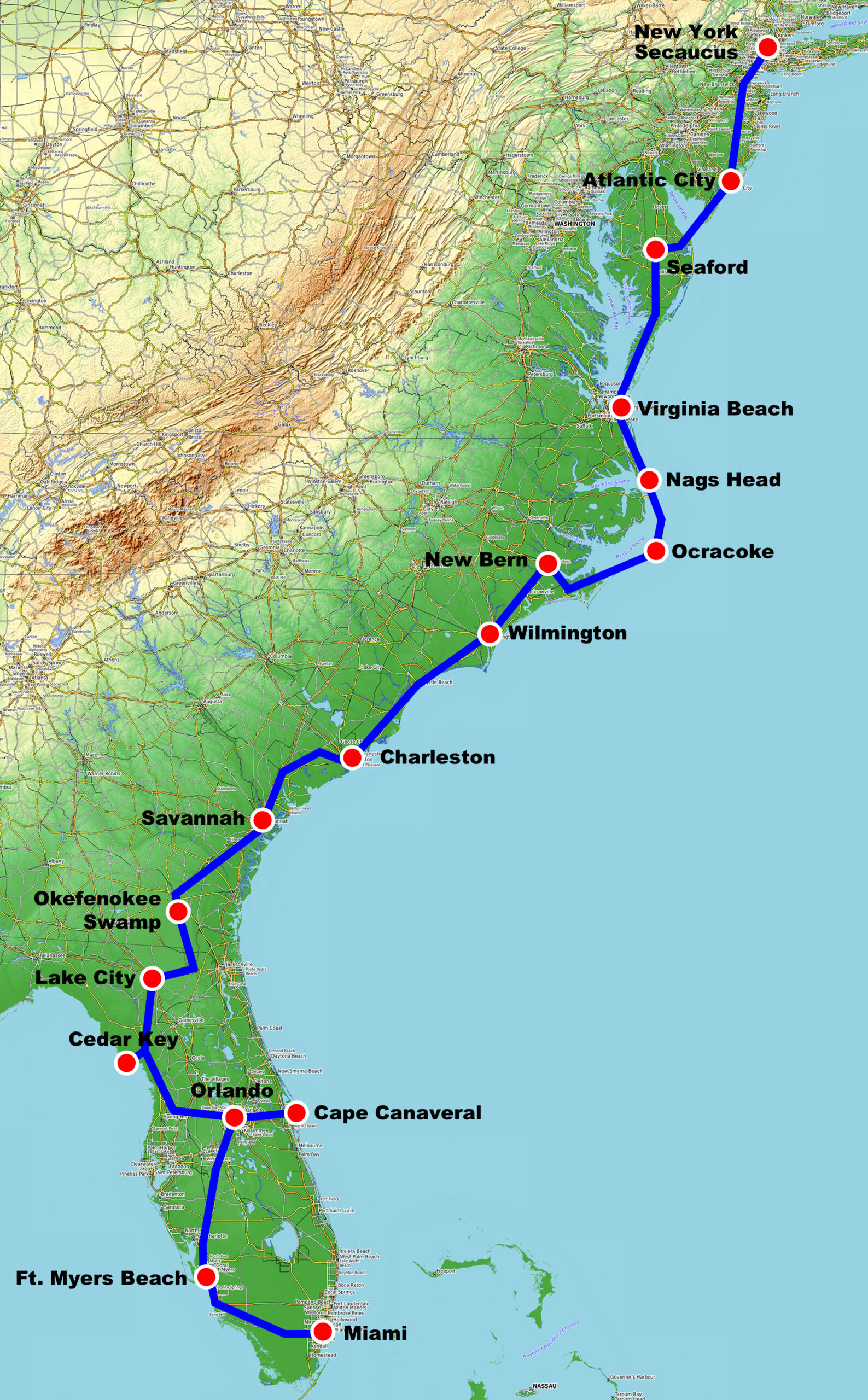 Unsere Tour führte von New York nach Miami entlang der gesamten Ostküste, und es zeigte sich das drei Wochen dafür recht wenig Zeit sind. Bereits bei der Planung musste alles drumherum herausgenommen werden, letztendlich bleibt nur Zeit für die Hauptsehenswürdigkeiten entlang der Strecke. Außer New York hatten wir z.B. keine der großen Städte im Nordosten im Programm, und im Süden reichte es auch nicht wirklich bis Miami (oder gar bis auf die Keys).