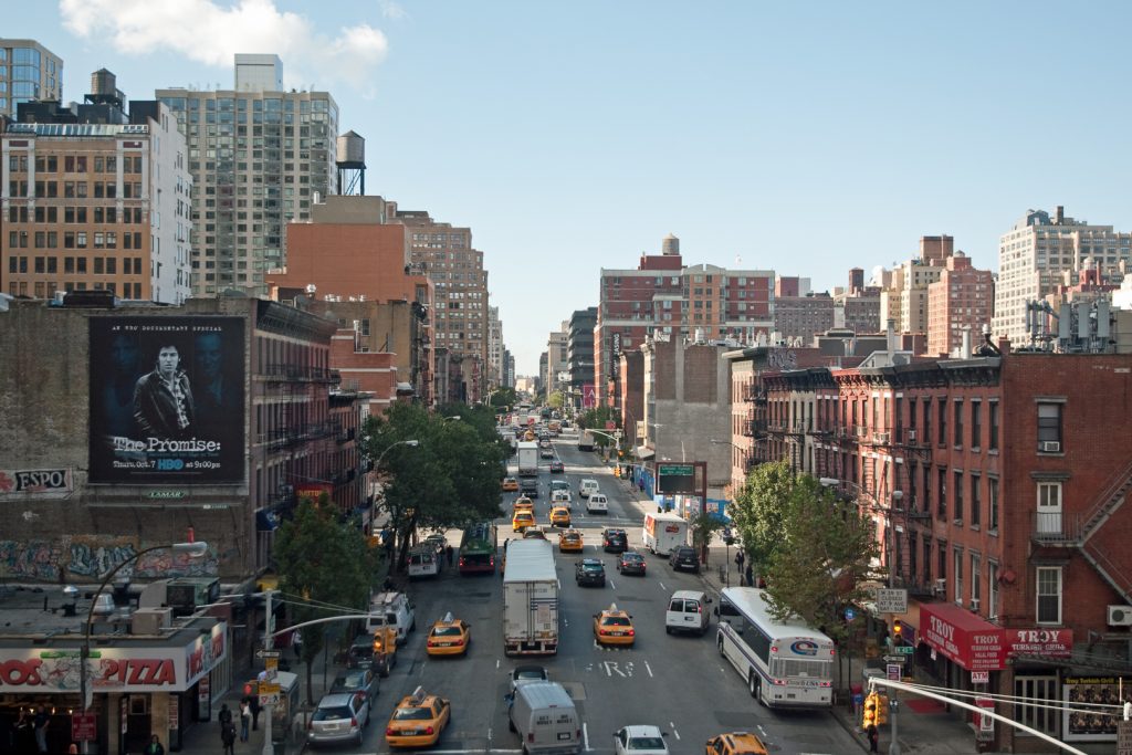 Die aufgeständerte Eisenbahn am Hudson ist auch stillgelegt und jetzt zum ‚Highline Park‘ geworden und kann abgelaufen werden. Von dort bieten sich interessante Blicke auf die Straßen New Yorks.