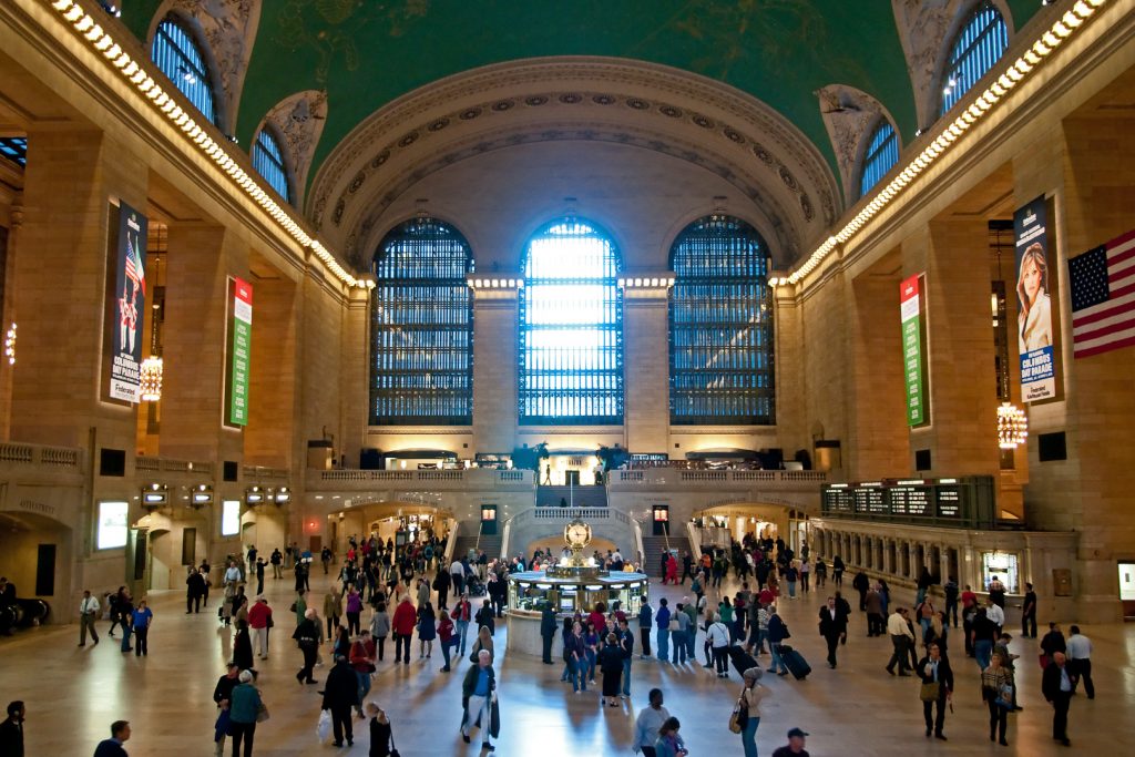 Der Bus hält unterwegs noch an einem großen Park and Ride Platz, wo viele Pendler zusteigen und ist dann nach knapp 30 Minuten auf der anderen Seite des Hudson in New York. Der Busbahnhof selber ist hell und sauber – bis auf die Ausstiegshaltestelle, dort muss man je nach Halteplatz einige Meter auf einem nicht mal einen Meter breiten Bürgersteig zwischen Wand und Bus bis zu einem engen Treppenabgang laufen – danach wird es dann besser. Auch die Abfahrgates sind etwas gewöhnungsbedürftig, aber sauber und hell und verhindern Vordrängeln recht efektiv.