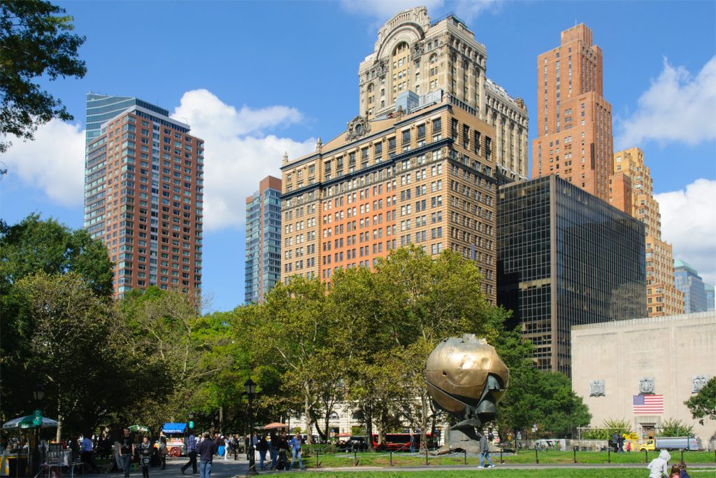 Mit der U-Bahn fuhren wir bis Bowling Green und besichtigten das Südende Manhattans. Battery Park, den Blick auf Ellis Island und die Freiheitsstatue, und die langen Schlangen an den Fähren zur Freiheitsstatue. Danach gings langsam nordwärts zu ‚Ground Zero‘. Nach einer kurzen Pause am Hudson River gingen wir Richtung Brooklyn Bridge, den Aufgang zur Brücke verpassten wir leider, und unsere müden Füsse ermunterten uns den Gang über die Brücke aufs ’nächste Mal‘ zu verschieben. Mittagspause machten wir an der Pier 17/18 im dortigen historischen Hafengebiet.