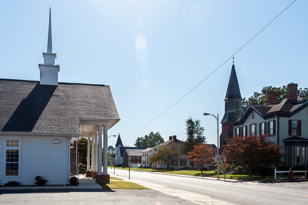In einem der Örtchen halten wir dann an und laufen ein bisschen durch Zentrum, Pocomoke heisst es.