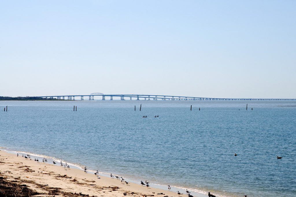 Kurz darauf geht es über die Grenze nach Virginia und dann steht auch ein Höhepunkt des Tages an, die Überquerung der Chesapeake Bay. Eine Fähre braucht man dafür nicht mehr, mittels Brücken und Tunnels geht es nach Norfolk. 12 Dollar kostet der Spaß pro Auto, und nach der Toll Plaza halten wir auf einem Parkplatz erstmal an.