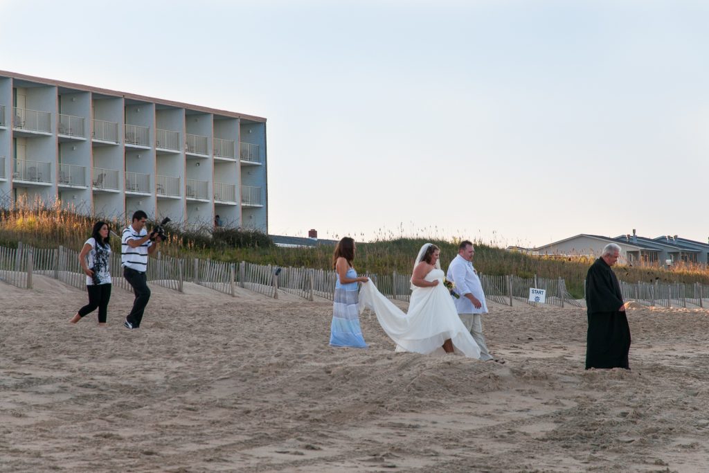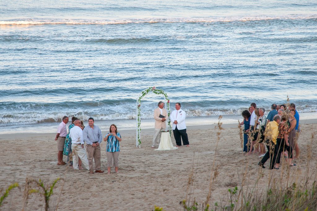 So zum Sonnenuntergang haben wir uns wohnlich eingerichtet und wollen den Strand erkunden. Dort gibt es Romantik auf amerikanische Art zu besichtigen. Am Strand heiraten zwei Paare mehr oder weniger gleichzeitig, etwa 100 Meter voneinander entfernt. Für uns Außenstehende sieht das alles ein bisschen merkwürdig, und nicht wirklich romantisch, aus.