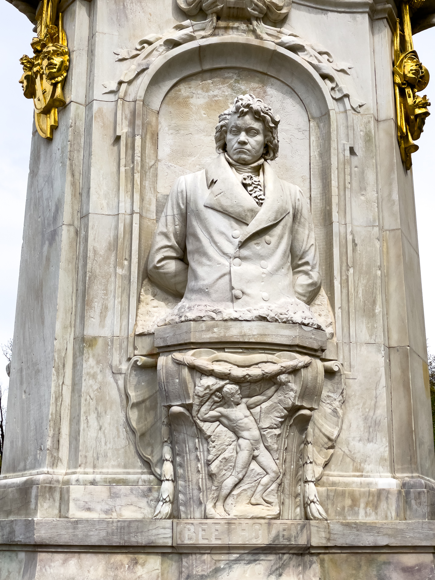Nicht allzuweit entfernt ist das Venusbassin (manchmal Goldfischteich genannt), in dessen Nähe ein Denkmal für Beethoven, Haydn und Mozart steht. Da bin ich anschliessend dran vorbeigekommen.