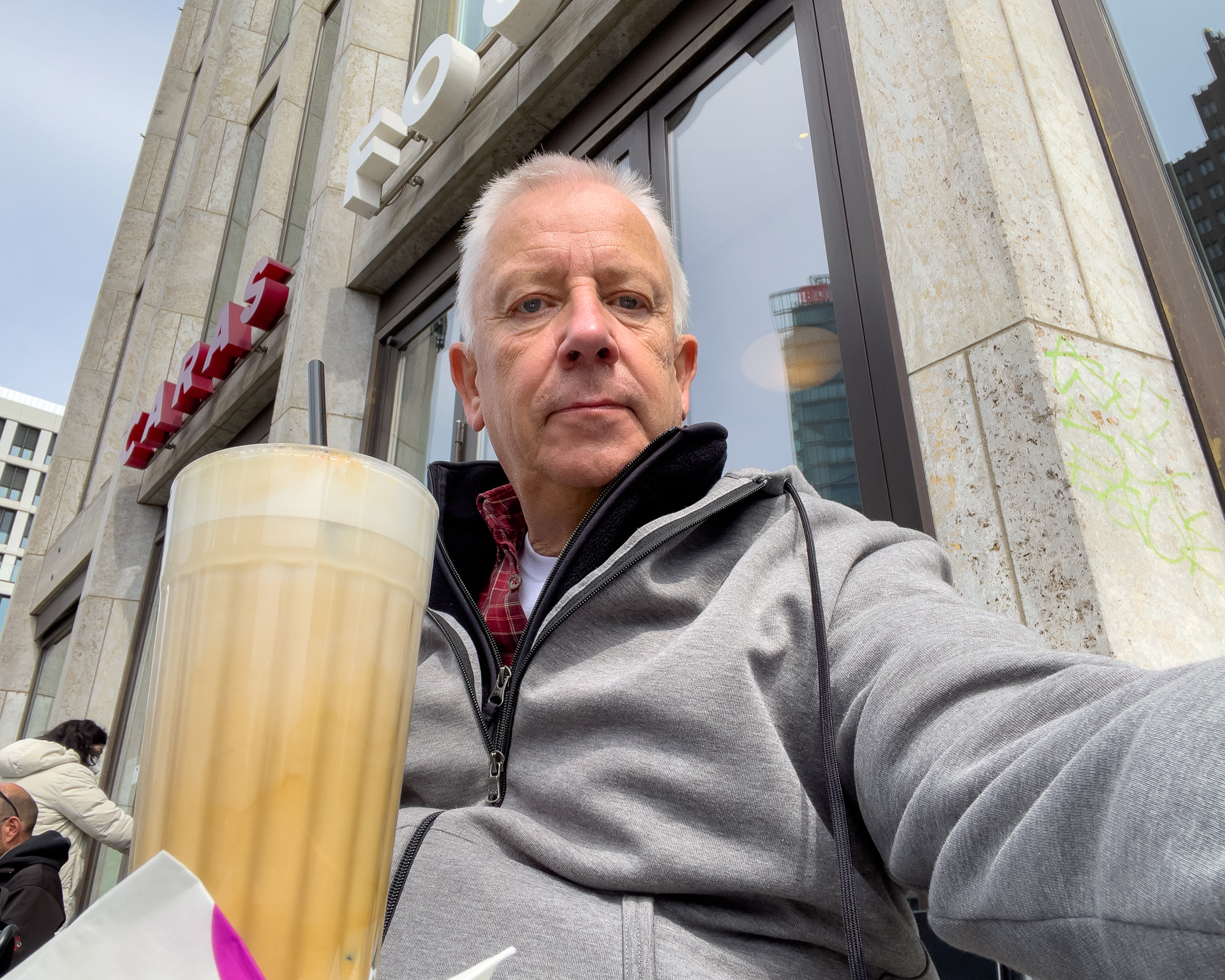 Vorbei am Theater am Potsdamer Platz kam ich dann endgültig zum Potsdamer Platz und hab erstmal eine Pause gemacht mit einem Eiskaffee. Der war nicht nur eher mäßig, ich durfte ihn auch fast doppelt bezahlen, da das Kartenlesegerät genau nach der Meldung „Zahlung erfolgt“ abstürzte, bevor es der eigentlichen Kasse dies mitteilen konnte. Letzendlich fanden die beiden „jungen Damen“, dann doch heraus, wie man einen Beleg der Buchung erstellt.