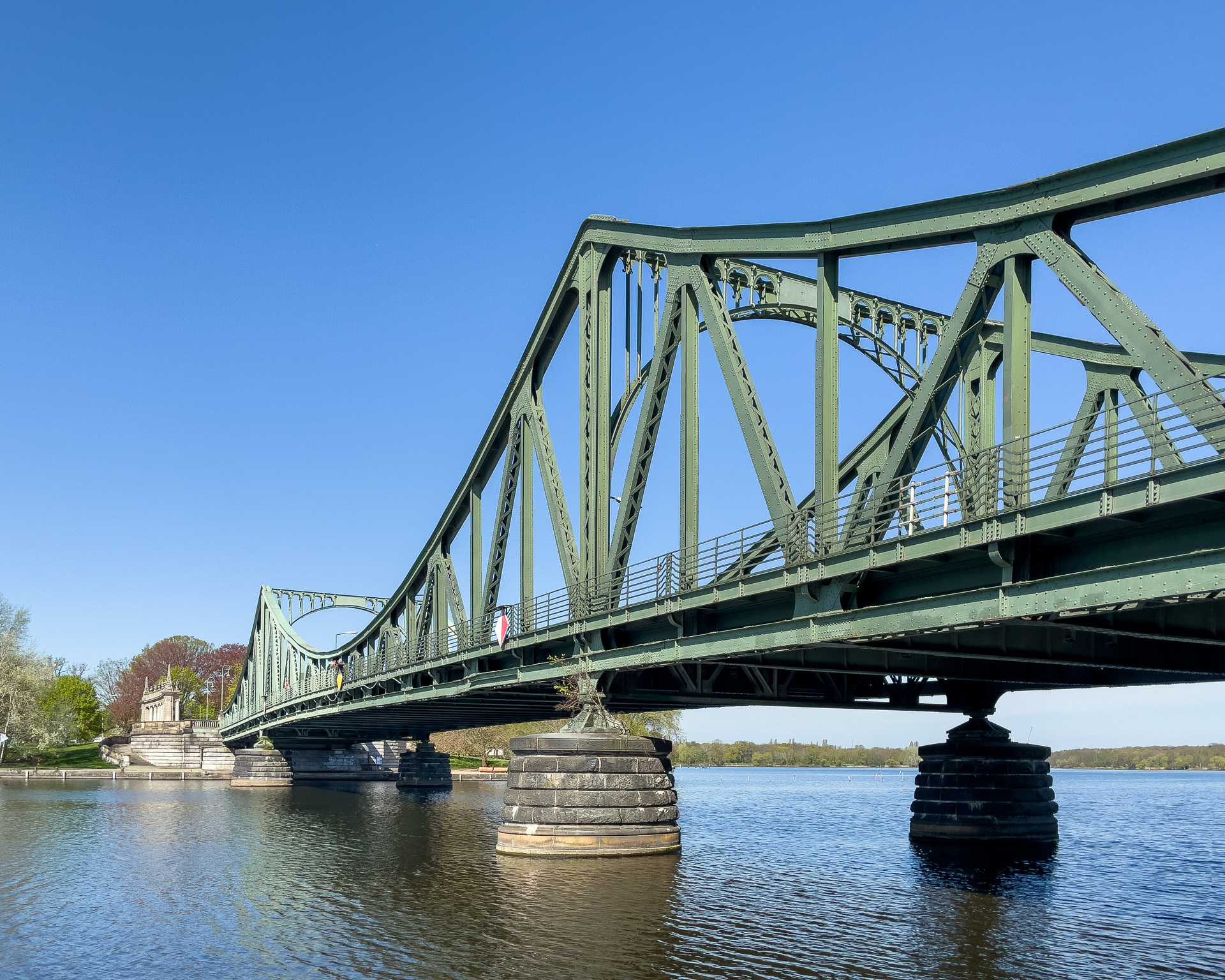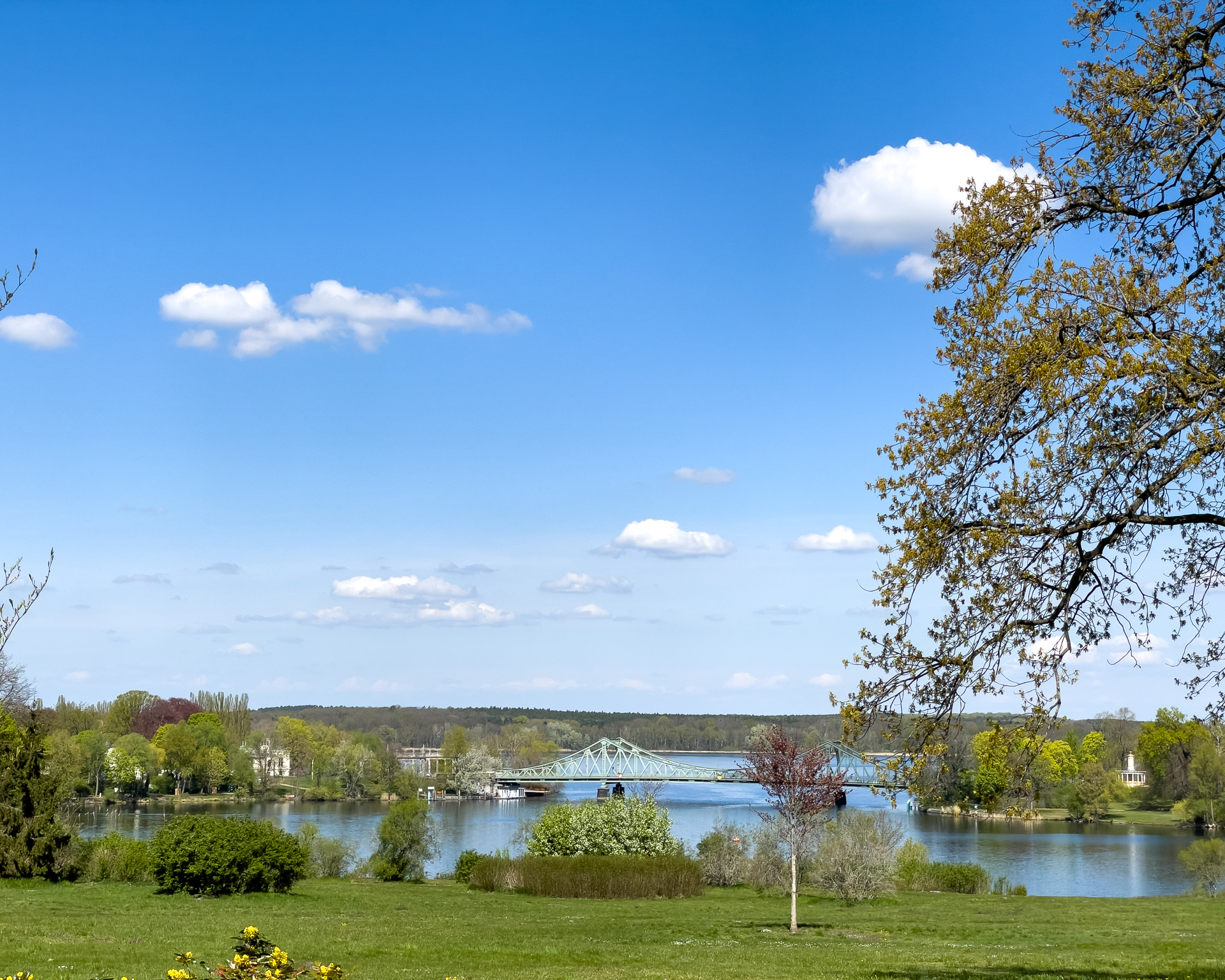 Also ging es mit der S-Bahn und Umsteigen in Wannsee zum Potsdamer Hauptbahnhof und dann mit der Straßenbahn bis zur Endstation Glienicker Brücke. Von hier an waren die Schuhsohlen wieder für die Beförderung zuständig. Als erstes ging es zur Glienicker Brücke überhaupt (die Straßenbahn hält nämlich „einige“ Meter vorher) und dann darüber. Dort wollte ich rechts abbiegen, am Wasser entlang durch Klein Glienicke zum Park Babelsberg. Das war nicht so einfach, es drängt sich der Verdacht auf dass man am Glienicker Jagdschloss Besucher nicht mag, es gab jedenfalls nur verschlossene Tore. Ich musste also ein paar Hundert Meter die Königsstraße Richtung Wannsee weiterlaufen, und konnte bei der Gelegenheit einige Blicke auf Schloss Glienicke richten, was eigentlich nicht geplant war.