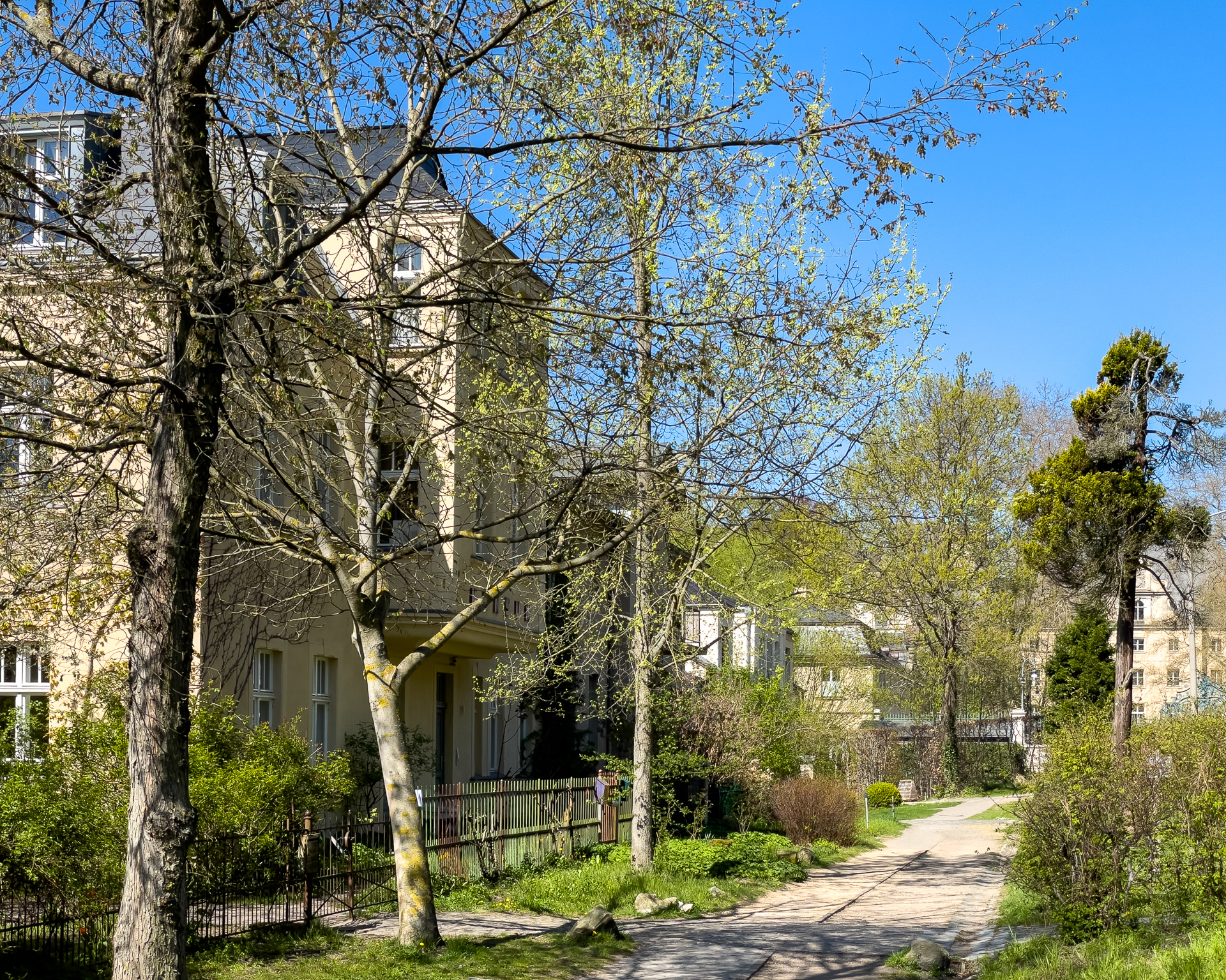 Die Schlossgebäude selber befinden sich wieder hinter einem Zaun, man muss über die Mövenstraße ausweichen um nach Klein Glienicke zum kommen. Heutzutage ist nicht mehr viel davon zu bemerken, aber Klein Glienicke war eine Exklave der DDR auf Westberliner Gebiet und von der Mauer umgeben. So ein bisschen DDR Atmosphäre taucht beim Gang durch den Ort allerdings noch auf.