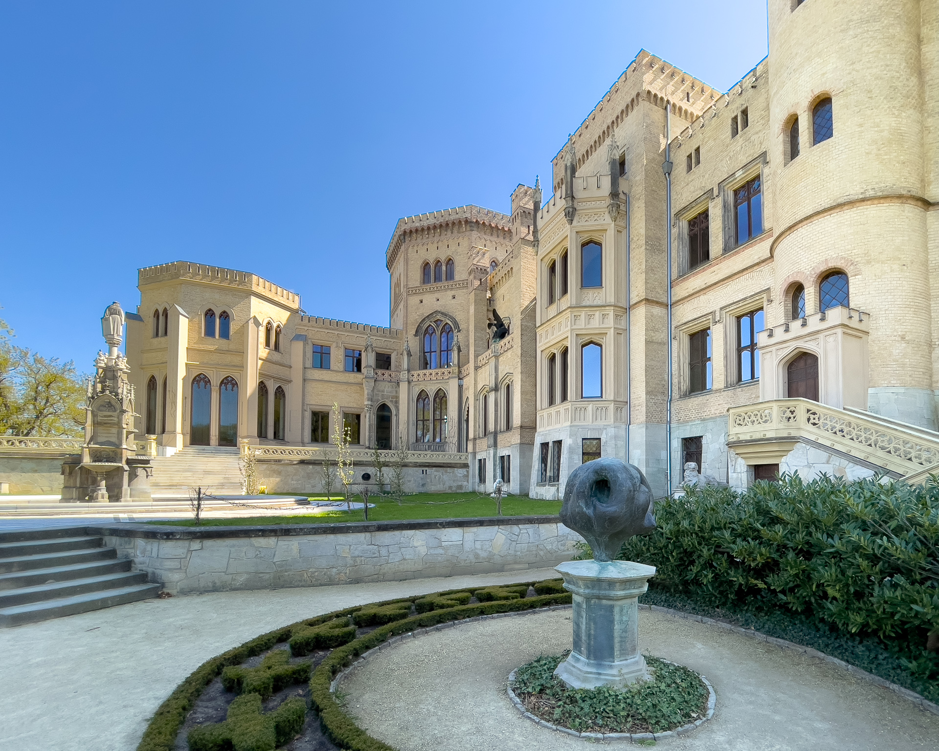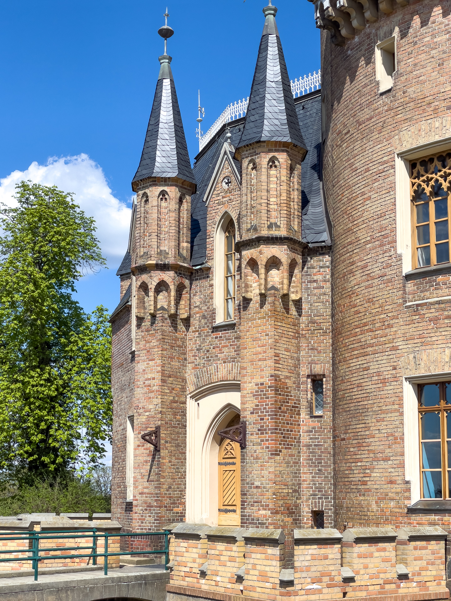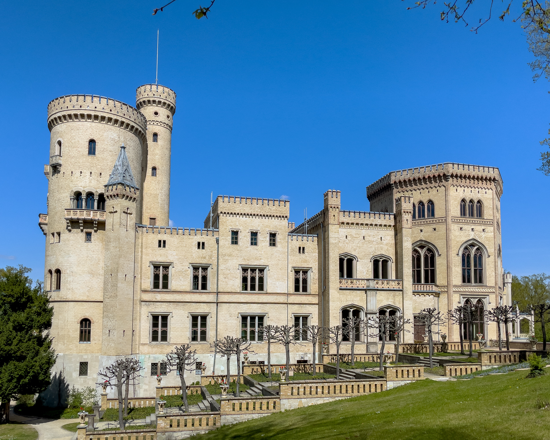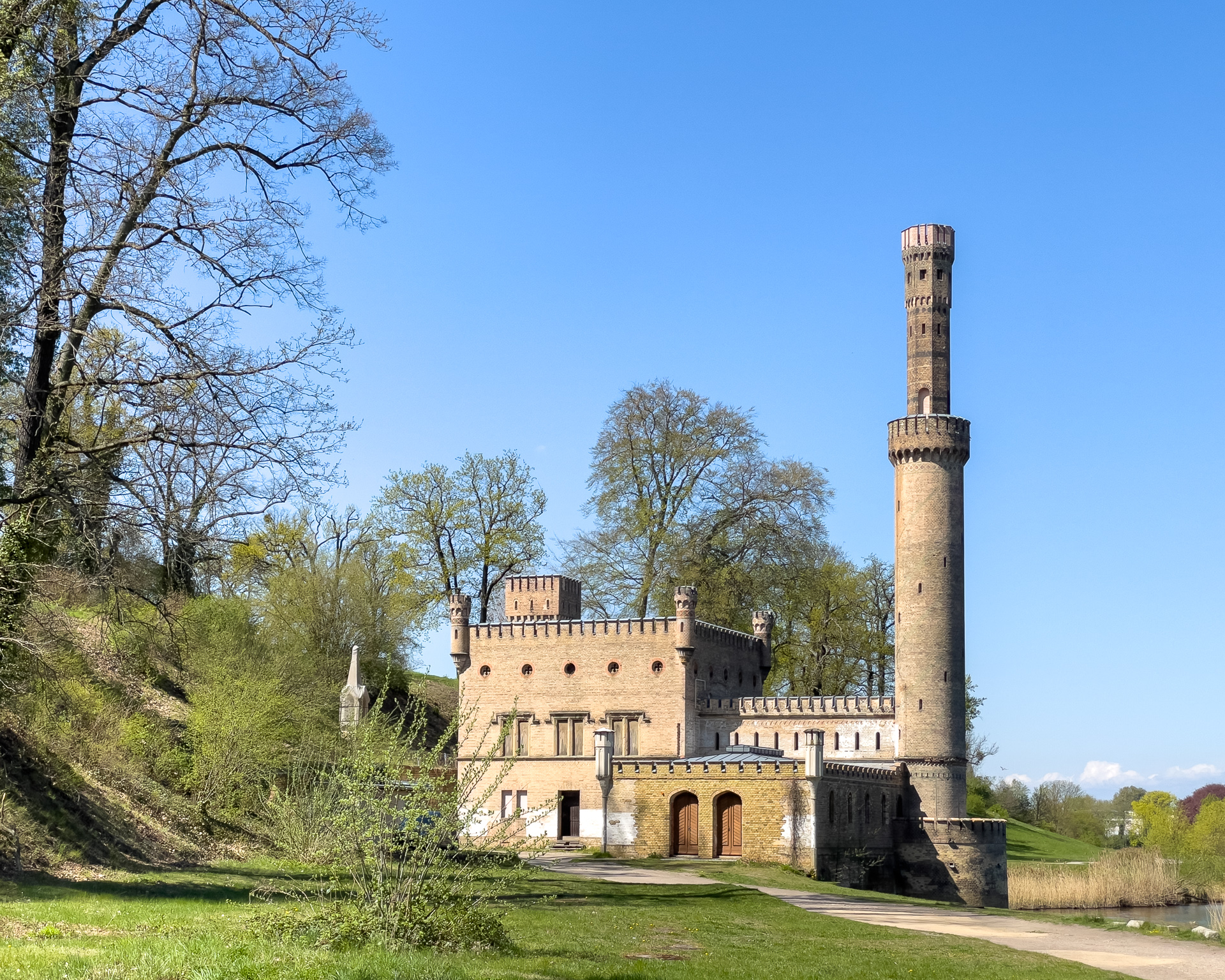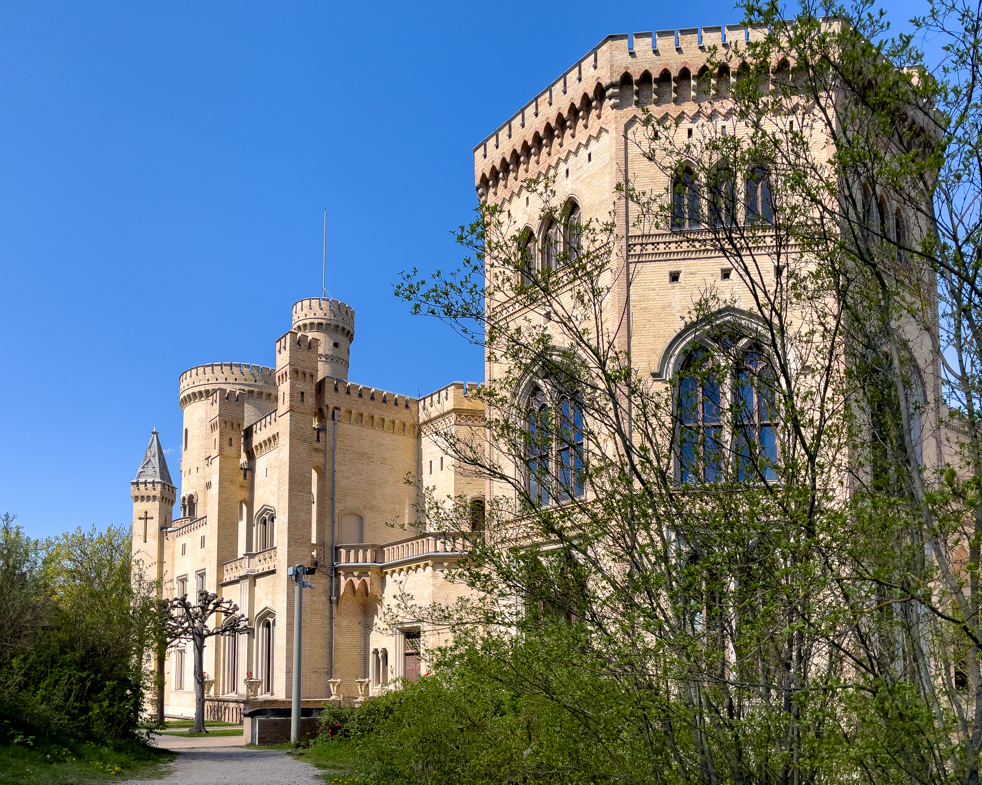 Ein paar Meter höher liegt das Schloss Babelsberg, also verlasse ich den Uferweg am Wilhelm-Wasserfall, der sich leider fotografisch nicht umsetzen lässt, und mache mich an den Aufstieg. Schloß Babelsberg wird dann einmal von Ost nach West umrundet: