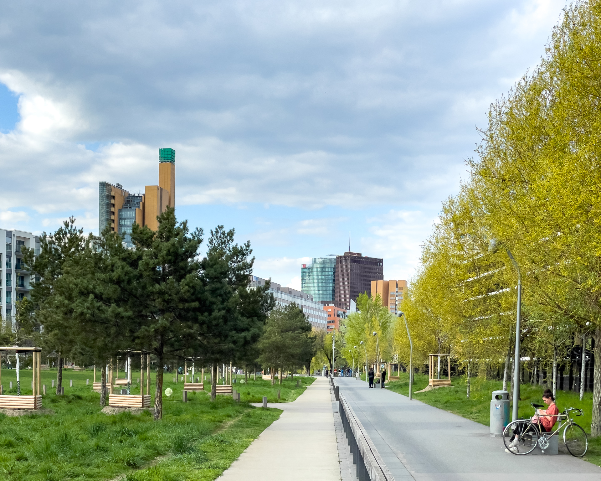 Es ging aber nicht direkt ins Hotel, ich bin noch mit der U-Bahn nach „West Berlin“, sprich dem Wittenbergplatz, gefahren und dann langsam in Richtung Osten gelaufen. Dabei gab es dann die erste richtige Pause im Biergarten am Gleisdreieck. Jahrzehntelang Brachland in der Nähe der Mauer, gibt es dort jetzt Neubauten und einen Park.