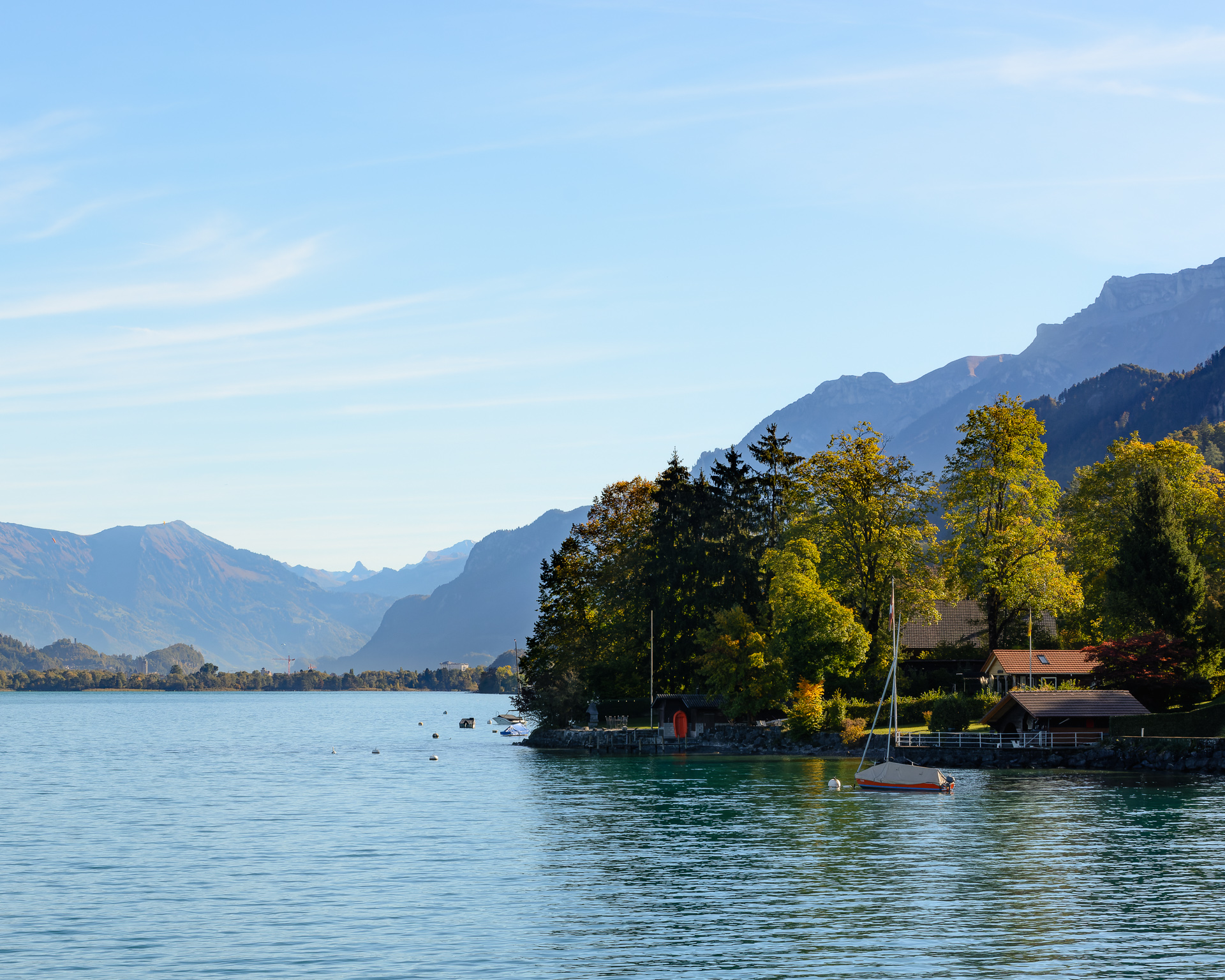 Der Tag begann recht relaxed, denn das erste Schiff fährt erst um 10:30 Uhr ab Spiez, wir hatten also mehr wie genug Zeit für Frühstück, ein bisschen Pause auf dem Balkon und den Spaziergang zum See hinunter.