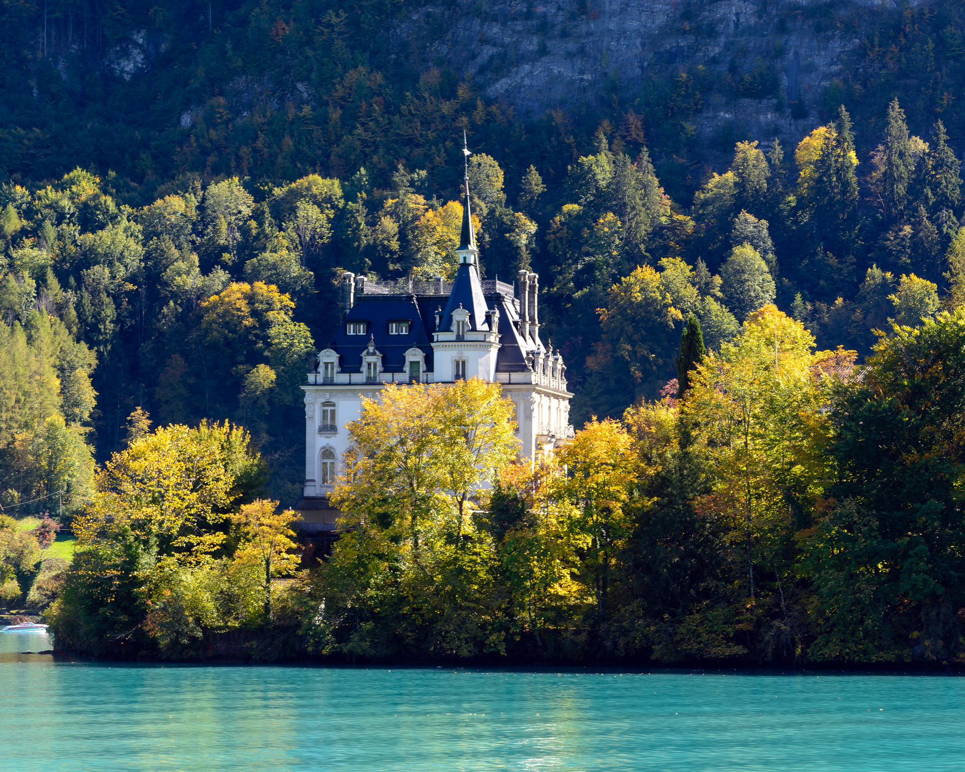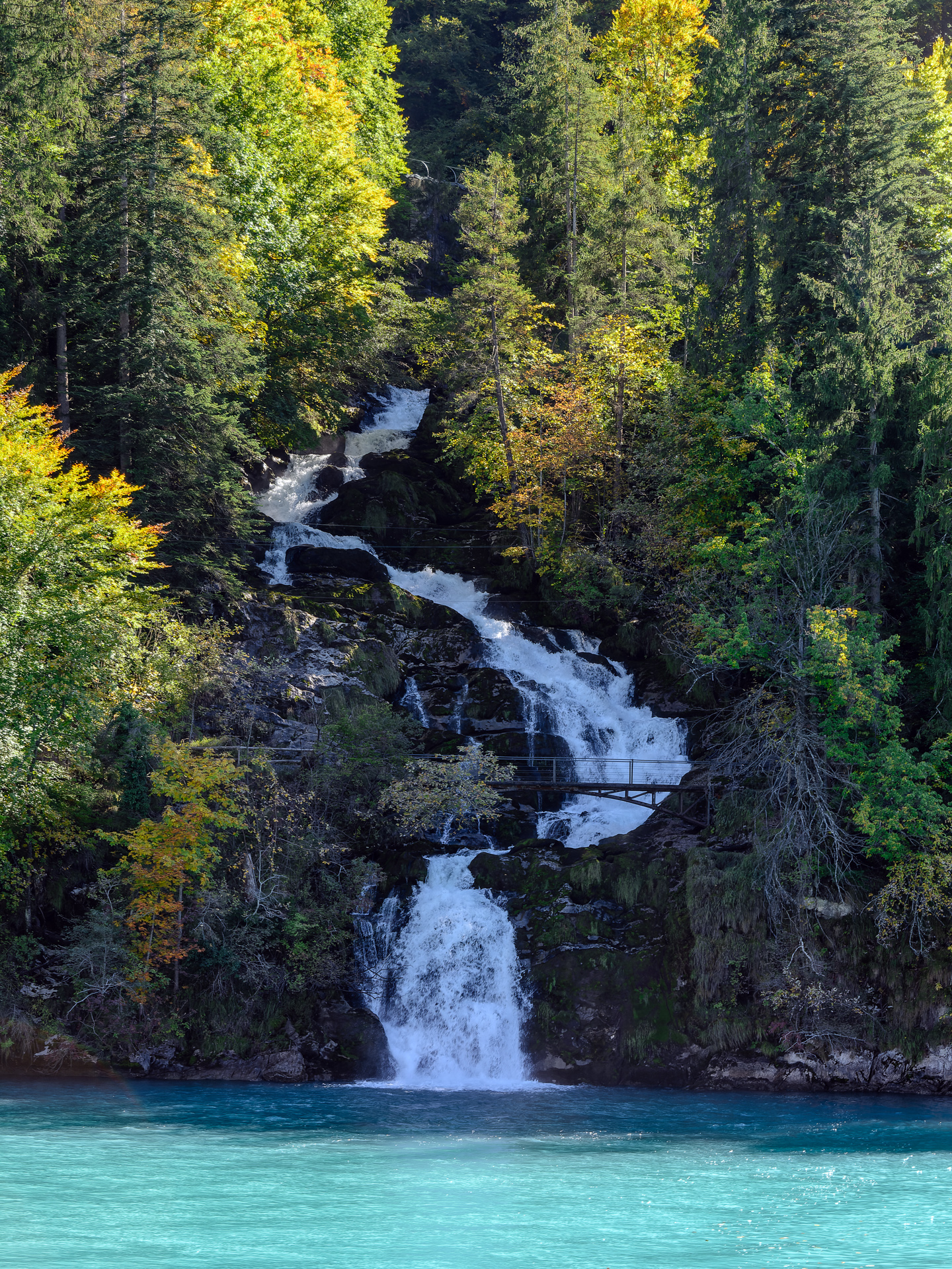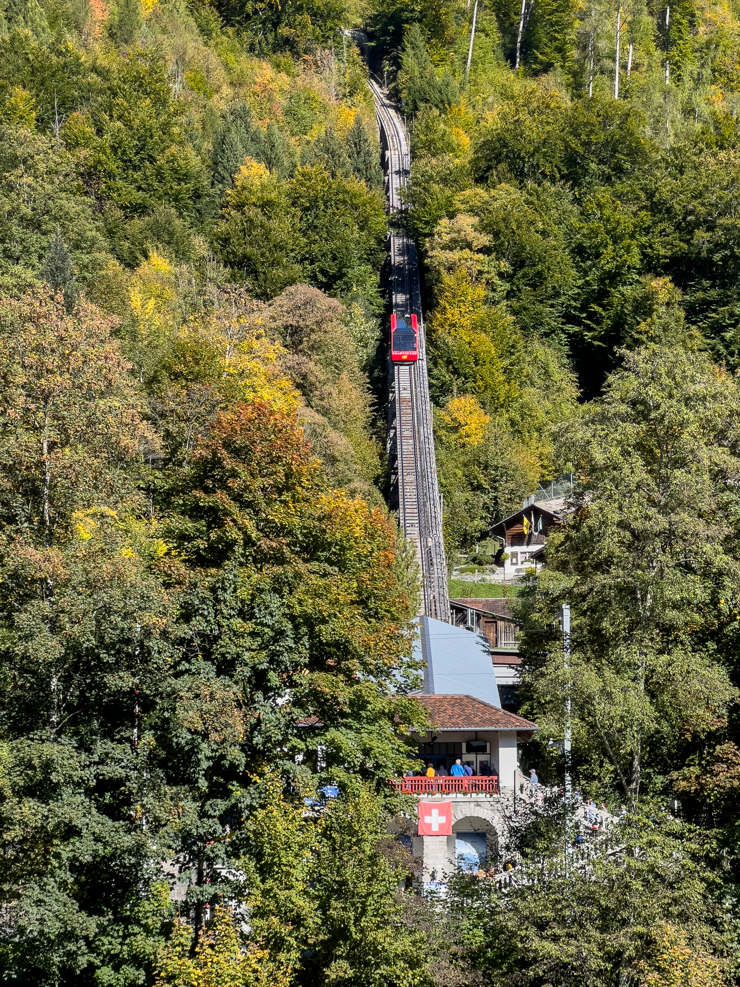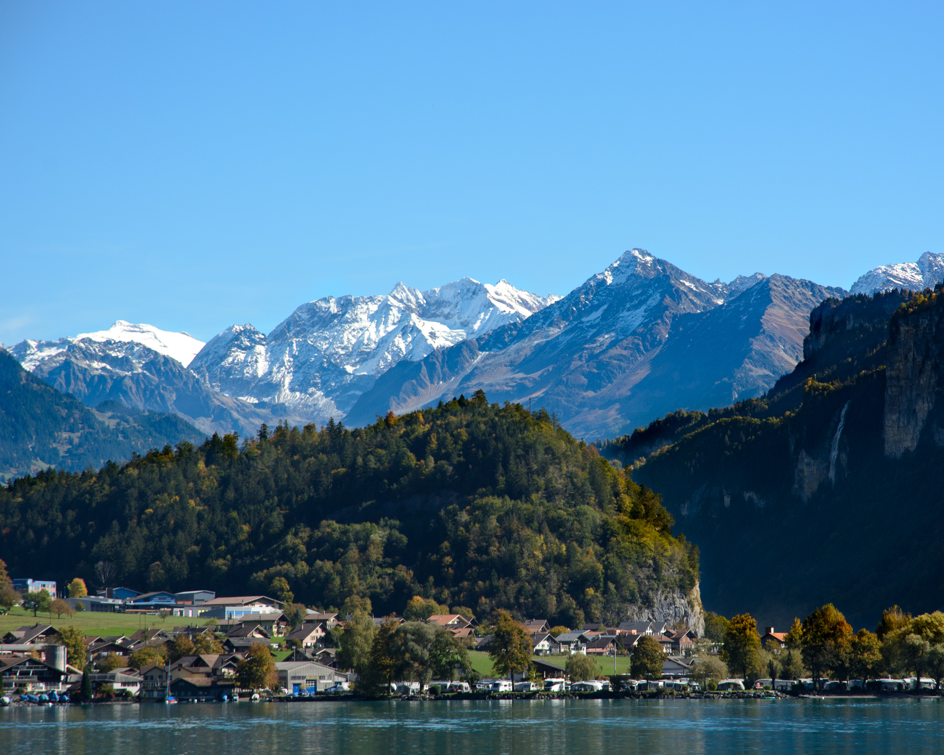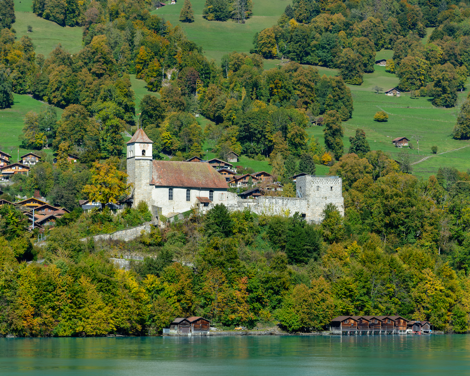 In Interlaken gibt es wieder etwas Hetze. Die Schiffe aus Thun enden in Interlaken West, die Richtung Brienz fahren in Interlaken Ost ab. Dazwischen liegt der Ort Interlaken. Die Strecke ist zwar nicht lang, aber in 15 Minuten nicht zu Fuß zu bewältigen, wir müssen dafür die Bahn nehmen. Und die Umsteigezeiten im Schweizer Taktfahrplan sind leider manchmal etwas kurz. Aber wir brauchen uns nicht zu sorgen, auch der Zug fährt untypisch mit mehreren Minuten Verspätung, und nutzlos war das ganze sowieso, denn an der Anlegestelle angekommen stellen wir fest, dass der Herbstfahrplan gilt und um 12 Uhr kein Schiff fährt. Wir müssen eine Stunde warten, da hätten wir auch gemütlich zu Fuß gehen können.