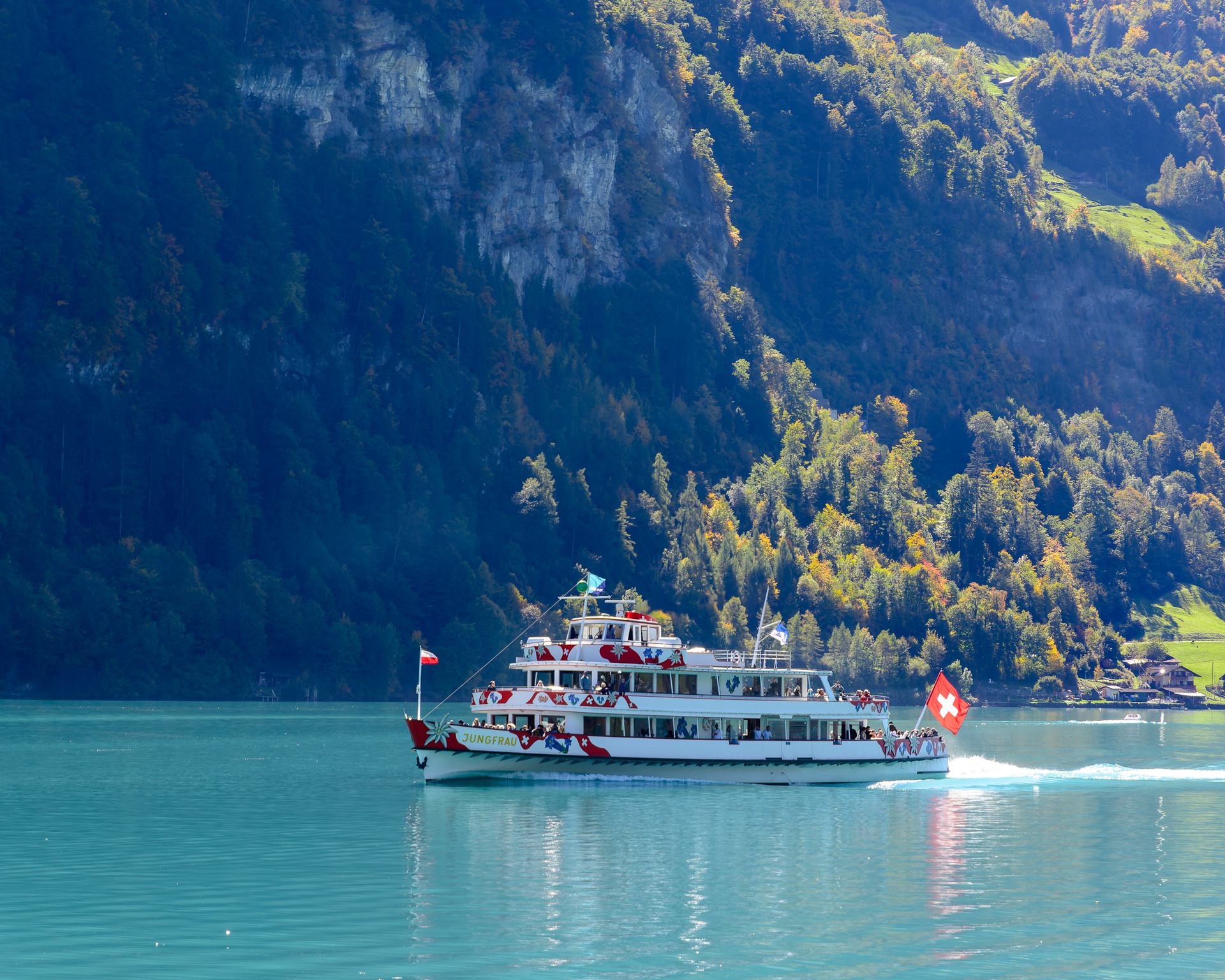 Nach der Aufregung ging es jetzt aufs Schiff, wir fanden einen Platz im Heck und in eineinhalb Stunden ging es kreuz und quer über den See nach Interlaken.