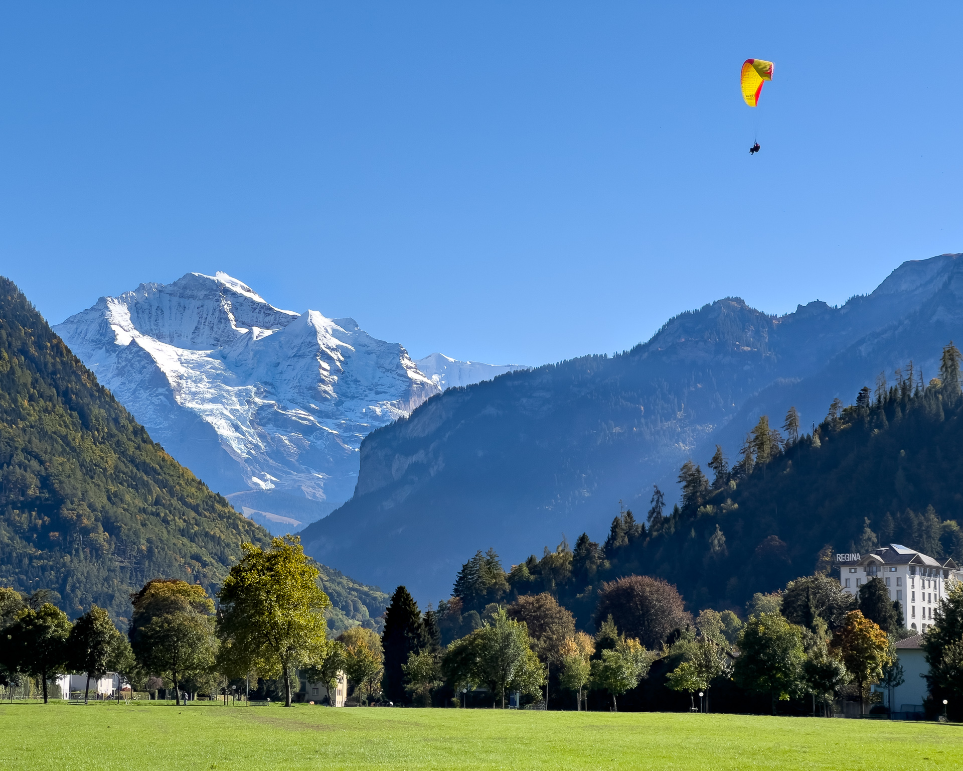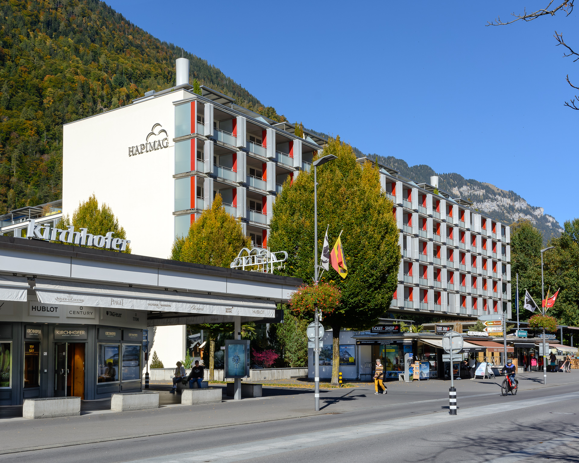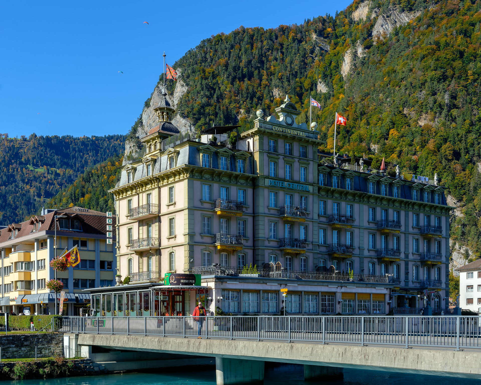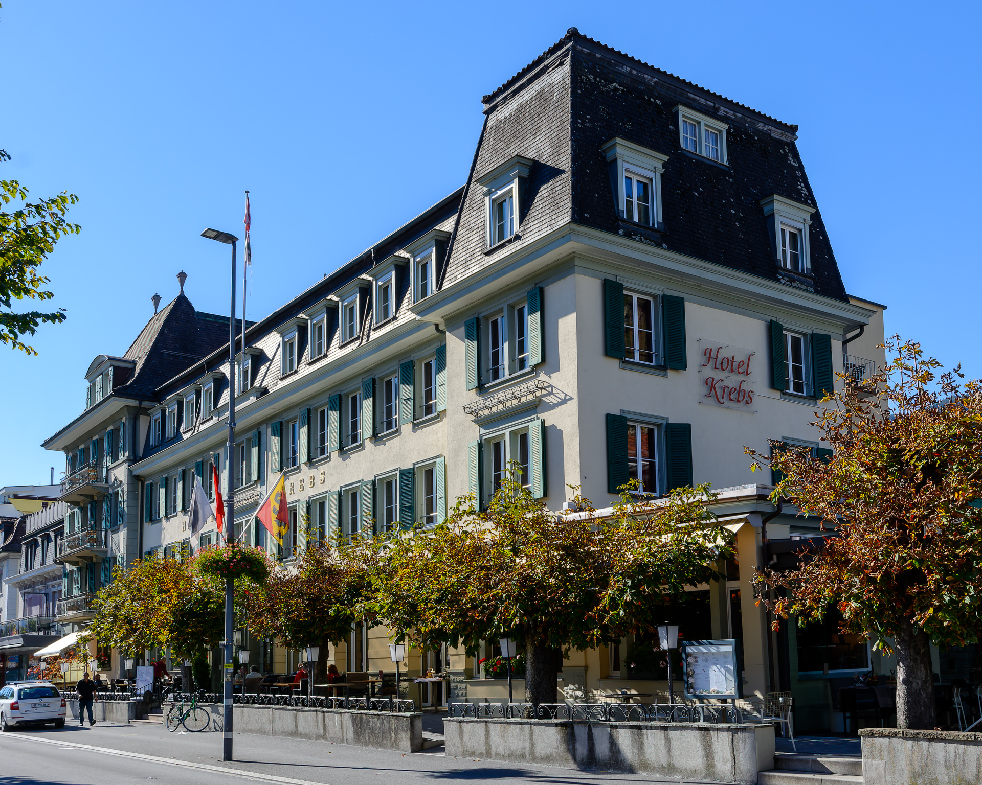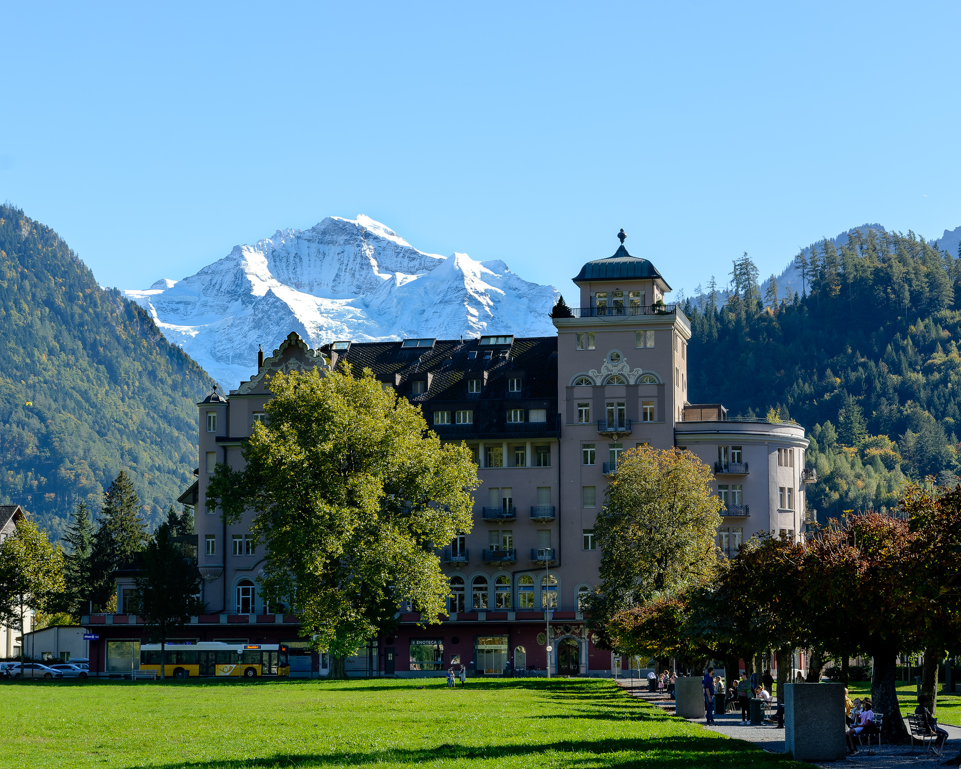 Zurück in Interlaken hätten wir zwar einen „Direktanschluss“ nach Spiez, den benutzen wir aber nicht und laufen einmal durch die Stadt. Gross war der Rundgang nicht, eigentlich ging es geradeaus entlang des Höhewegs (und der Bahnhofstraße) vom Ost- zum Westbahnhof. Entlang der Straße finden sich einige prächtige Hotelbauten aus der Belle Epoque genauso wie moderne architektonische Scheusslichkeiten.