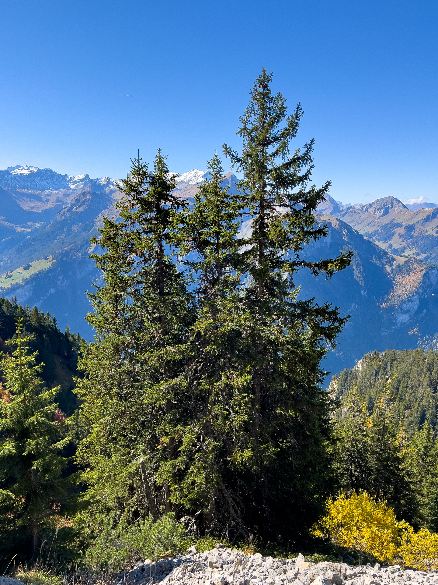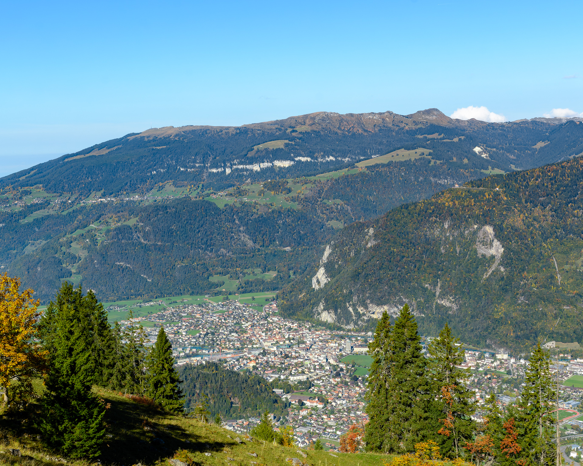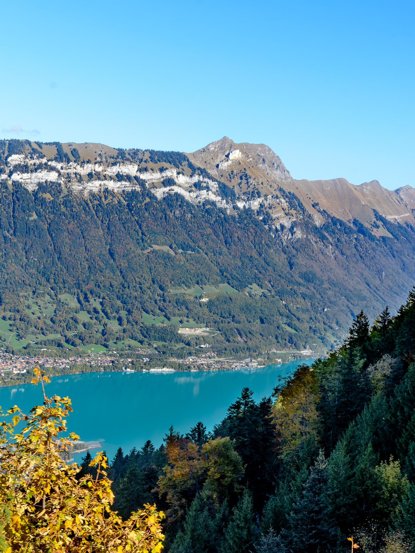 Auf geht es, den Berg hoch, unterwegs gibt es jede Menge Aussicht auf Thuner- und Brienzersee, das Lütschinental und auch das Jungfraumassiv.
