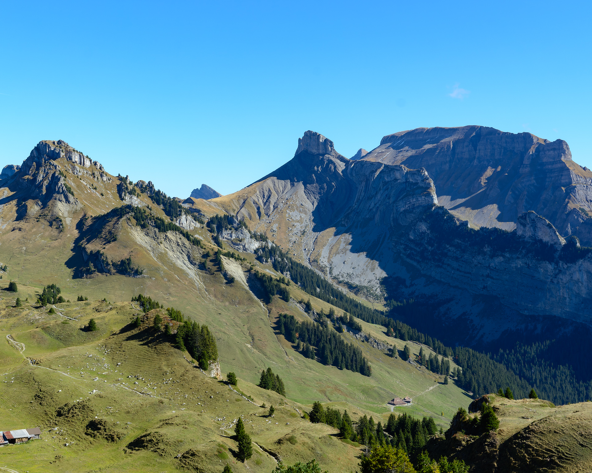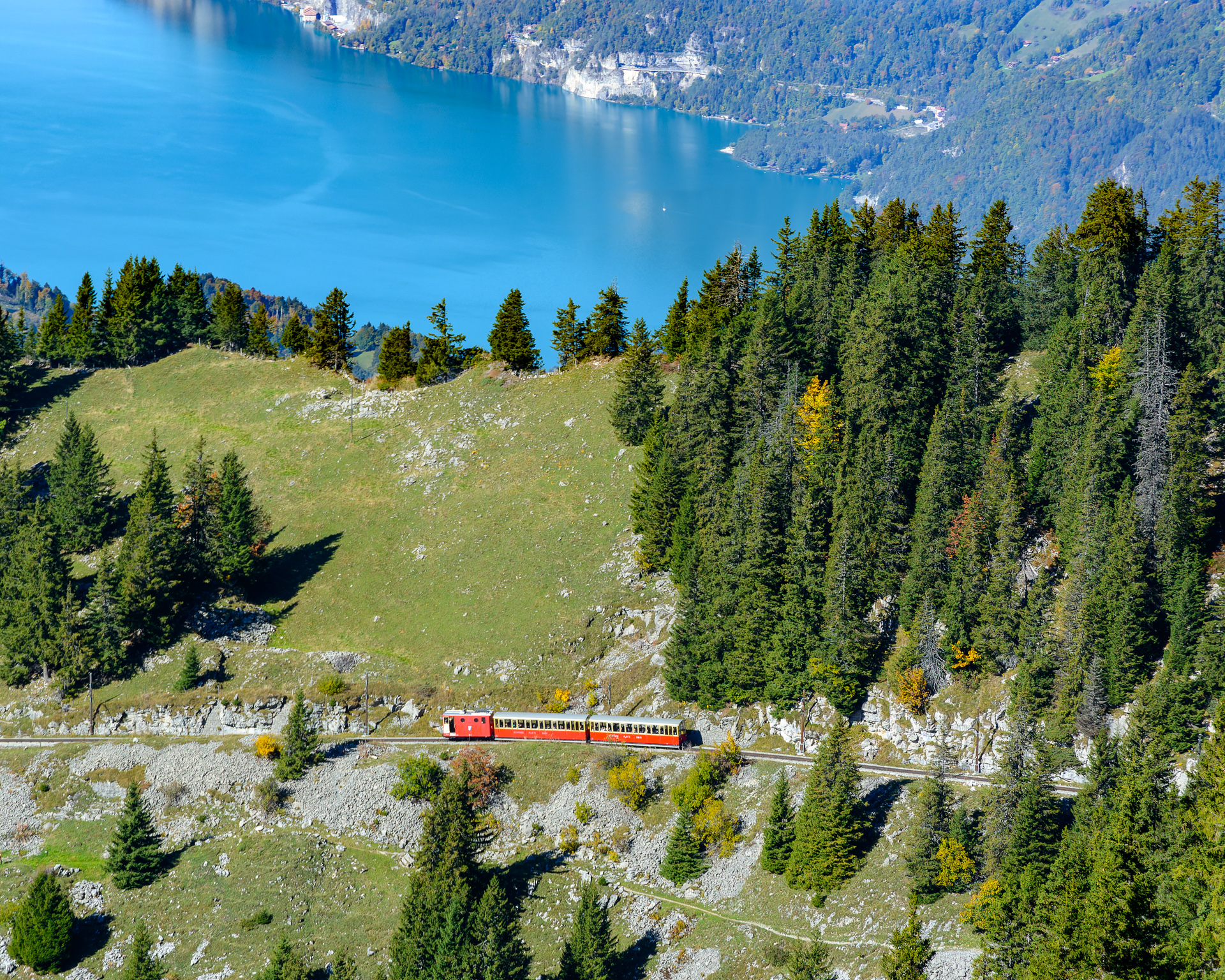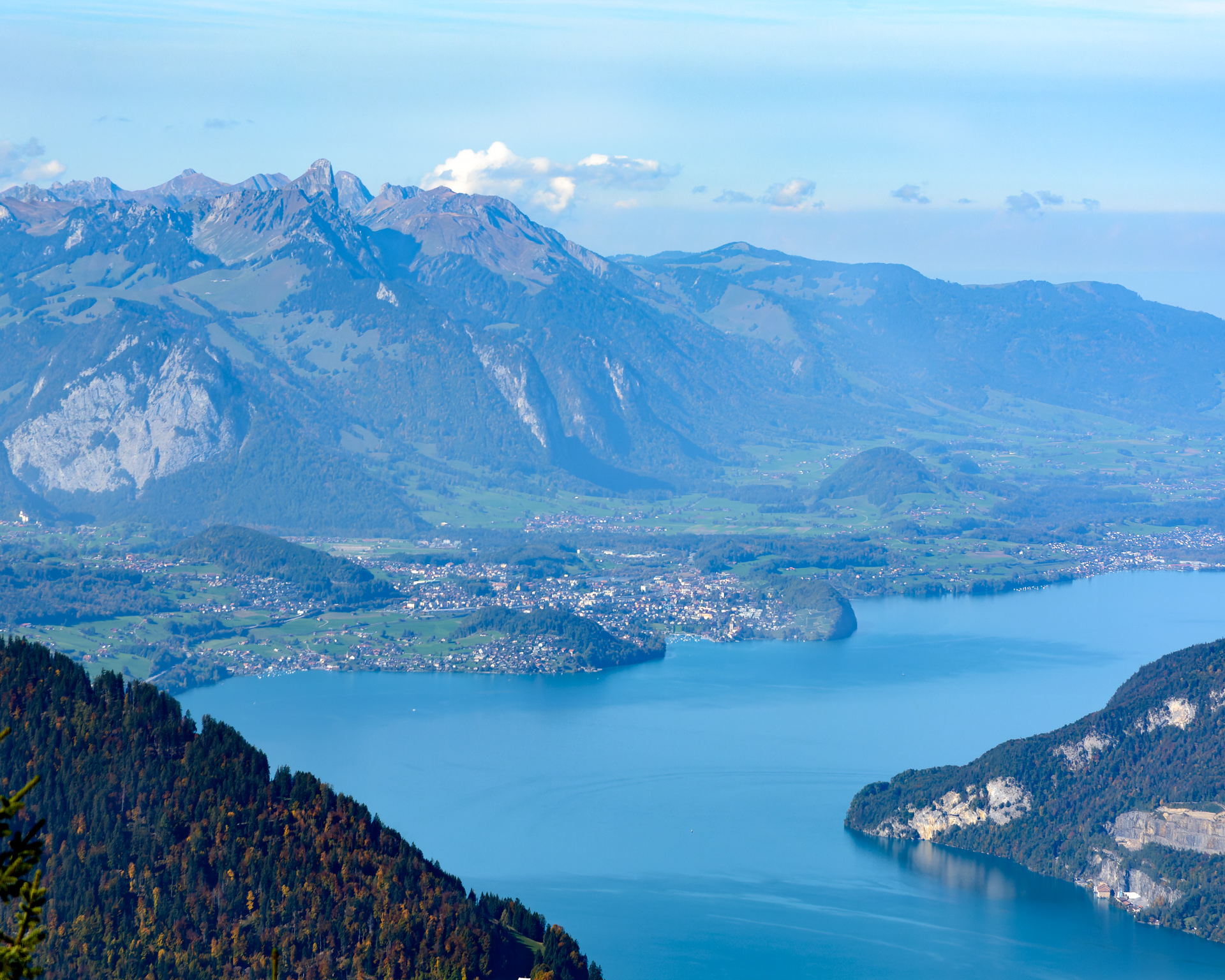 Auf geht es, den Berg hoch, unterwegs gibt es jede Menge Aussicht auf Thuner- und Brienzersee, das Lütschinental und auch das Jungfraumassiv.