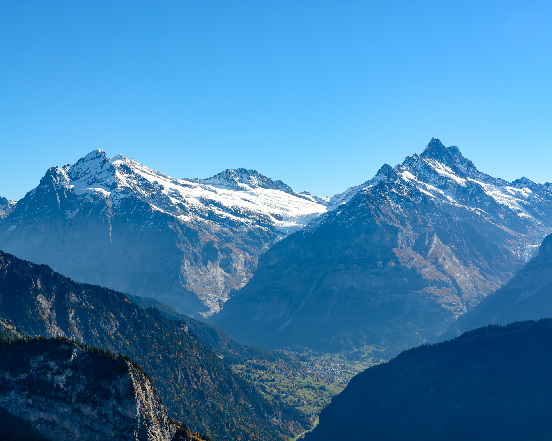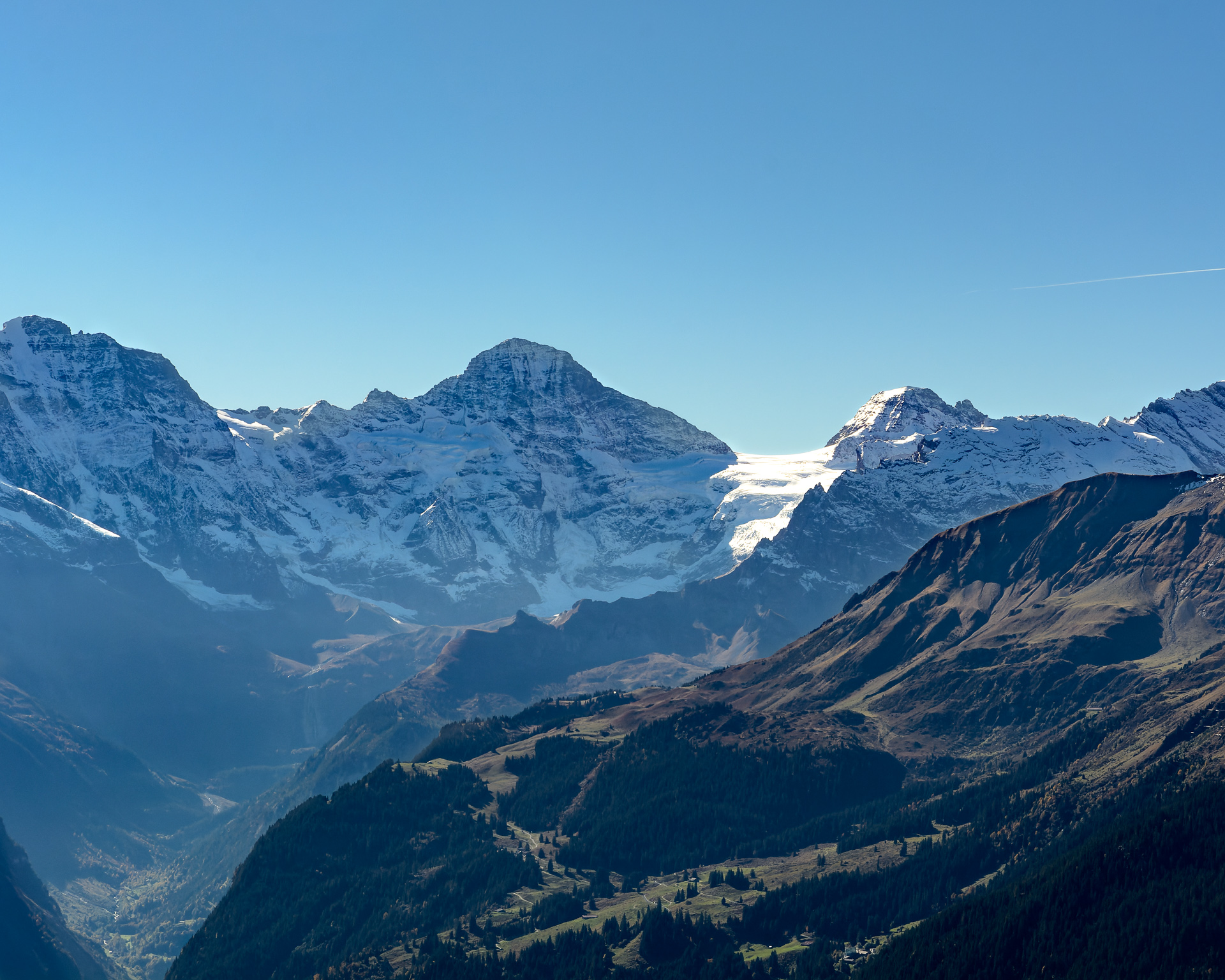 Berühmt ist die Schynige Platte für die Aussicht auf das „Dreigestirn“ aus Eiger, Mönch und Jungfrau. Leider geht der Blick dabei nach Süden, also tagsüber ins Gegenlicht, das macht das Fotografieren nicht so einfach. Und ich hab natürlich keine Ahnung mehr, welcher Gipfel welchen Namen trägt.