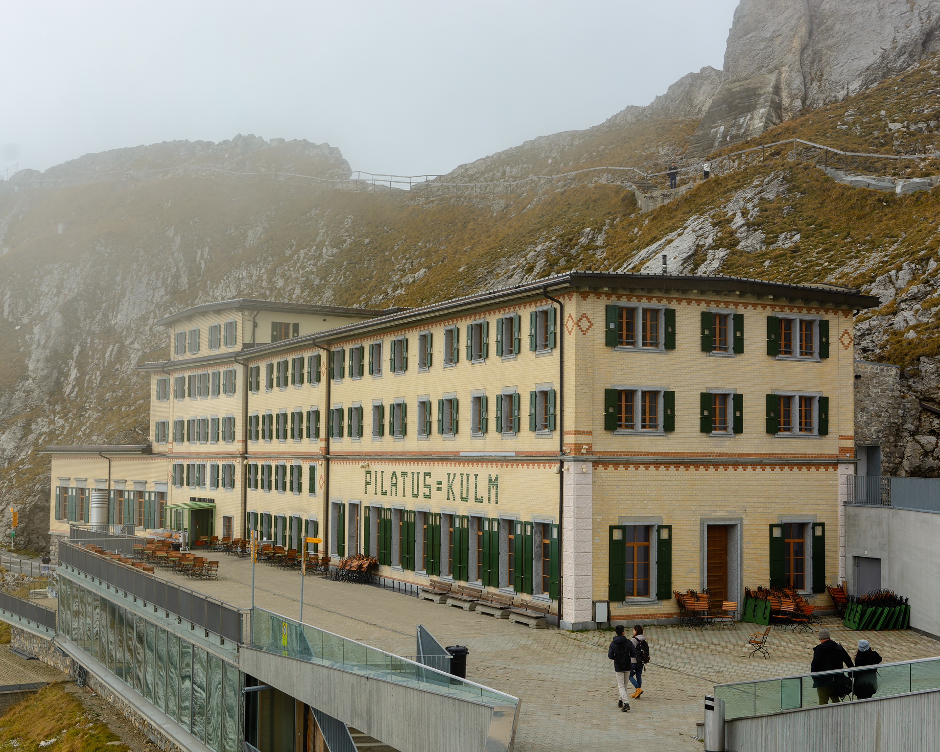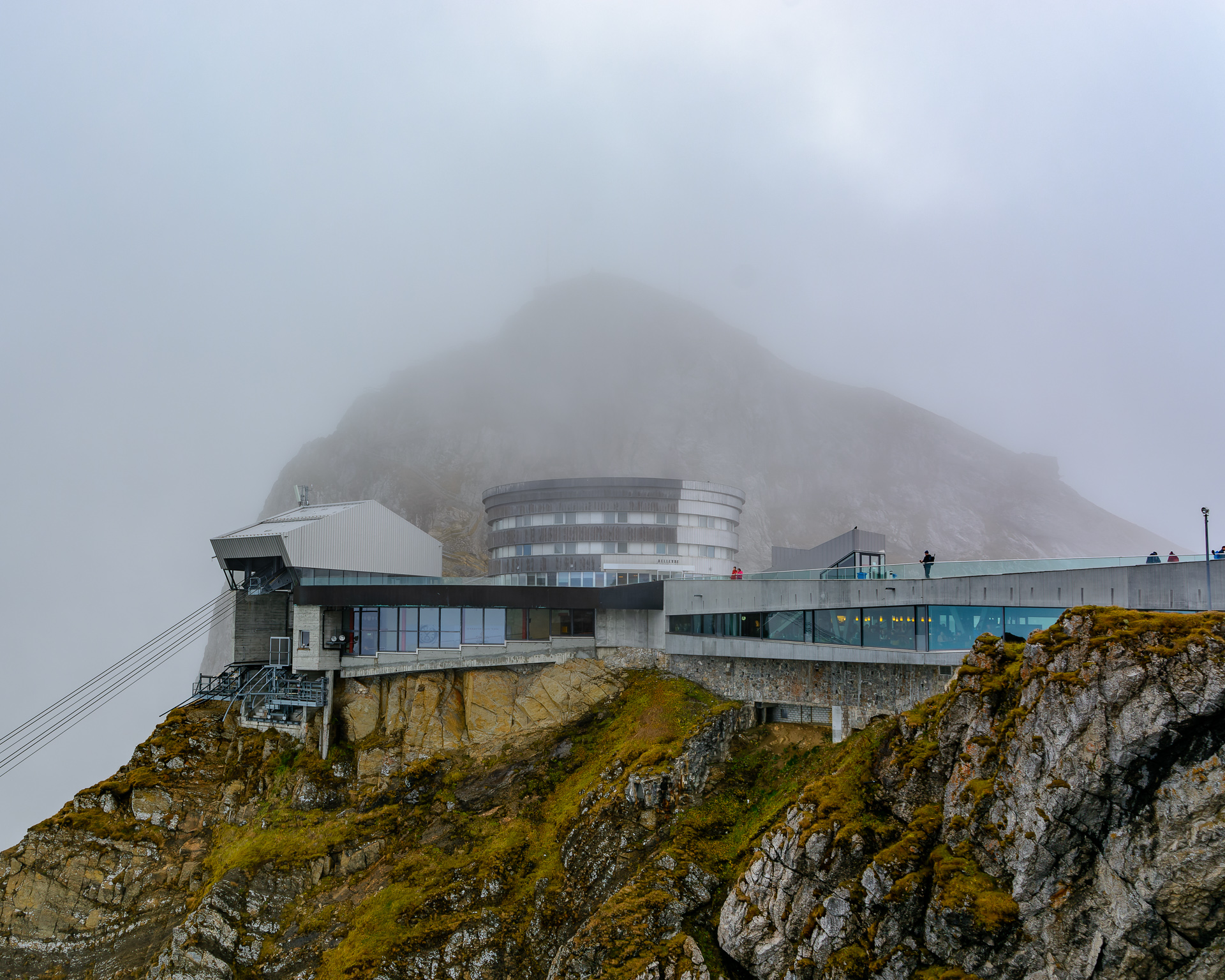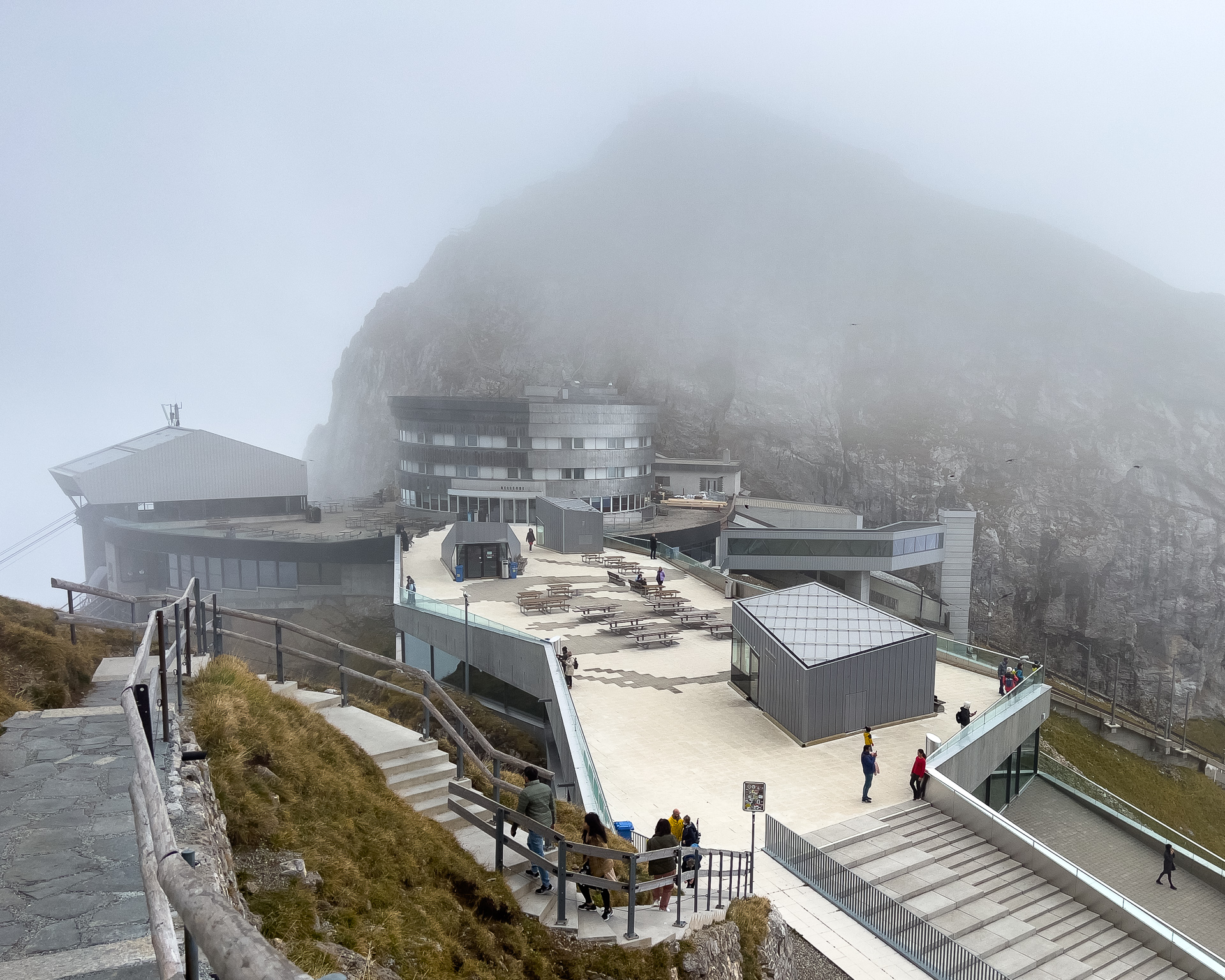 Nach dem Aufstehen zeigte der Blick durchs Fenster zwar Grau, aber die Webcam vom Pilatusgipfel zeigte klare Sicht. Also wagen wir es, den Ausflug dorthin zu starten.