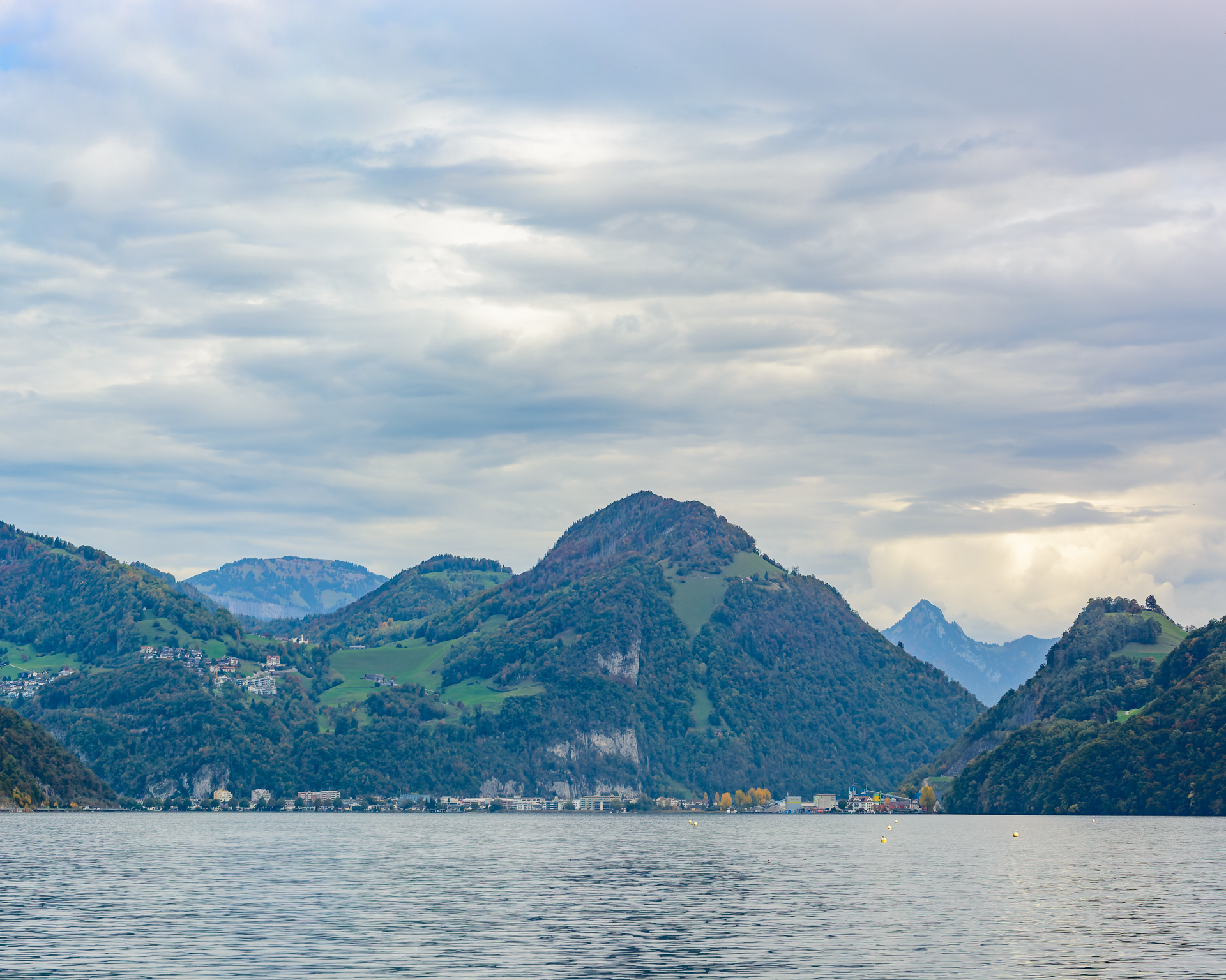 Unten angekommen, haben wir wieder etwas Zeit beim Umsteigen und laufen noch kurz zum Ufer des Vierwaldstättersees.