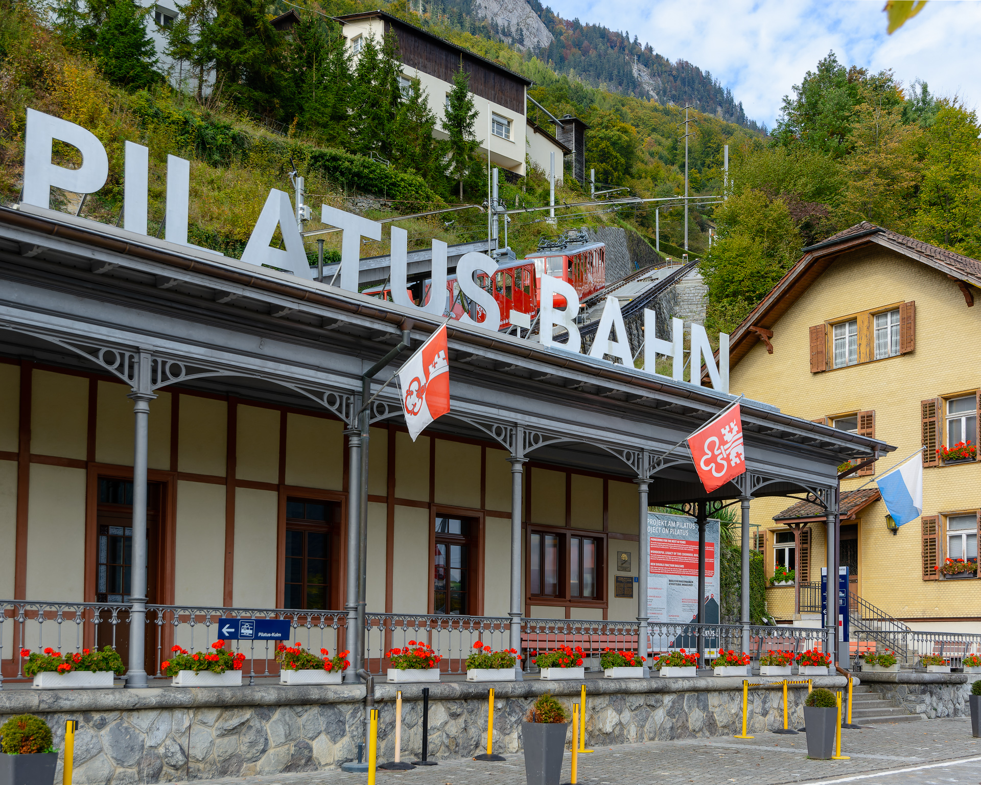 In Alpnachstad verlassen wir die S-Bahn. Nur wenige Meter entfernt findet sich die Talstation der Pilatus Zahnradbahn, und wie bereits an der Schynigen Platte gibt die Infrastruktur keinen 30 Minuten Takt her, so das wir das Umsteigen wieder sehr gemütlich angehen können. Unsere elektronischen Tickets, die ich inzwischen in der SBB App kaufe, tauschen uns zwei Damen um in mit Barcode versehene Papptickets, damit öffnen sich dann die Sperren an den Bahnsteigzugängen für uns. Wir werden in einem der nagelneuen Triebwagen den Berg hochgefahren.