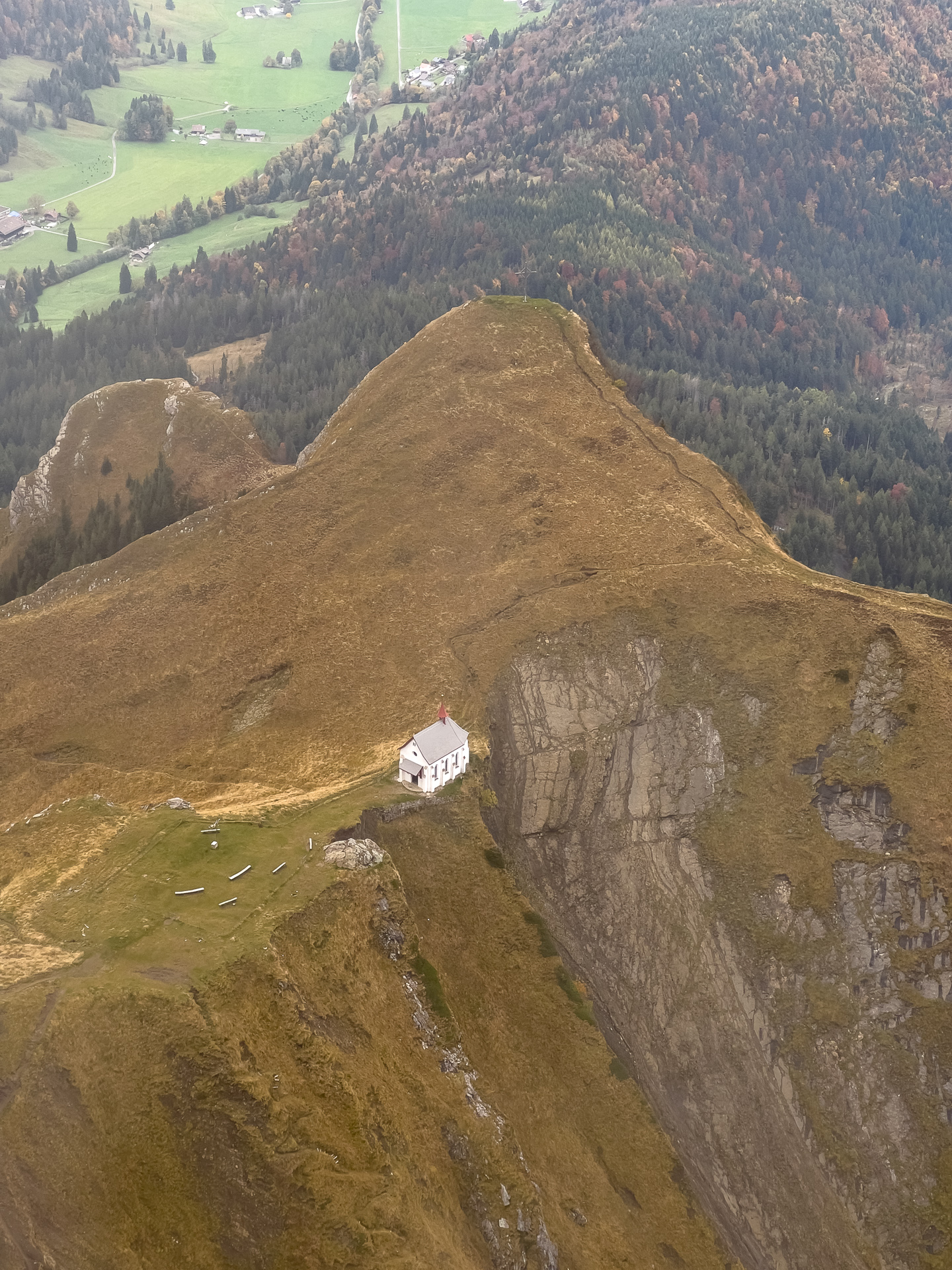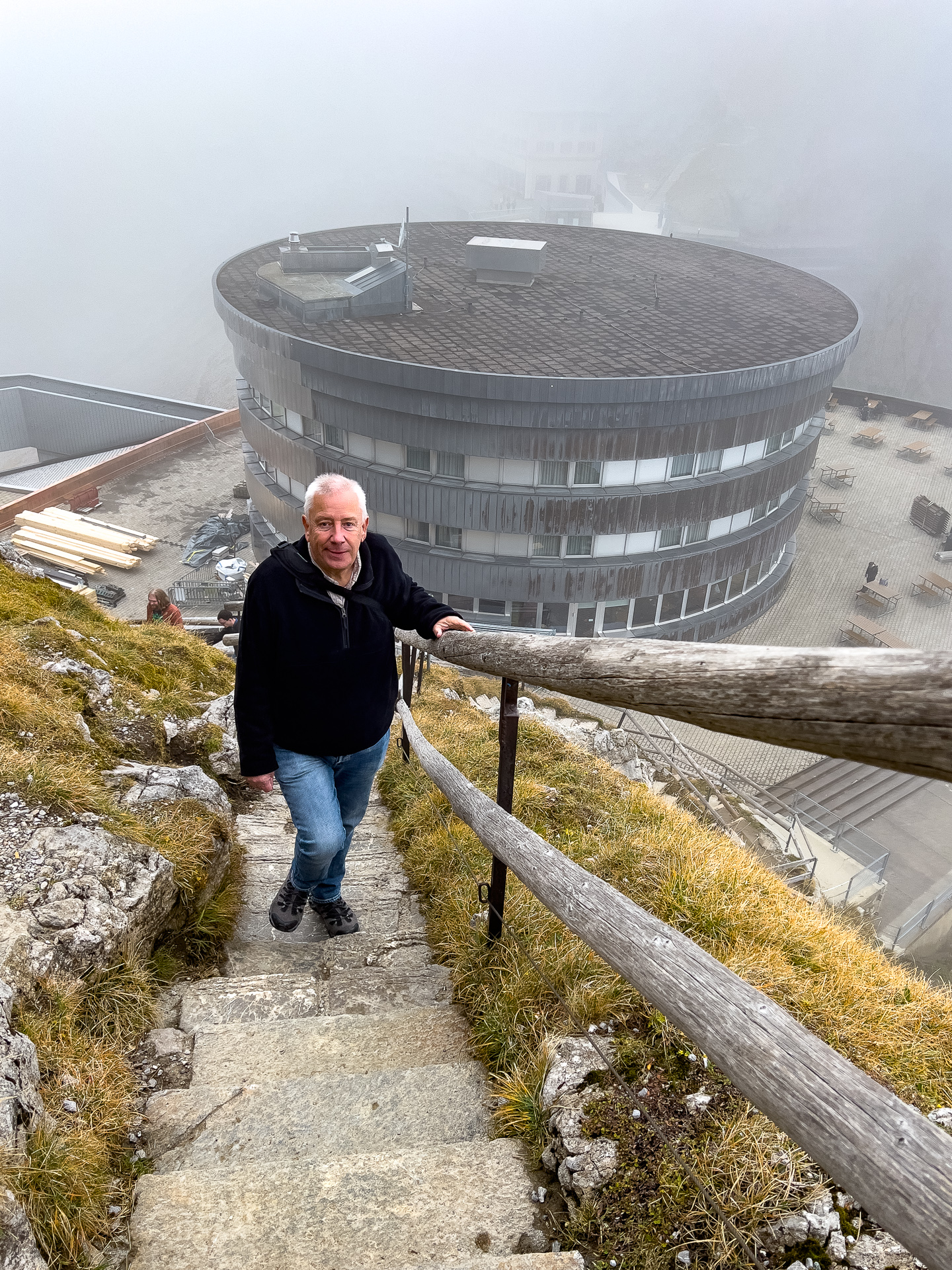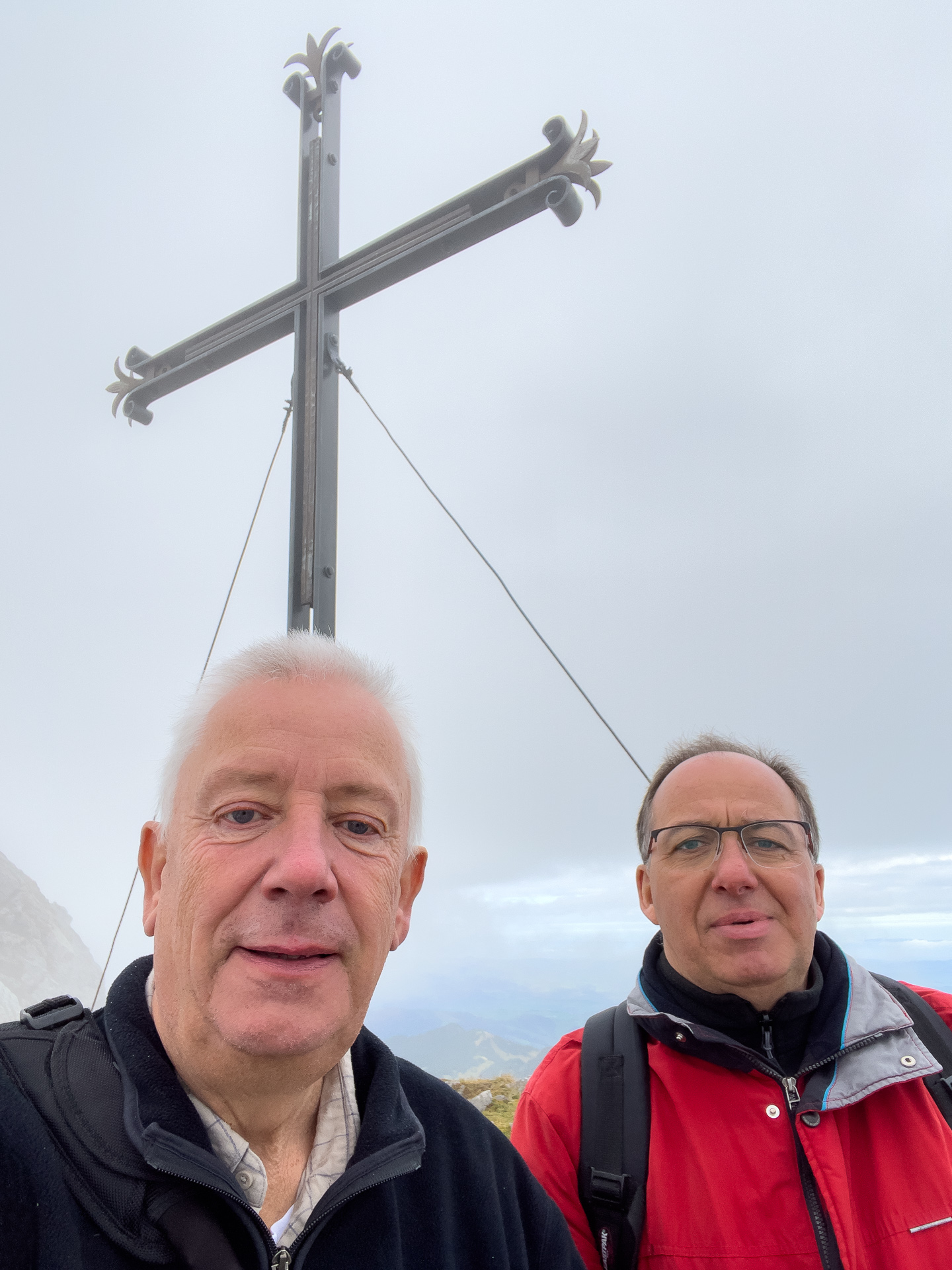Wir werden dann zu Gipfelstürmern und machen uns an den Aufstieg zum Oberhaupt, 2106 Meter hoch. Das ist nicht weiter schwierig, sind es gerade mal 30 Höhenmeter von der Aussichtsterrasse über gut ausgebaute Treppenwege.