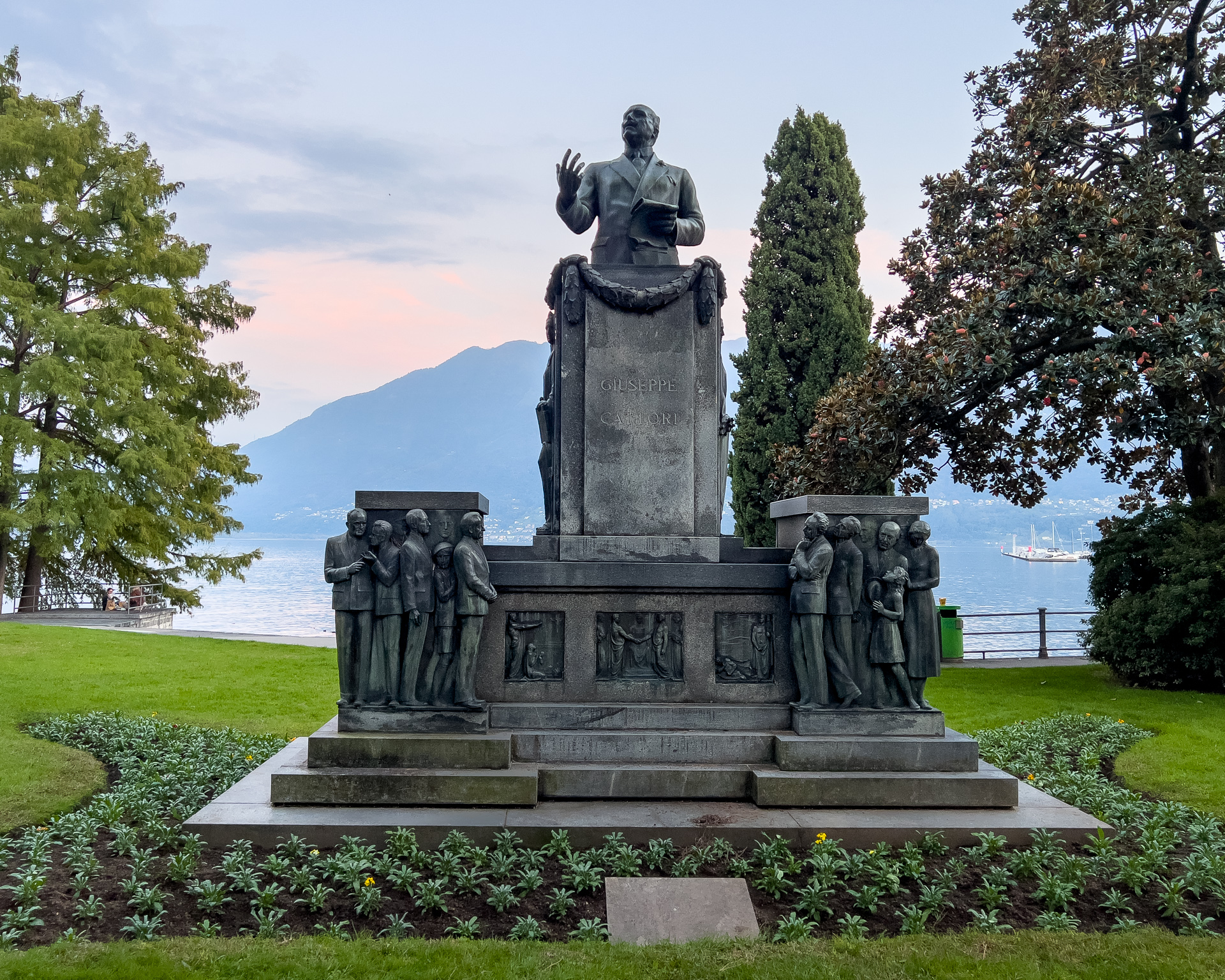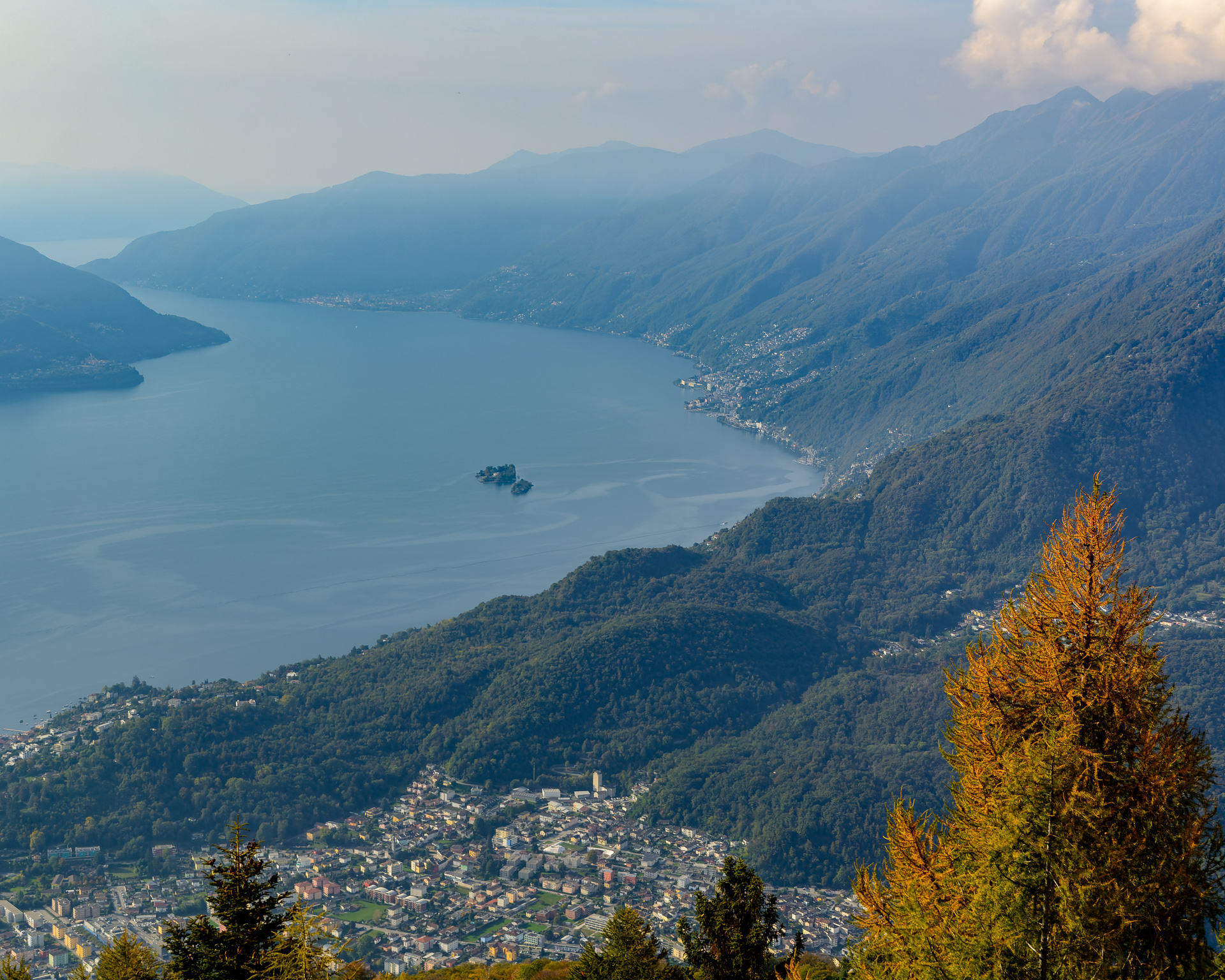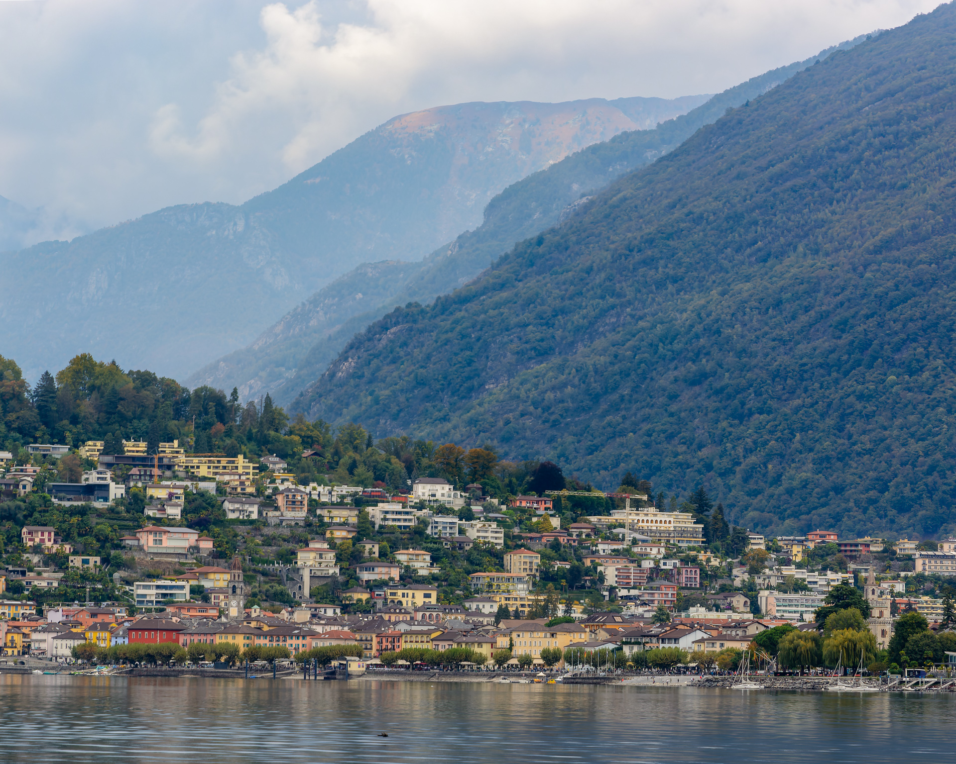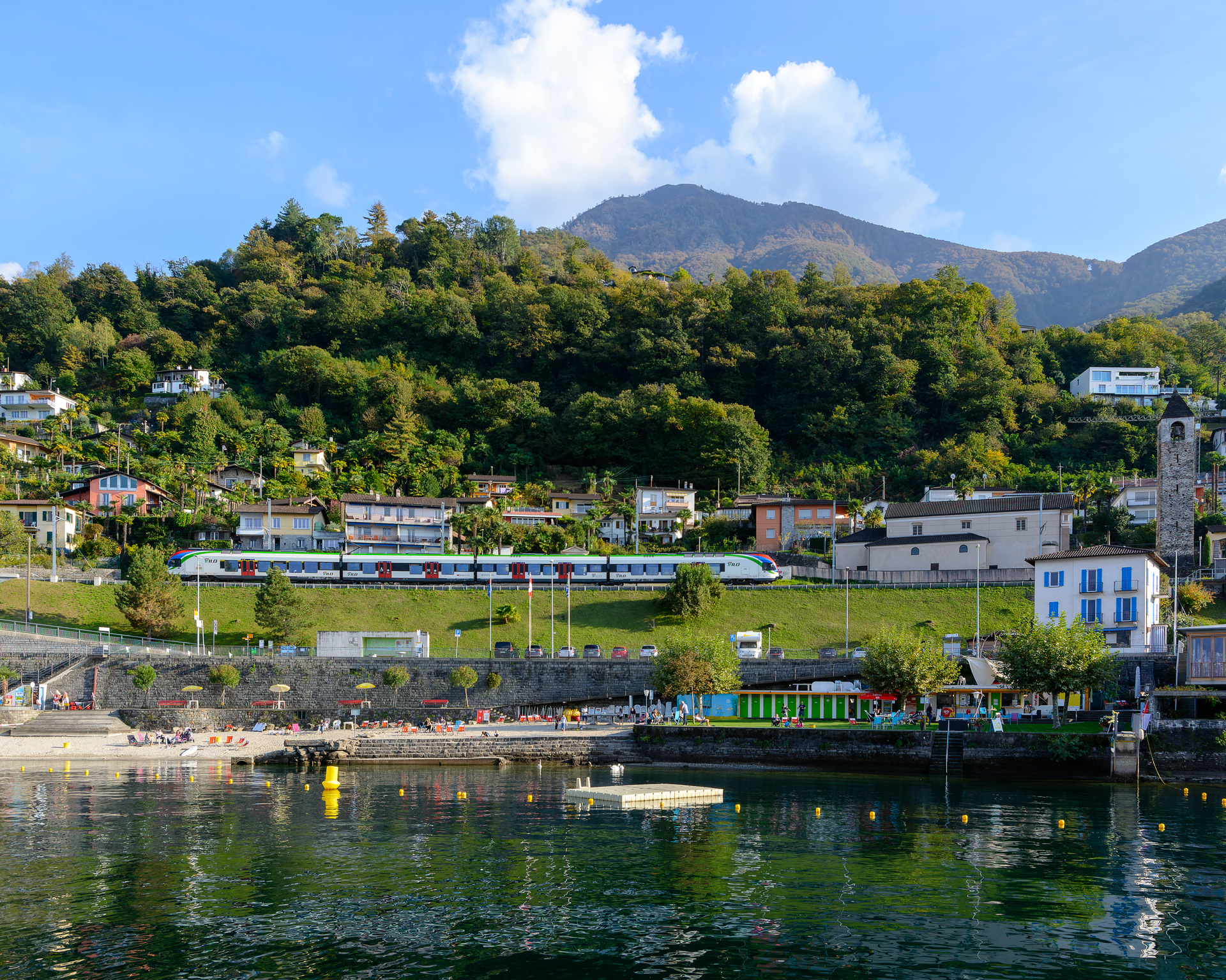 Eigentlich wäre ja eine Kaffeepause angesagt, aber hier oben will Stephan nicht. Mit der Standseilbahn geht es runter nach Locarno und wir laufen dann zur Schiffsstation, denn es ist noch früh am Nachmittag und eine Rundfahrt bis Brissago sollte noch möglich sein. Es ist allerdings blöd, das das nächste Schiff recht bald abfährt, für Kaffee und Imbiss an Land bleibt jetzt keine Zeit mehr. Und der Schiffsfahrplan macht auch Probleme. Der Kurs geht nämlich nicht direkt durch nach Brissago. Die „Isole de Brissago“ im See mit ihrem Botanischem Garten sind wohl die größte Attraktion dort und deswegen dreht das Schiff eine Ehrenrunde. Erst geht es über Ascona zu den Inseln, dann wieder zurück nach Ascona, und dann weiter nach Brissago, selbstverständlich mit einem weiteren Stop an den Inseln. Die Ehrenrunde dürfen wir mit unserer einfachen Rückfahrkarte nicht mitmachen, wir unterbrechen daher in Ascona für eine knappe Stunde die Fahrt.