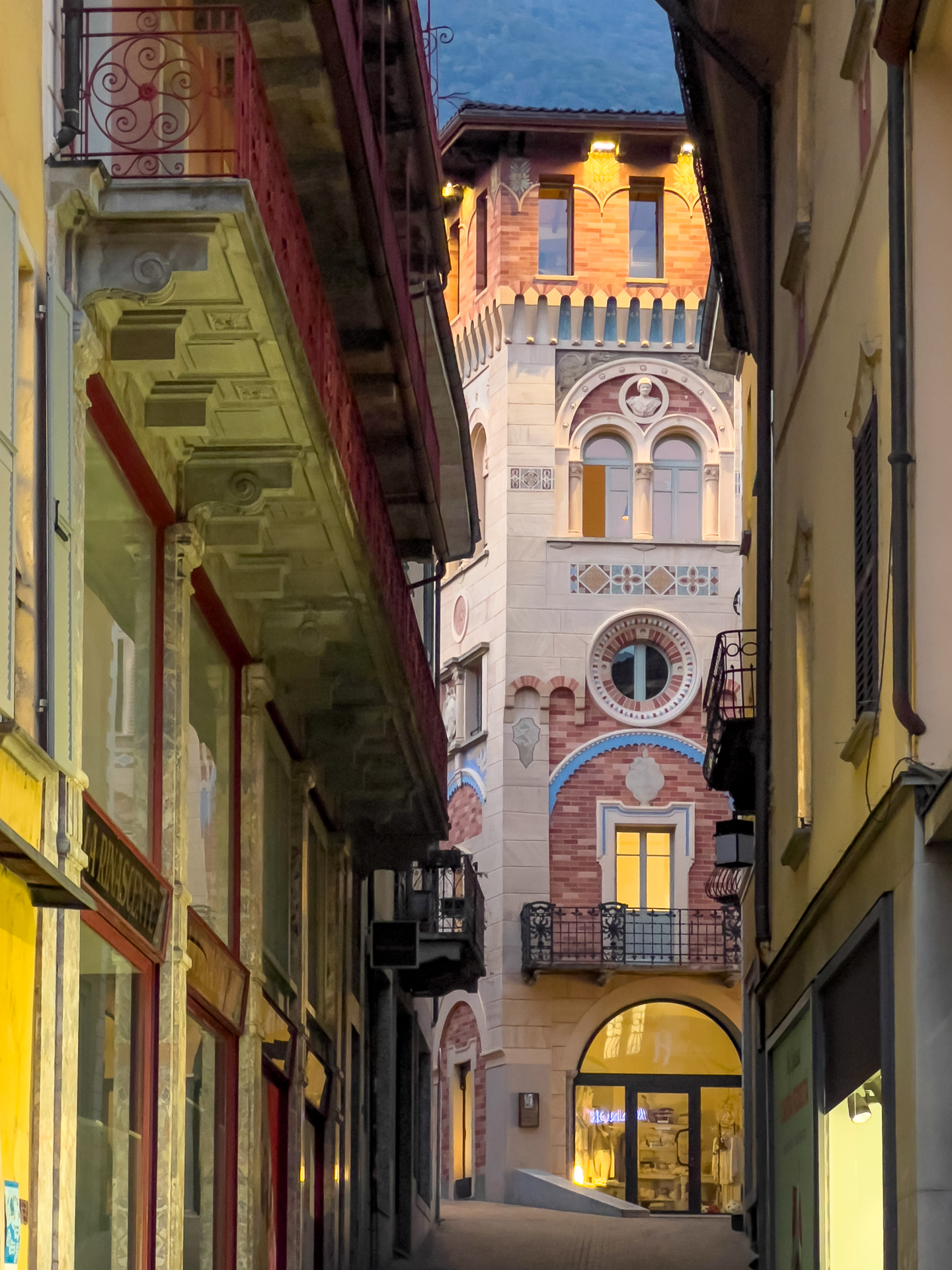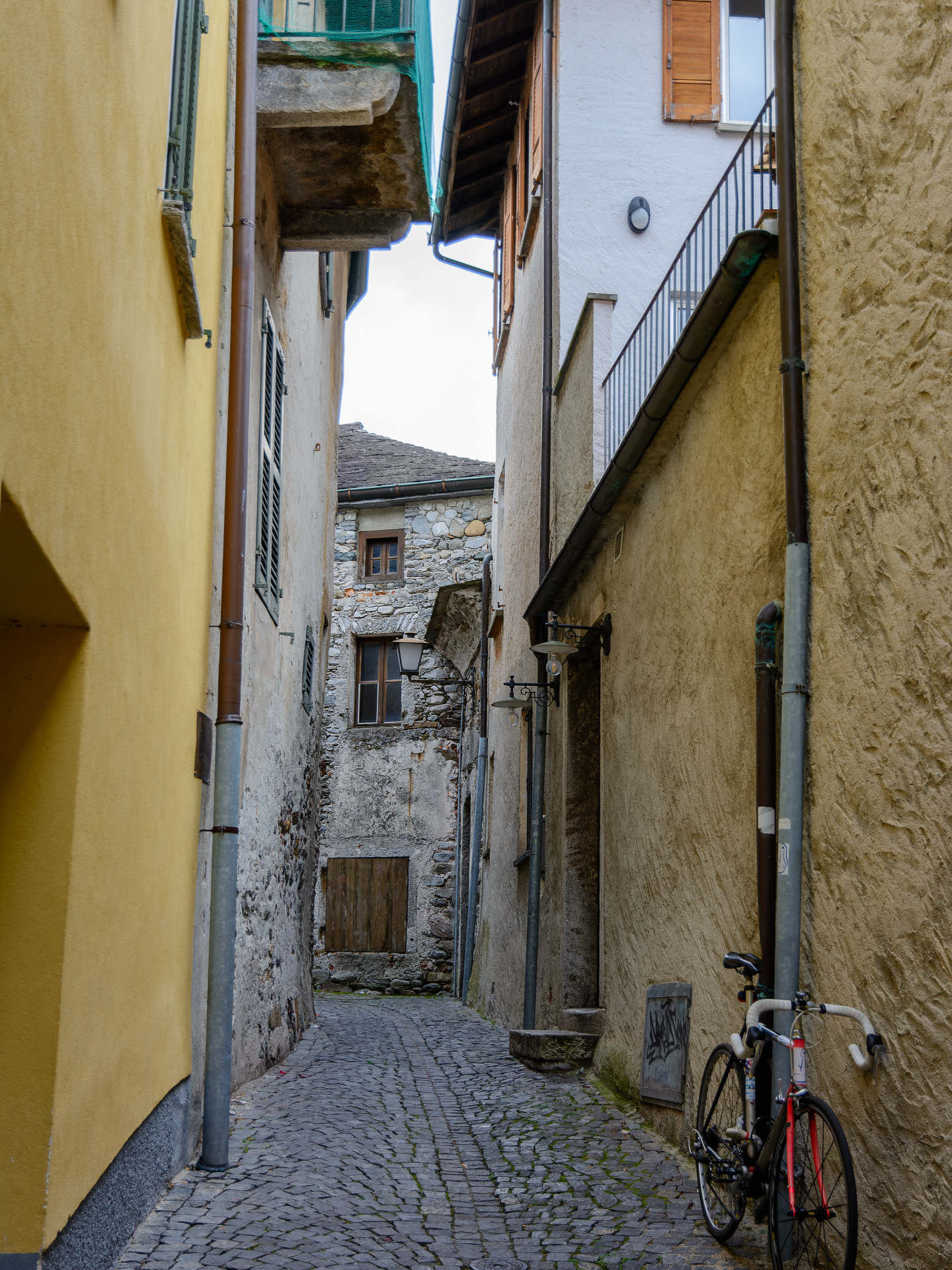 Wie man sieht wurde das Wetter am Nachmittag schlechter. Auf dem Schiff gab es mal wieder keinerlei Service, und wir wissen nicht ob die Zeit für einen Besuch in einem der Restaurants an der Promenade in Ascona reicht, daher gehen wir durch die verwinkelten Gassen zum Rande der Innenstadt, hier landen wir in der modernen Welt und im Migros kaufen wir Getränke und Käsewürfel, die wir dann beim Warten auf die Rückkunft des Schiffes von seiner Ehrenrunde verzehren. Immerhin gewinnen wir so einen kleinen Eindruck von Ascona.