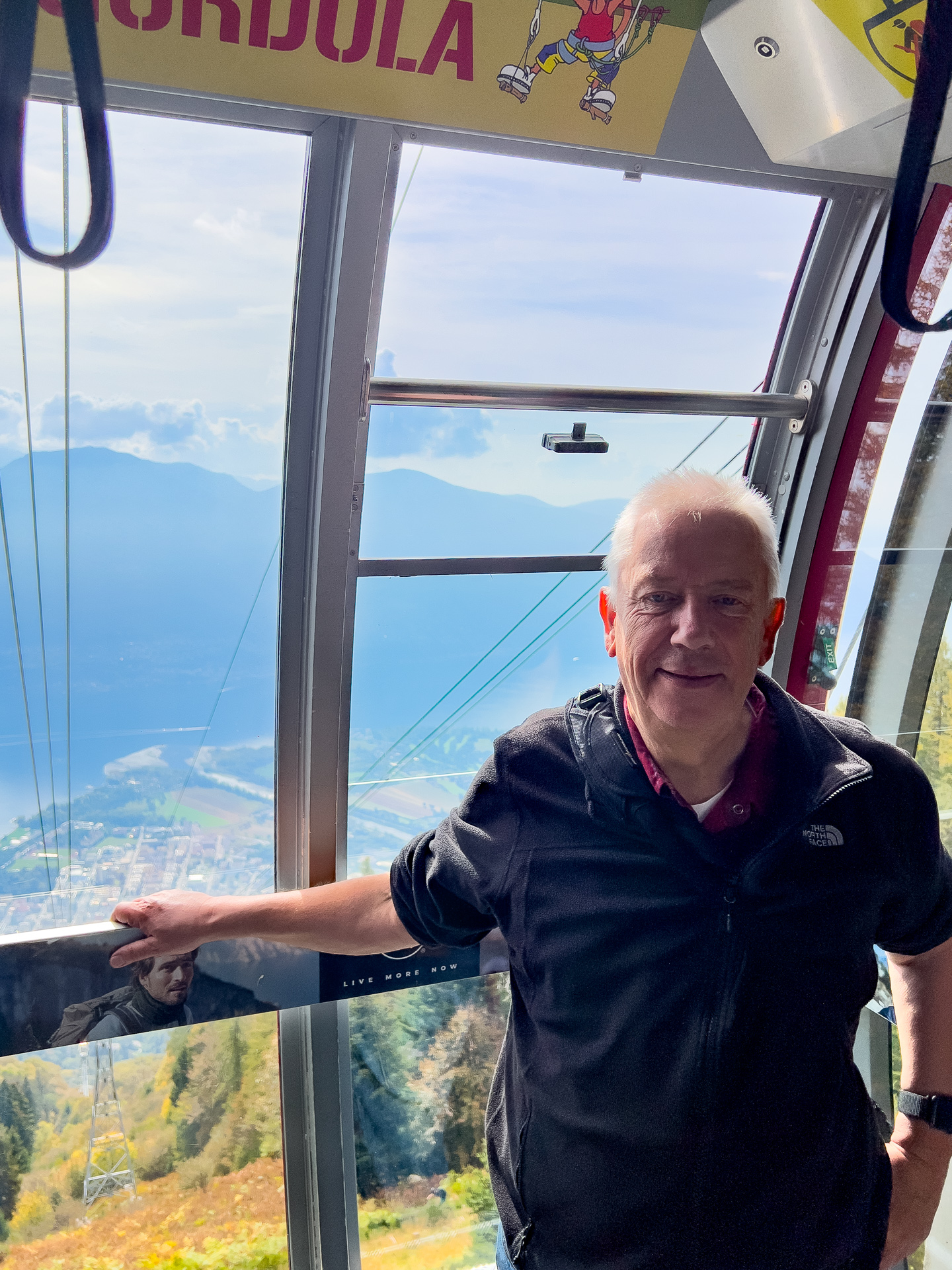 Von Locarno aus kommt man auch mittels Seilbahnen ein bisschen in die Tessiner Bergwelt hinein und ein solcher Ausflug stand heute morgen auf dem Programm. Direkt ab Locarno gibt es die 1906 eröffnete Standseilbahn nach Orselina, wo sich die Wallfahrtskirche Madonna der Sasso befindet. Die Talstation ist 202 Meter hoch gelegen, die Bergstation 378 Meter. Seit 1952 gibt es die anschließende Seilbahn weiter nach Cardada, deren Berstation ist dann auf 1340 Meter. Mit beiden wollten wir fahren. 1954 wurde dann noch ein Sessellift bis Cimetta (1670 Meter) eröffnet, den haben wir uns allerdings gespart.