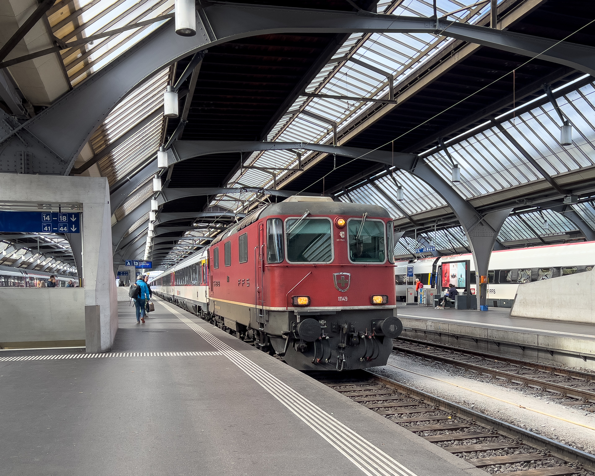 Noch einmal genossen wir das Frühstück im Hotel, dann klappten wir die Koffer zu, checkten aus und machten uns auf den 100 Meter langen Weg zum Bahnhof. Es ging ohne Probleme mit Umsteigen in Zürich bis Böblingen. Der Zug nach Zürich war dabei heute am Samstag sehr gut ausgelastet.