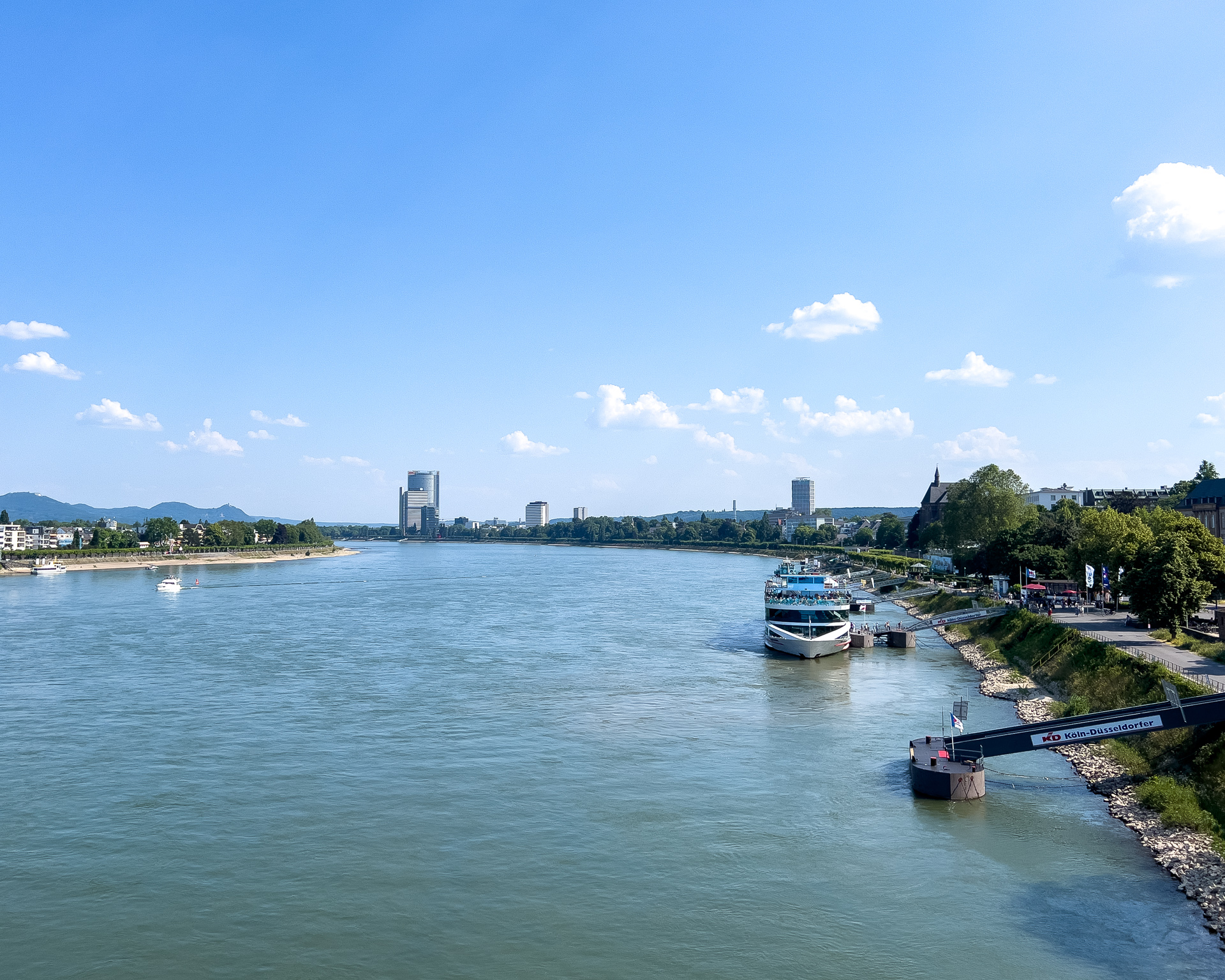 Wir wollten ein bisschen raus und meine Idee war „Schiff fahren auf dem Rhein“. Das ist in Köln nicht mehr ganz so einfach, direkt ab Köln gibt es eigentlich nur noch einstündige Rundfahrten nach Rodenkirchen. In Bonn ist es etwas anders, dort beginnt das Siebengebirge und das Angebot ist entsprechend höher.
