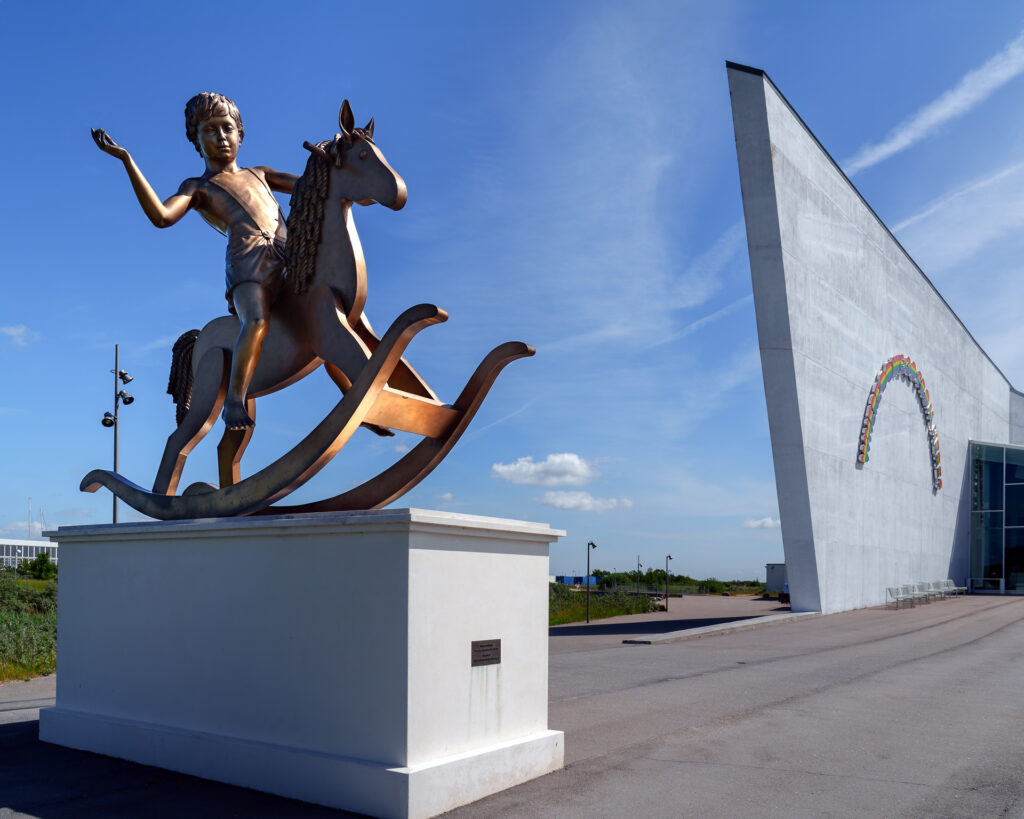 Vor dem Museum steht „Powerless Structures, Fig. 101“, 2012 geschaffen von Michael Elmgreen (geb. 1961; Kopenhagen) und Ingar Dragset (geb. 1969; Trondheim):