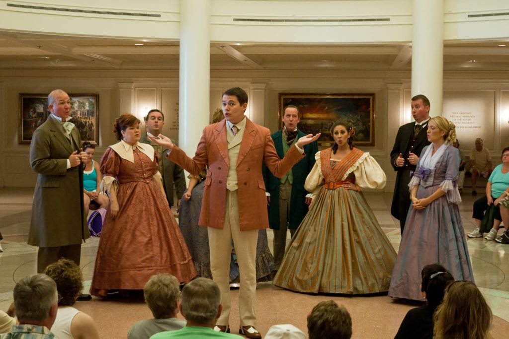 Wir gingen wieder zurück nach Amerika, um 15 Uhr (interessant wie die Zeit vergeht) sollte dort die Vorstellung beginnen. Im Erdgeschoss des Gebäudes sang ein Chor in historischer Kleidung a Capella diverse Lieder und zum Abschluß die amerikanischen Nationalhymne.