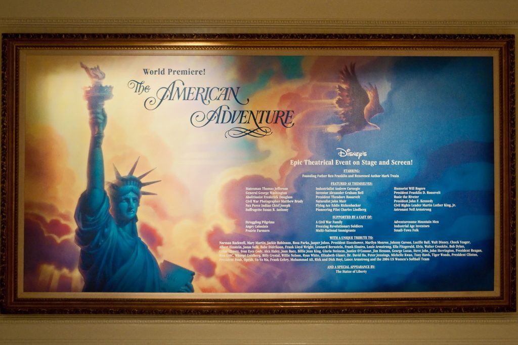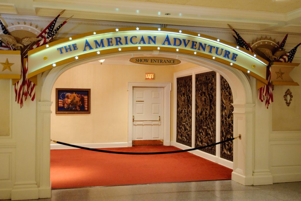 Nach Japan kommt dann der Pavillon der USA. Er ist ziemlich riesig und vermutlich ziemlich neu. Hier gibt es eine Show „The American Adventure“, die leider gerade angefangen hat, also gehen wir erstmal ein bisschen weiter.