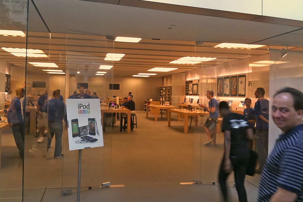 Vorher war aber erstmal shoppen angesagt. In Ft Myers gibt es nämlich keinen Apple Store, und wir wollten ein „Trackpad“ kaufen, das war in Deutschland noch nicht so richtig verfügbar. Nach Frühstück und Auschecken ging es daher zur Florida Mall, in der sich ein Apple Store befindet. Wir kamen weit vor 10 Uhr an, die Geschäfte waren also noch nicht offen. Geparkt haben wir vor JCPenny und deren Eingang war auch offen, führte aber leider nur in den Friseursalon. Also gingen wir um die halbe Mall herum bis wir einen direkten Eingang fanden, und machten uns dann langsam durch die noch ziemlich leere Mall auf zum Apple Store. Dort waren wir dann tatsächlich kurz vor 10 und der Laden wurde gerade geöffnet. Ein paar Leute standen schon davor. Was man hier aus dem Fernsehen von Neueröffnungen kennt, scheint dort täglich stattzufinden. Das Personal steht Spalier und unter dem Applaus der Angestellten betritt man den Laden.