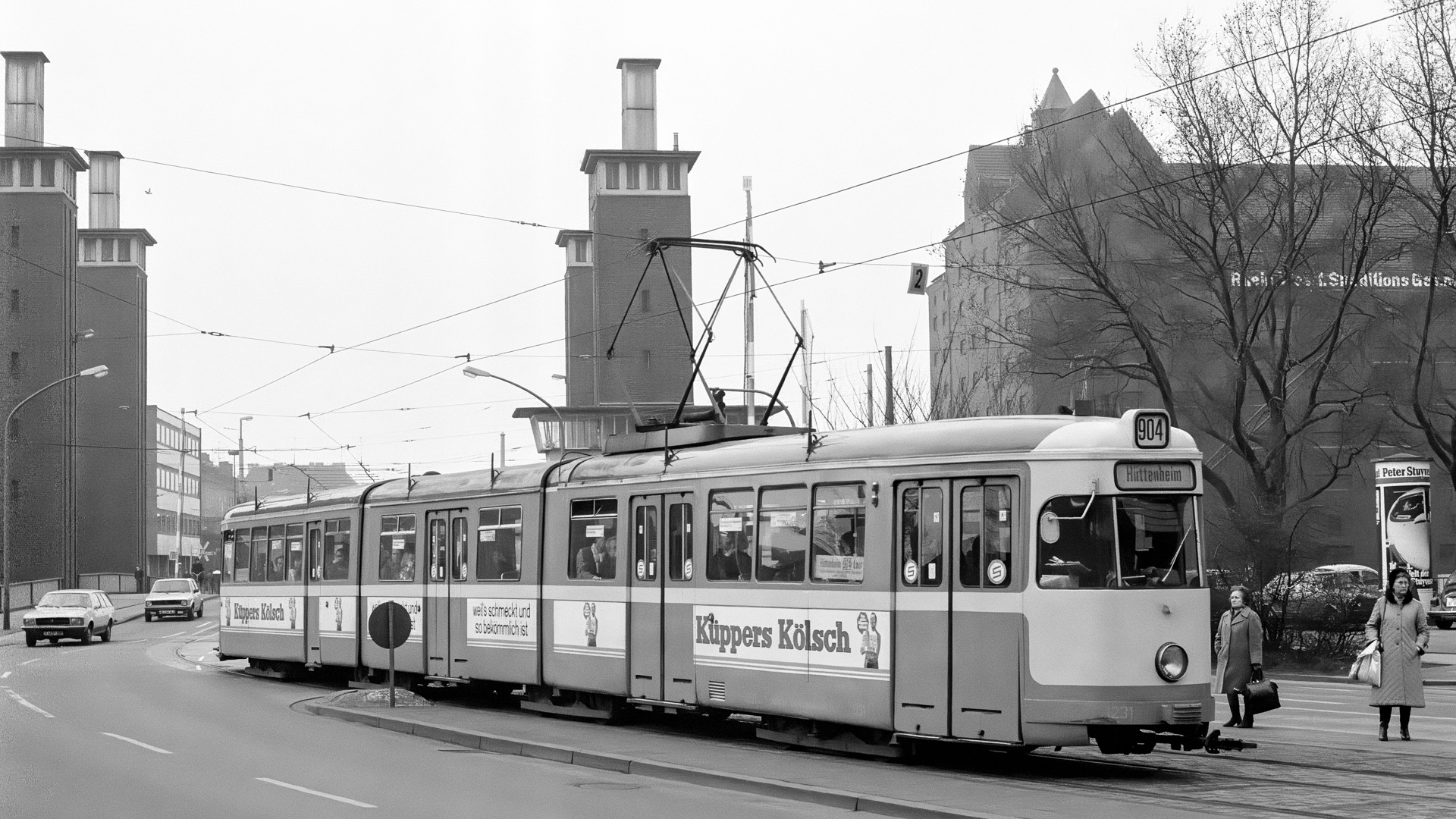 Der Wilhelmplatz in St. Tönis. Die Uhr zeigt 11:30, dies bedeutet, allzu früh bin ich nicht von zu Hause weg. Mit Tw 823 dürfte ich von Krefeld gekommen sein. Hier steht er an der AnkunftshaltesetelleKurz darauf hat er zur Abfahrthaltestelle vorgezogenDer Endpunkt der Straßenbahn am Wilhelmplatz ist in einer Blockumfahrung. Tw 826 kommt die Krefelder Straße entlang und befindet sich am Anfang der Schleife, rechts aus der „Kurze Straße“ kommen die Bahnen dann wieder zurückUnd hier der Wagen formatfüllendTw 823 beginnt die Rückfahrt nach Krefeld. Die Bauernstube ist inzwischen VergangenheitAuch diesen Zug gibt es in großWieder zurück in Krefeld fotografiere ich einen Zug der Linie 76 an der Haltestelle Rheinstraße, dem Mittelpunkt des Krefelder Straßenbahnnetzes. Dies ist die jahrzehntelang klassische Ansicht mit dem Kaufhaus Horten im HintergrundDas Motiv gibt es auch im HochformatIn der Gartenstadt war die Neubaustrecke zur Elfrather Mühle im Jahr vorher (April 1982) eröffnet worden und für mich daher interessant. Die Endstelle besitzt nur Stumpfgleise, daher mussten hier M8 eingesetzt werden.