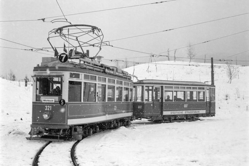 Und dann bin ich noch einmal Milchbuck mitgefahren. Da kam mir dann Tw 321 und Bw 687 nochmals vor die Linse, leider wieder mit Schneeflocken: