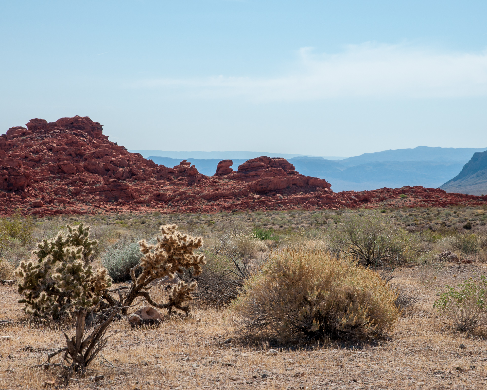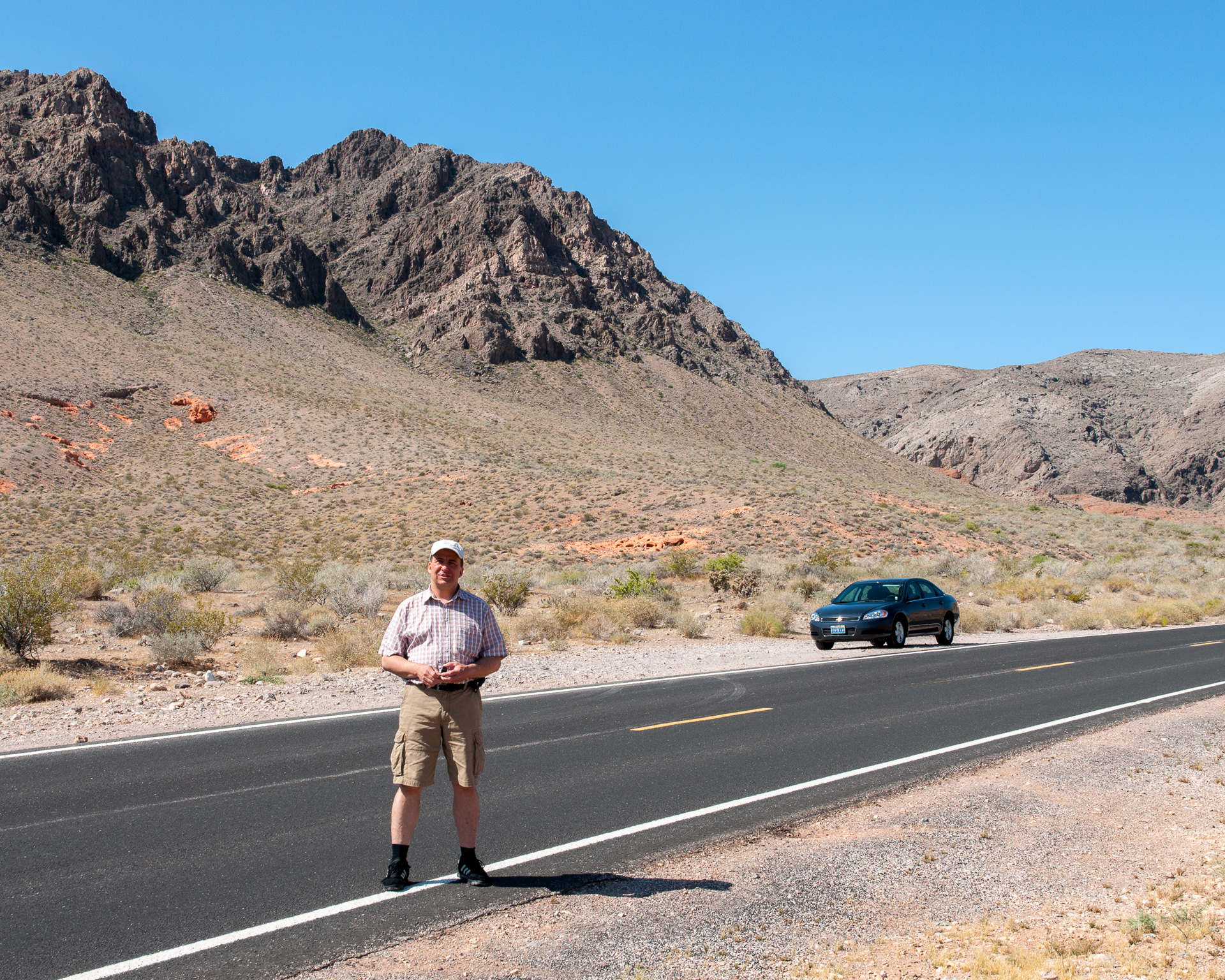 Dank Feiertag war in Las Vegas nichts los, und es war kein Problem auf die Interstate und aus der Stadt herauszukommen. Das Gleiten auf der Autobahn endete jedoch recht schnell und es ging rechts ab zum Valley of Fire. Die Straße war jetzt kurvig und zunächst völlig unspektakulär und wandelt sich dann langsam.