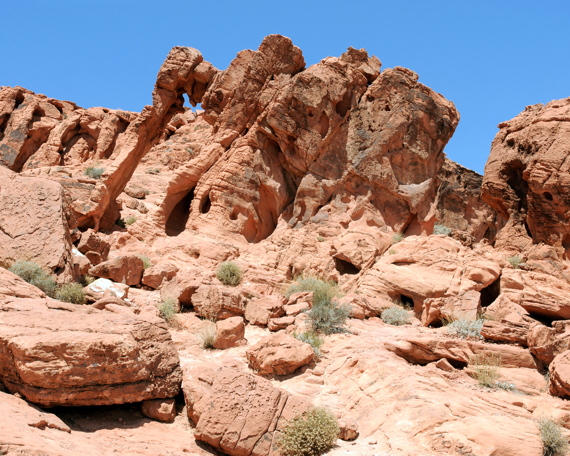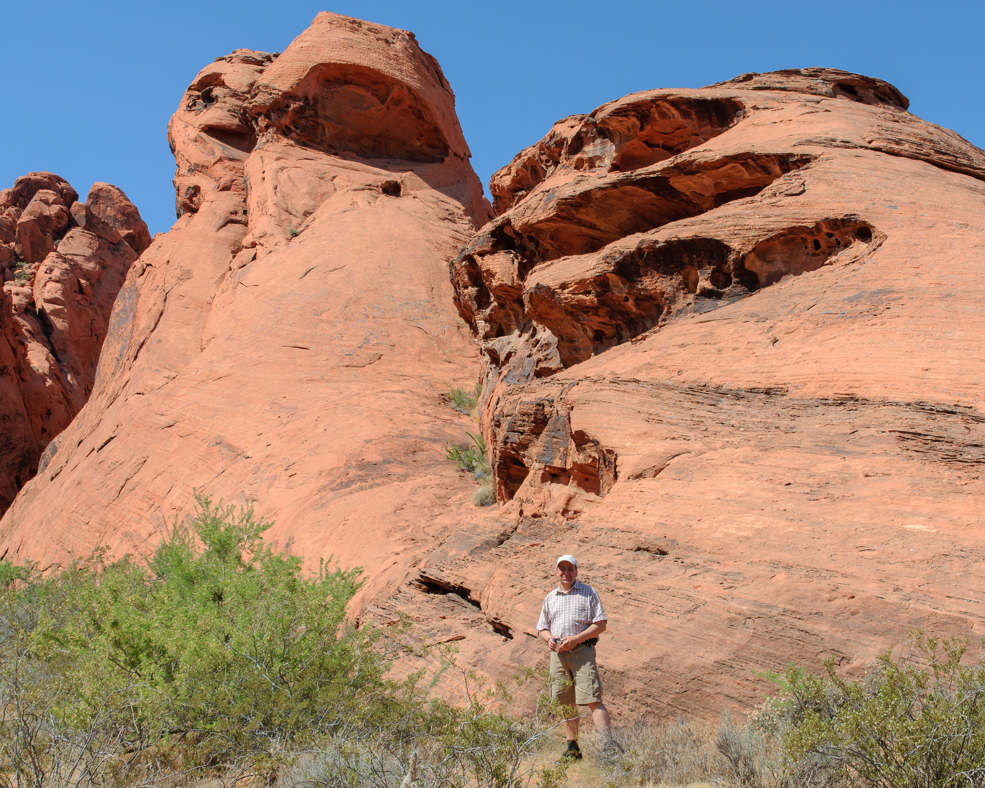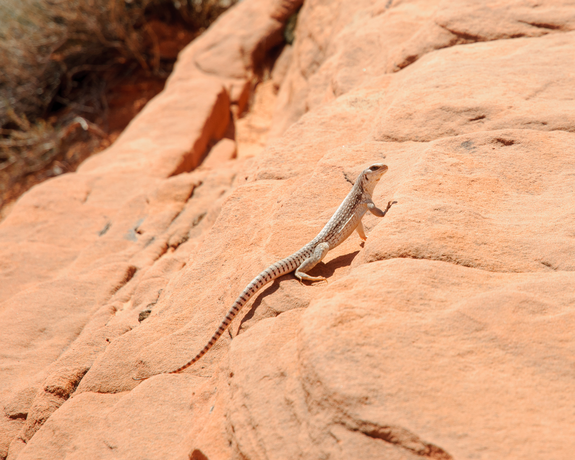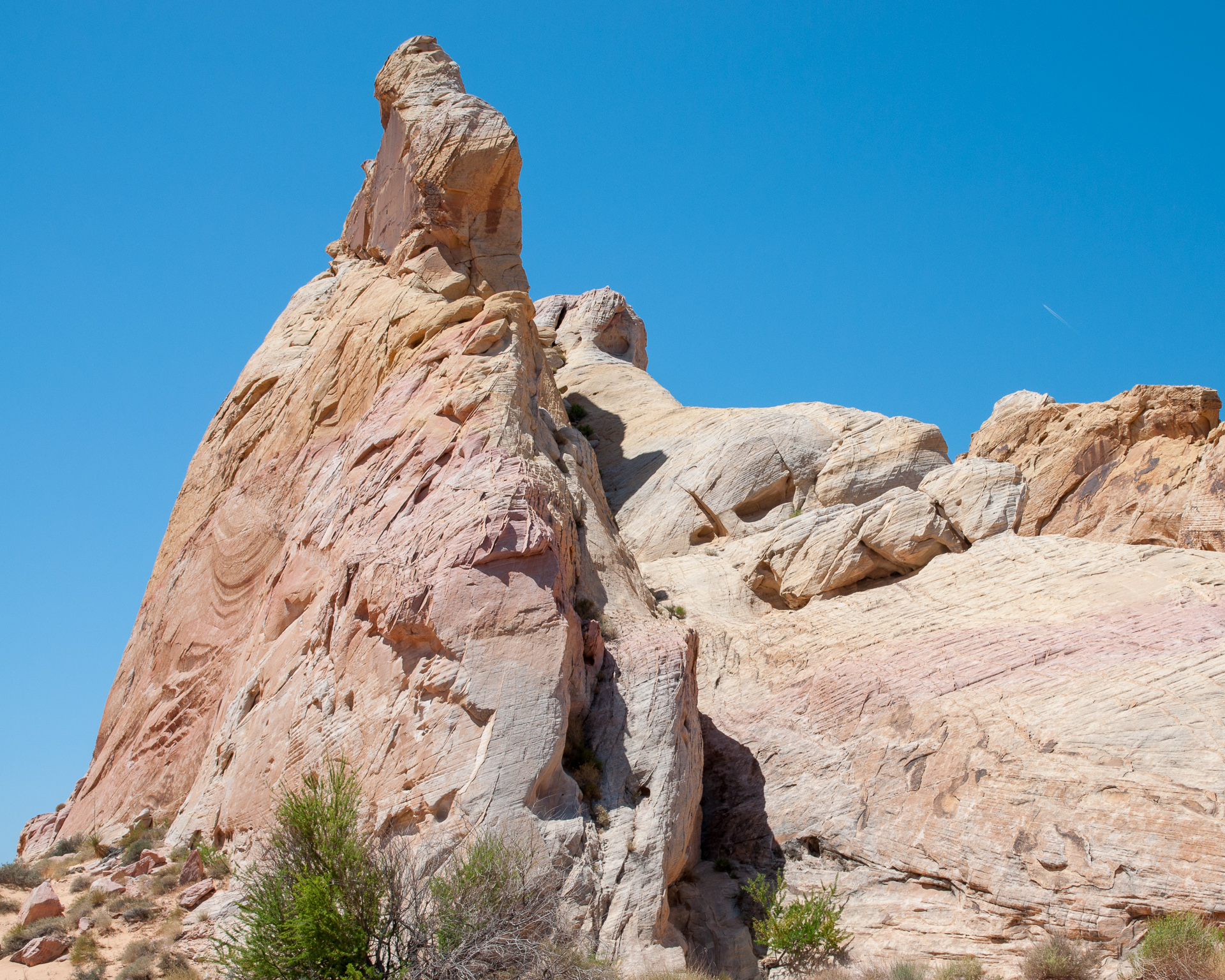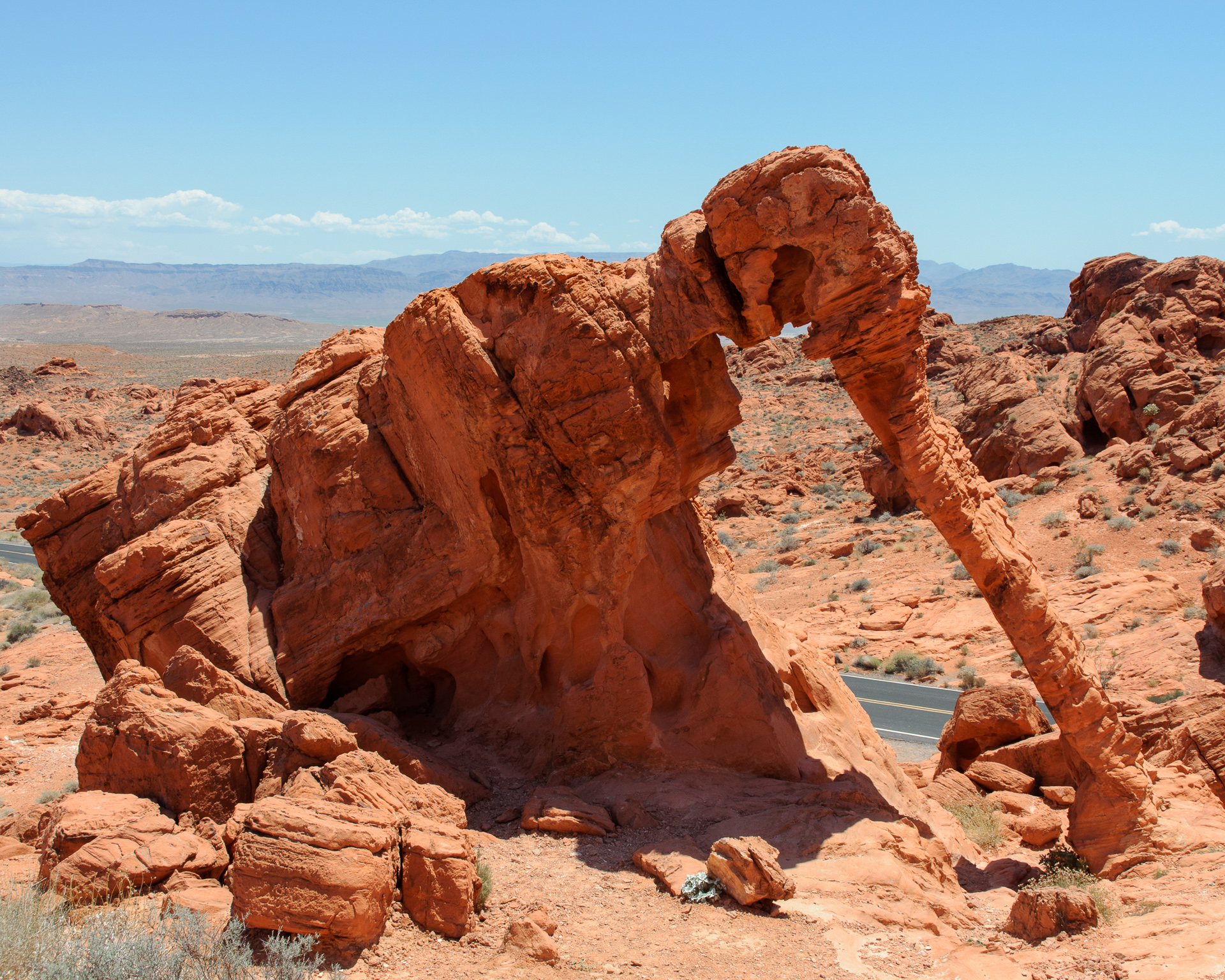 Wir durchfuhren das ganze Valley of Fire einschließlich der Stichstraße zur White Mesa recht gemütlich mit vielen Fotohalten an den bekannten Punkten, also Atlatl Rock, Arch Rock, Rainbow Vista, White Domes und zum Schluß natürlich auch am Elephant Rock.