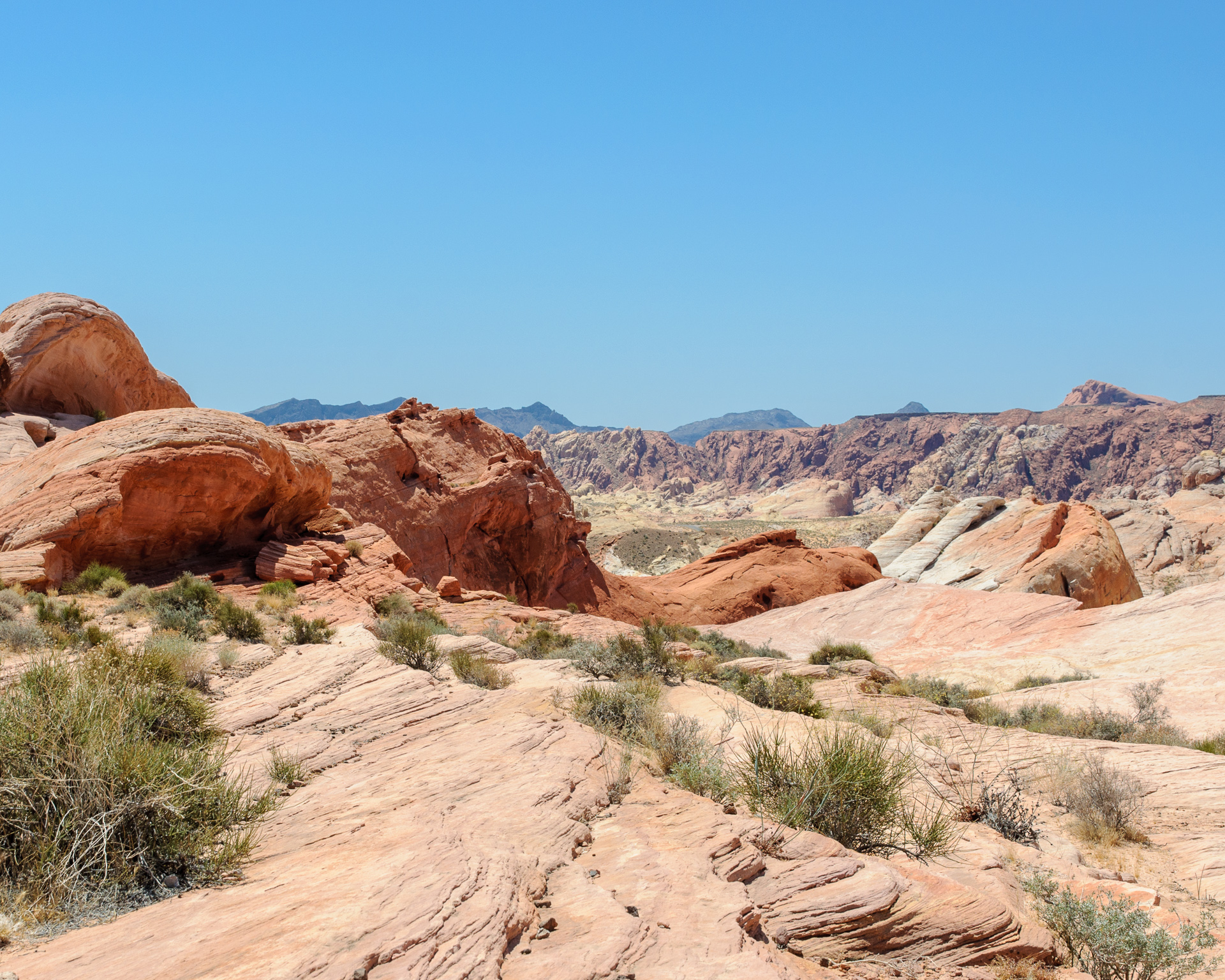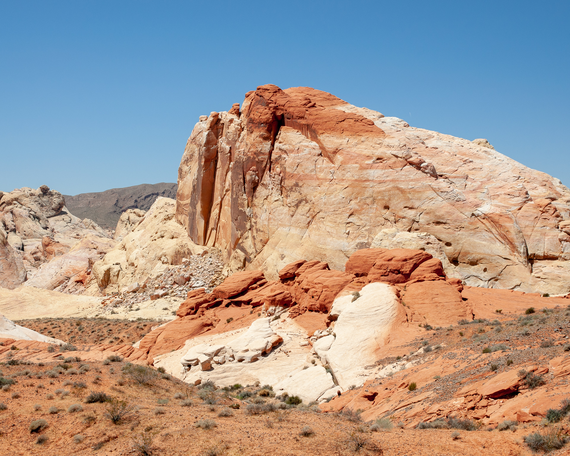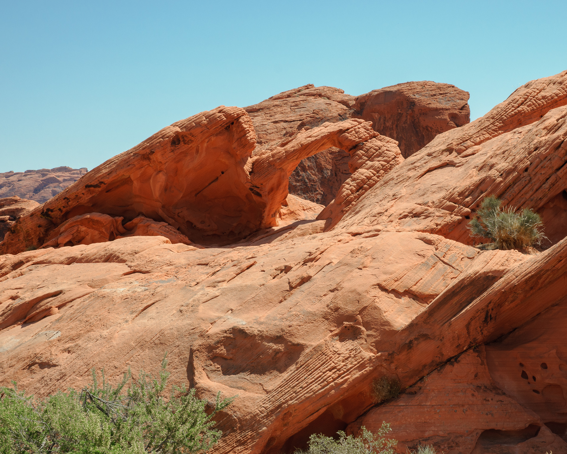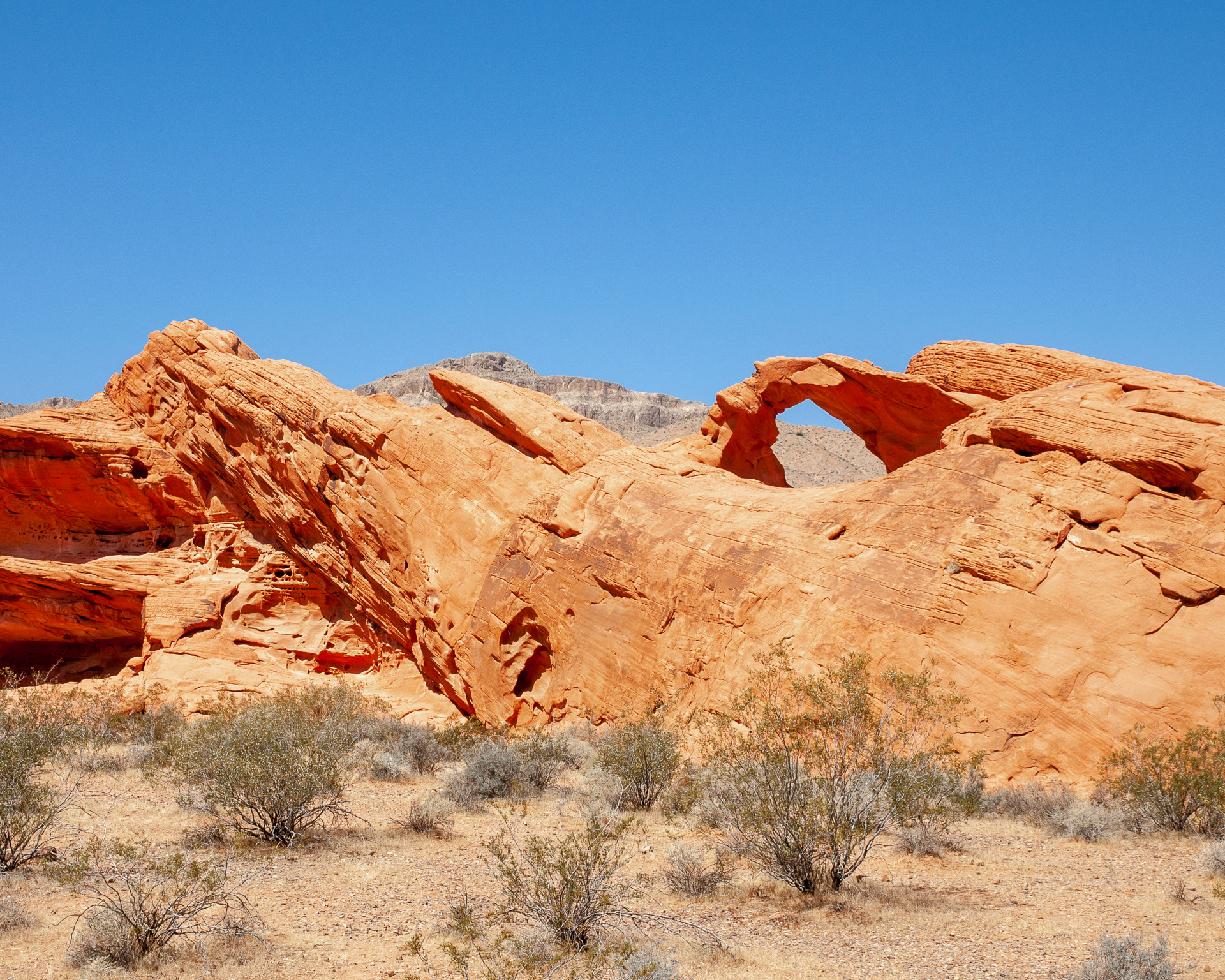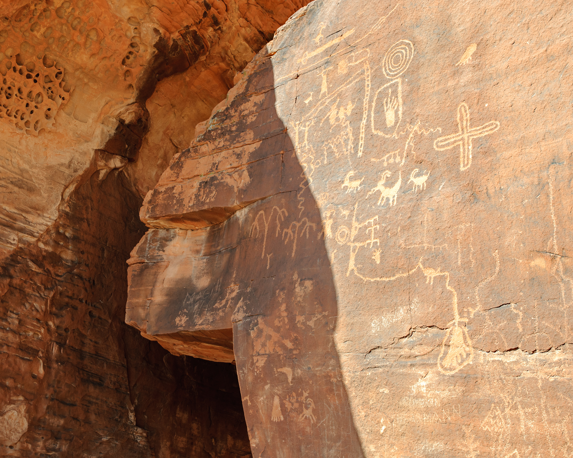 Wir durchfuhren das ganze Valley of Fire einschließlich der Stichstraße zur White Mesa recht gemütlich mit vielen Fotohalten an den bekannten Punkten, also Atlatl Rock, Arch Rock, Rainbow Vista, White Domes und zum Schluß natürlich auch am Elephant Rock.