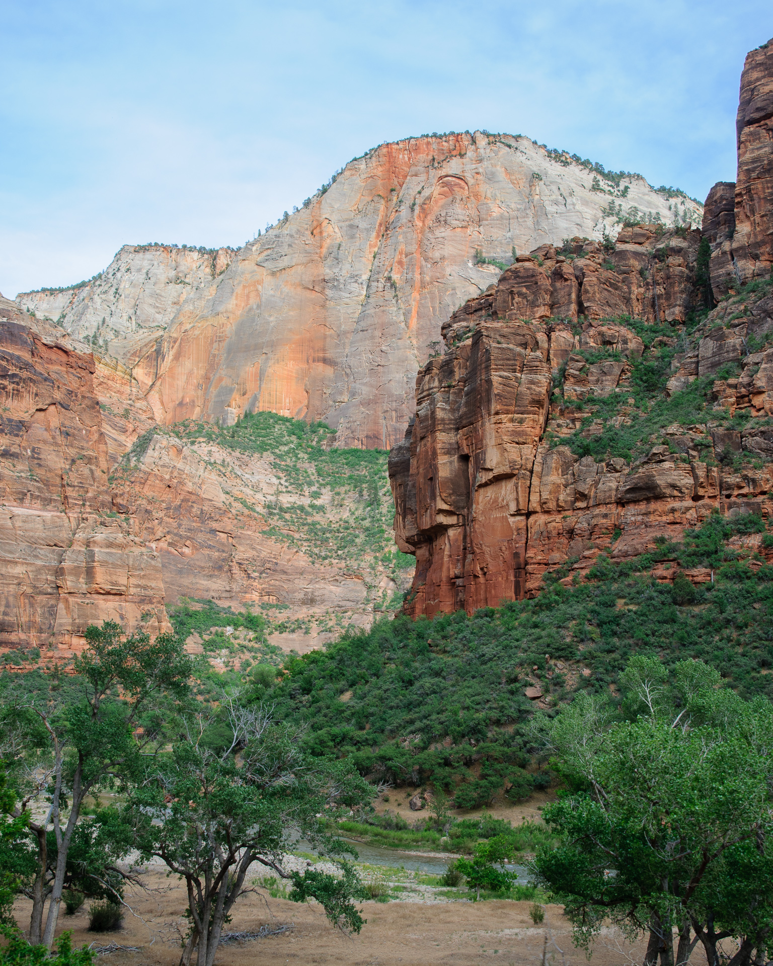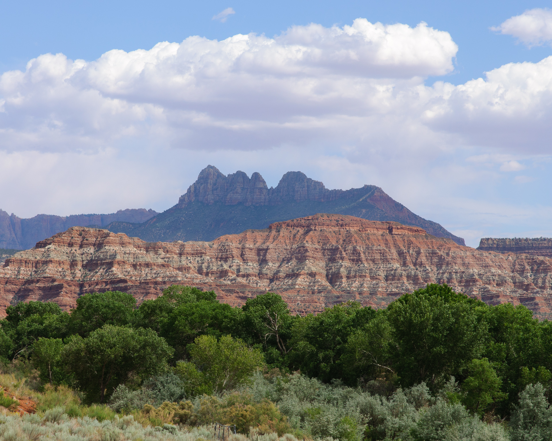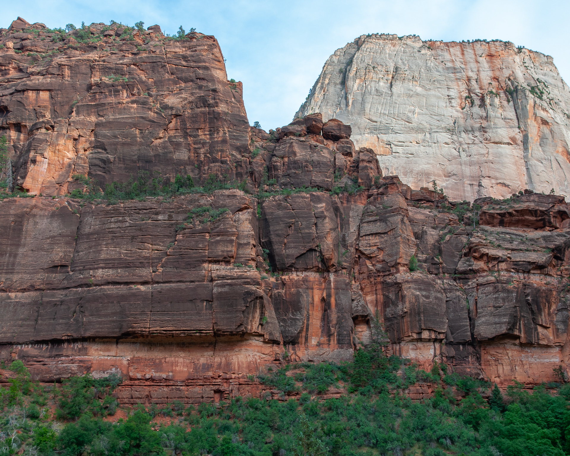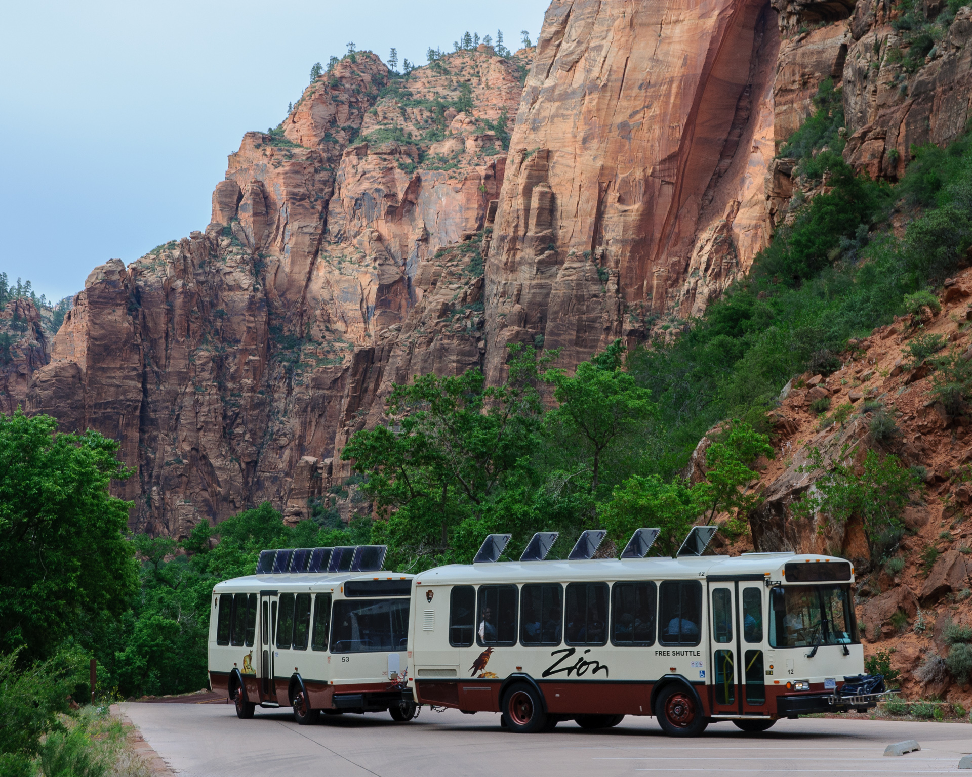Weiter gings nach Springdale. Meine Zeitplanung geriet hier etwas durcheinander, da es sowieso schon recht spät war und ich die Stunde Zeitverschiebung auch nicht berücksichtigt hatte. Es war schon 17 Uhr als wir bei unserem Hotel, dem Best Western Zion Park Inn, vorfuhren, und nach dem Check-in machten wir uns dann doch noch auf in den Zion. Die späte Ankunft war vielleicht gar nicht mal schlecht, während unseres Aufenthaltes am Visitor Center waren alle ankommenden Busse aus dem Canyon bis auf den letzten Stehplatz gefüllt, wir machten eine Rundfahrt bis zum Ende und zurück in einem praktisch völlig leeren Bus.