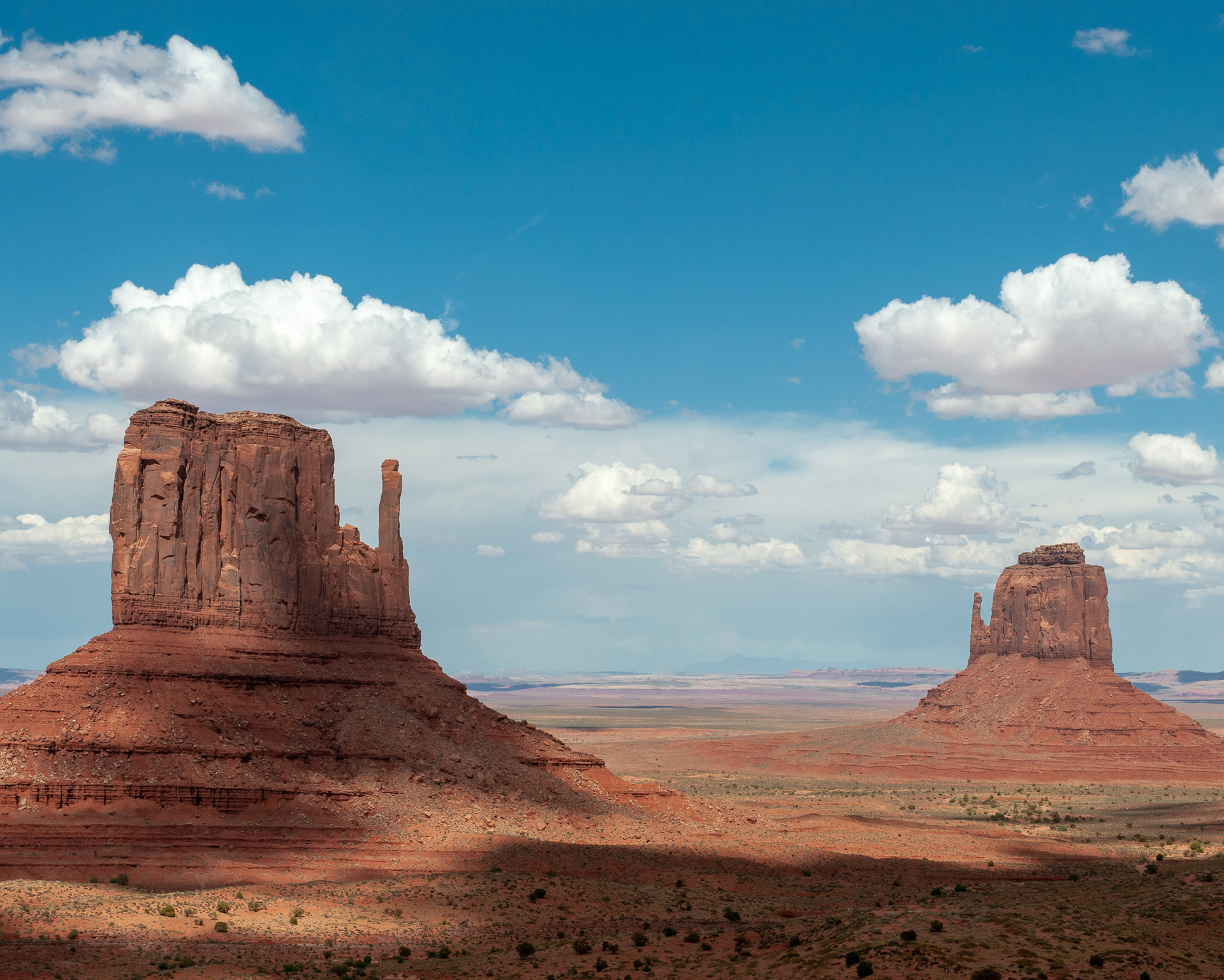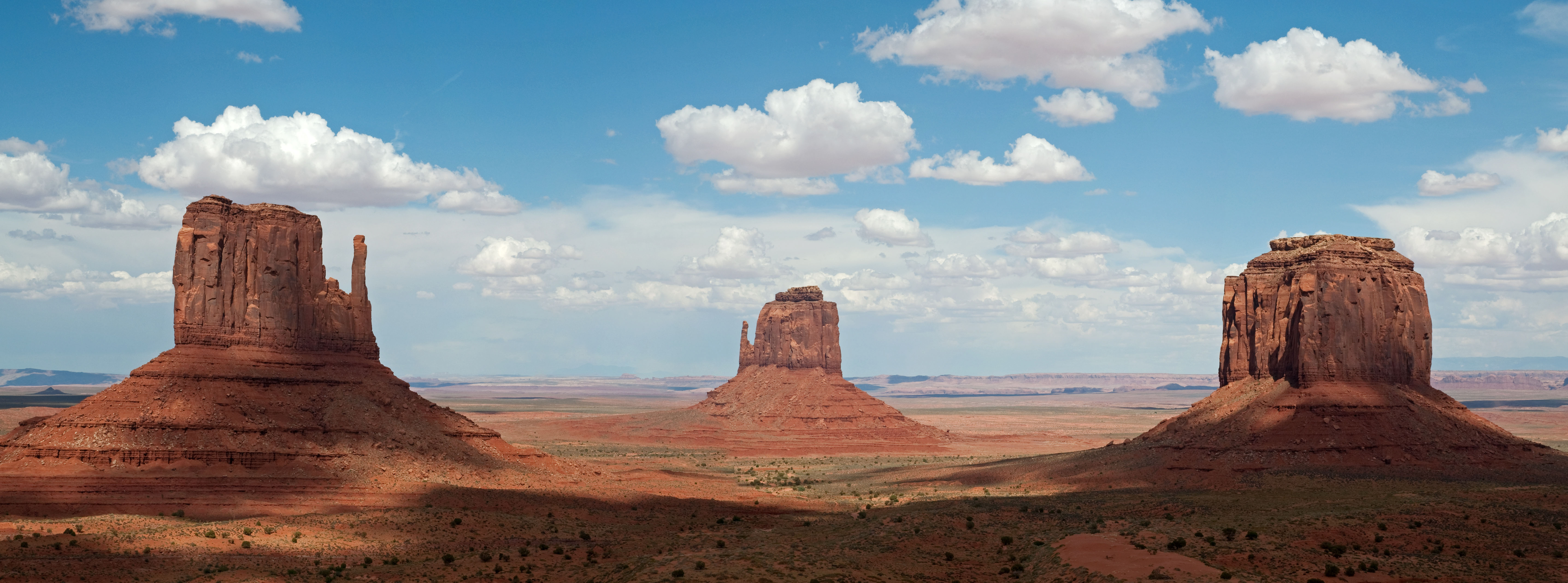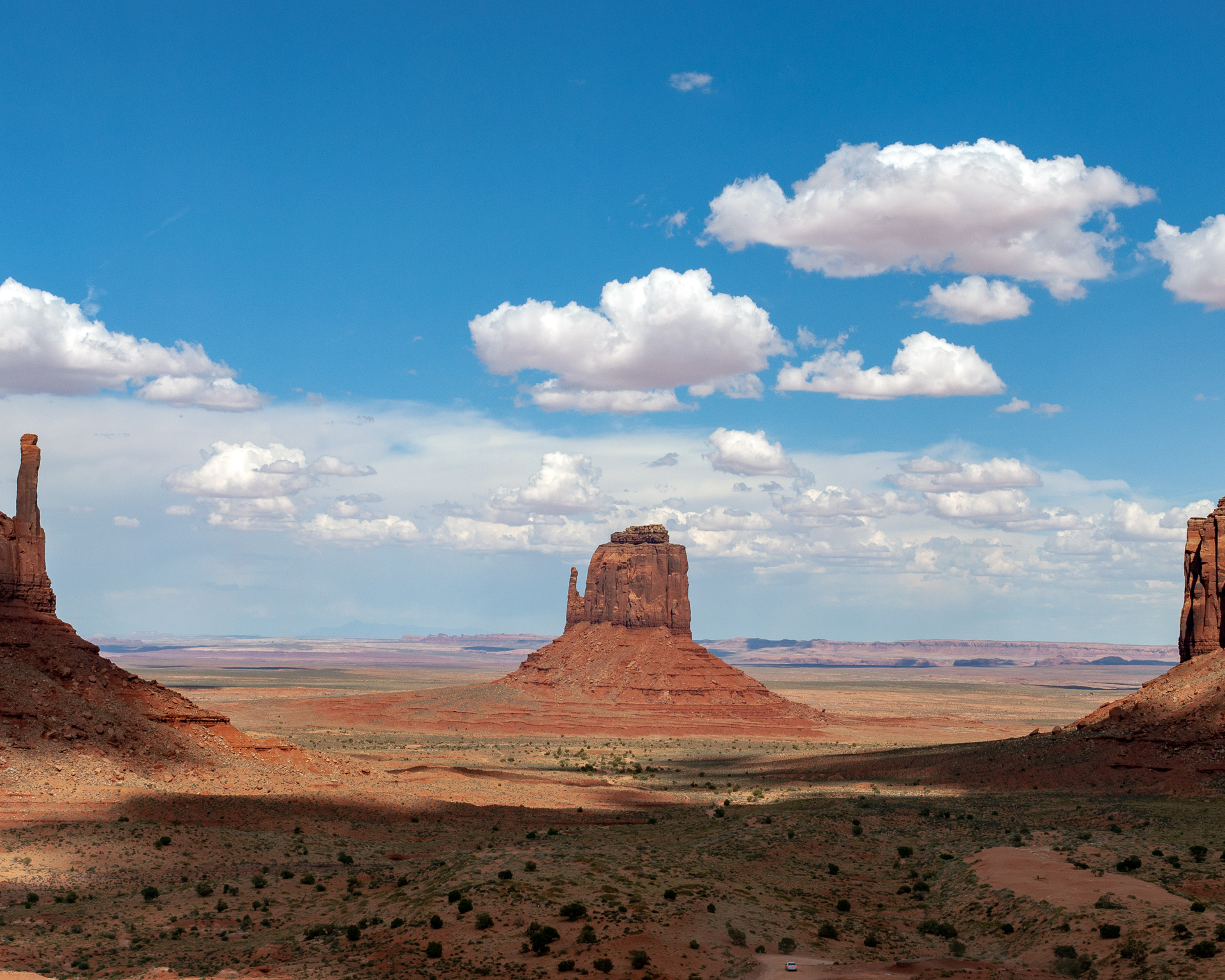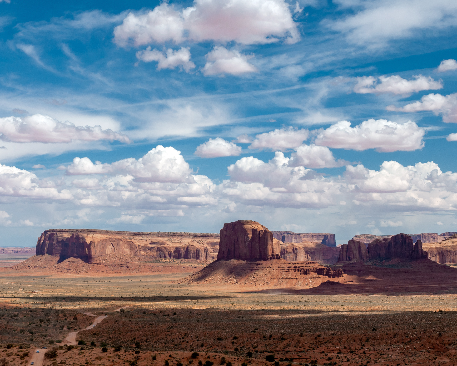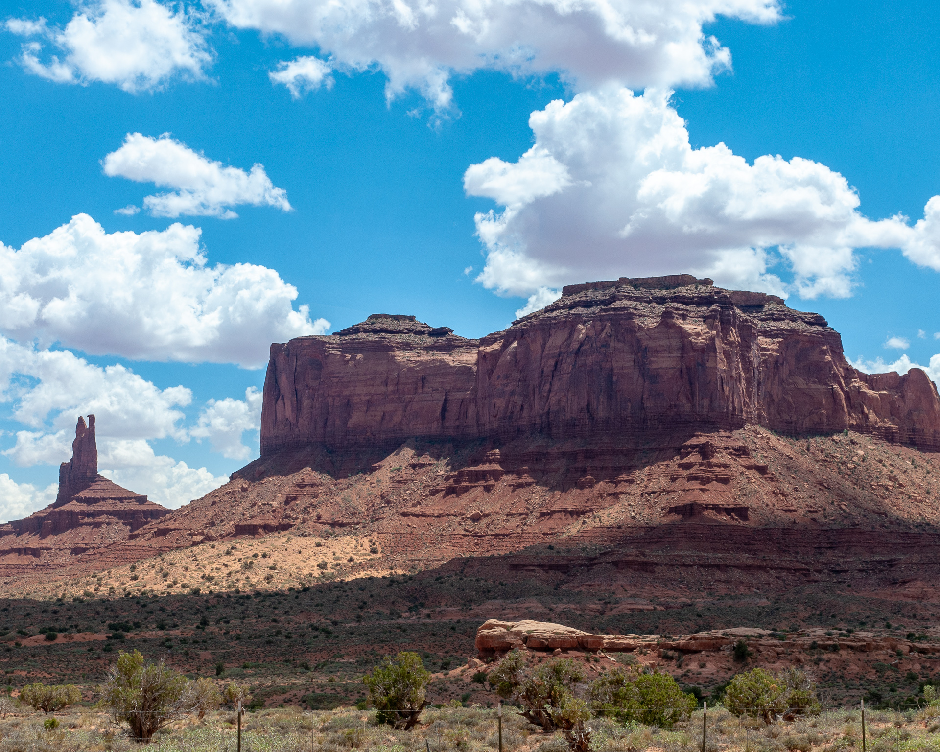 Alle drei Buttes schafft man nicht auf ein Foto in „normalem“ Format. Dafür braucht man ein Panorama. Ich hab mal eins zusammengesetzt: