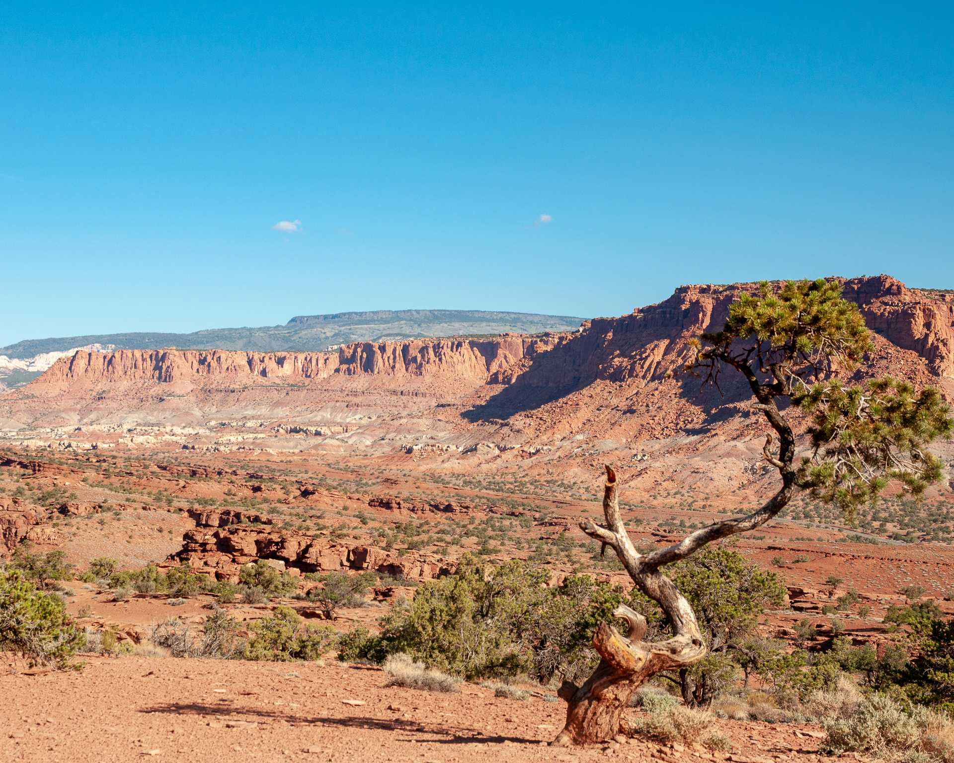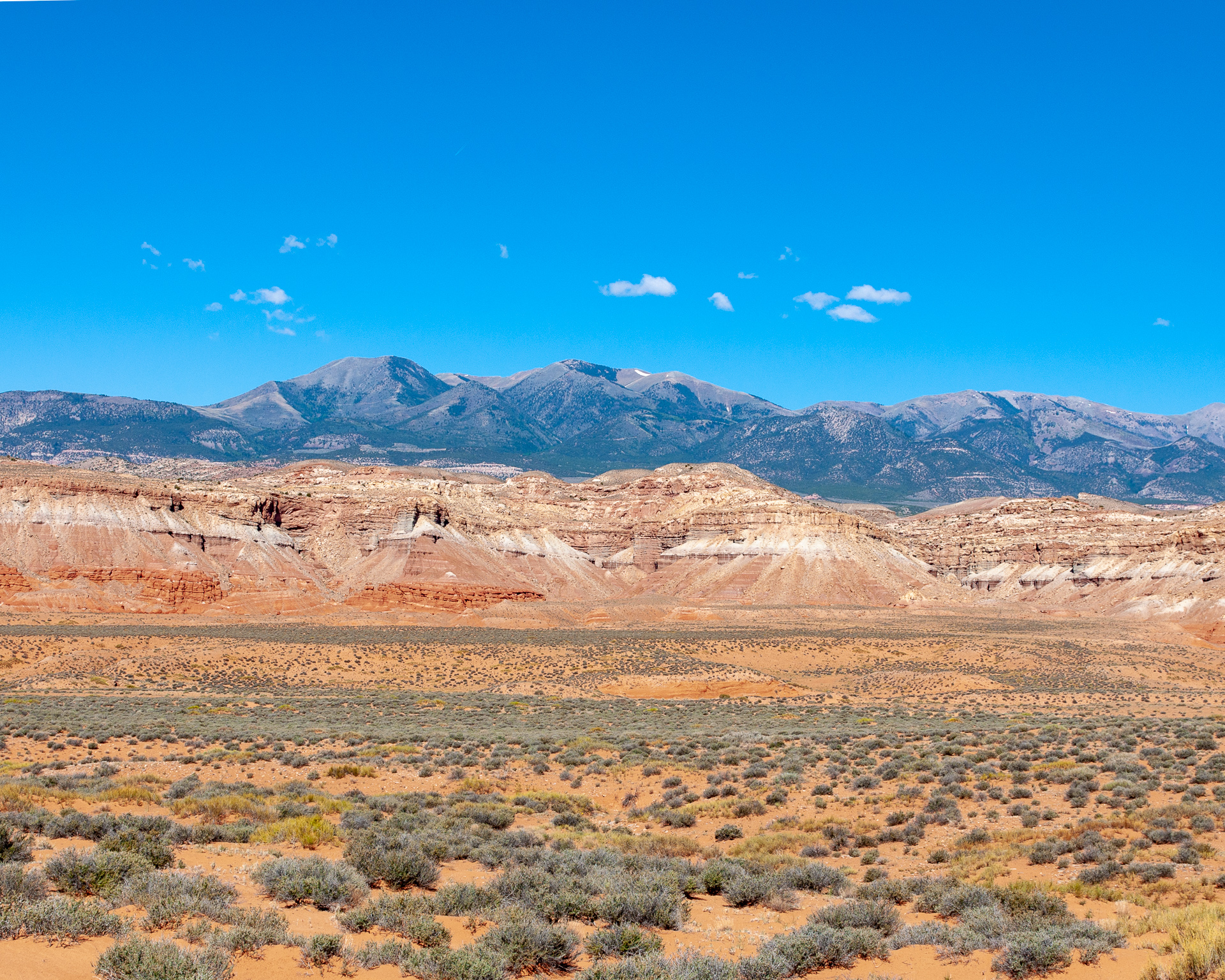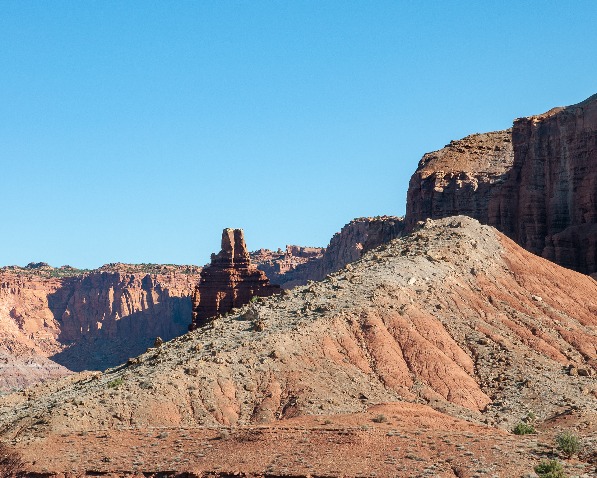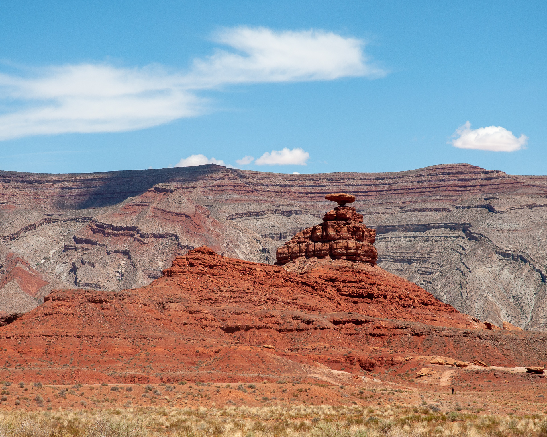 Mit dem heutigen Tag verlassen wir dann ein bisschen die eingetretenen Touristenpfade, auch war es der erste der „Fahrtage“ mit recht langen Strecken. Ziel war das Monument Valley und Kayenta als Übernachtungsort. Zunächst fuhren wir also die UT24 weiter nach Hanksville, und machten zum dritten Mal einen Stop am Chimney Rock. (Auf dem Rückweg gestern Abend hatten wir auch gehalten). Interessant, die Landschaft sieht abhängig vom Licht jedesmal anders aus.