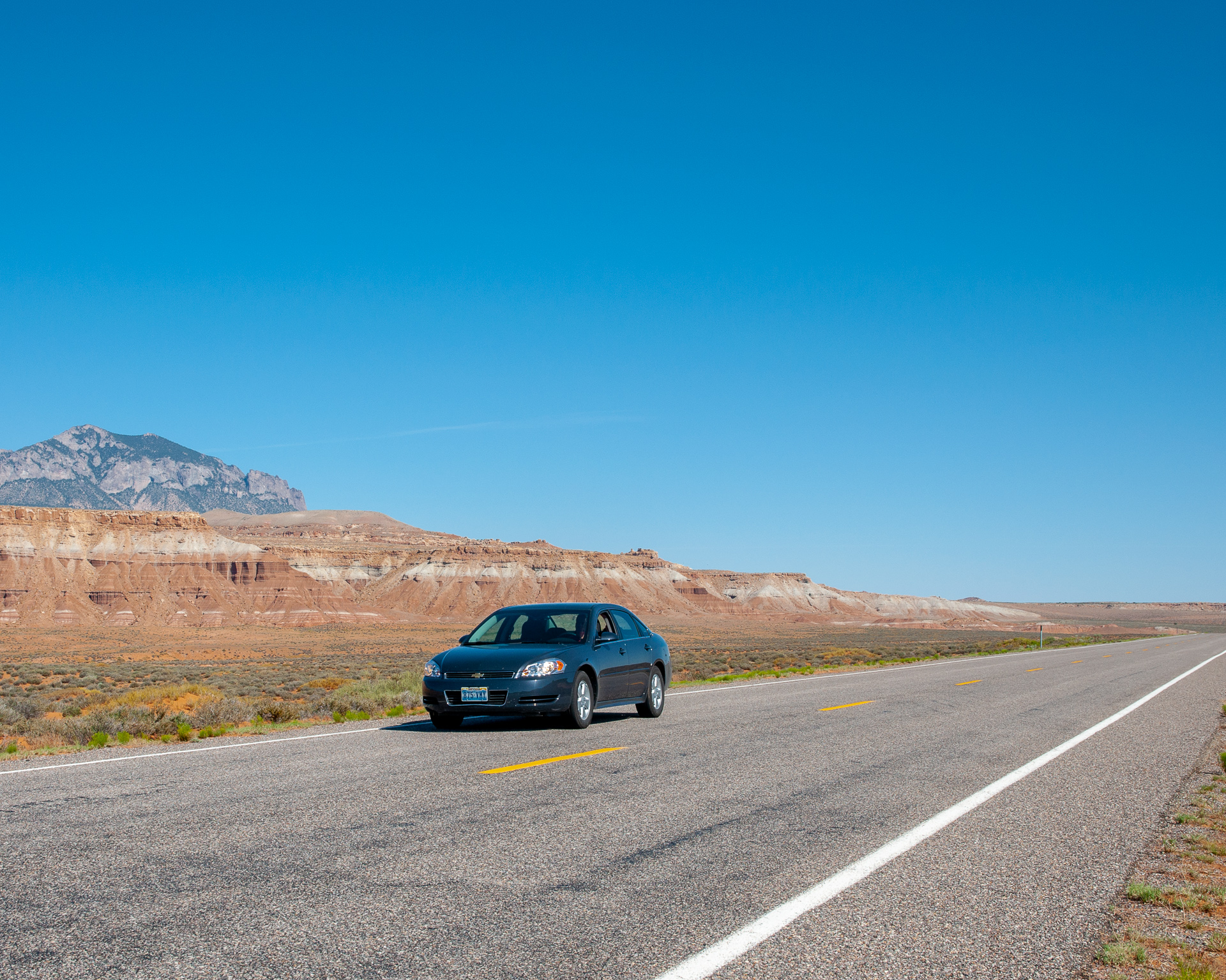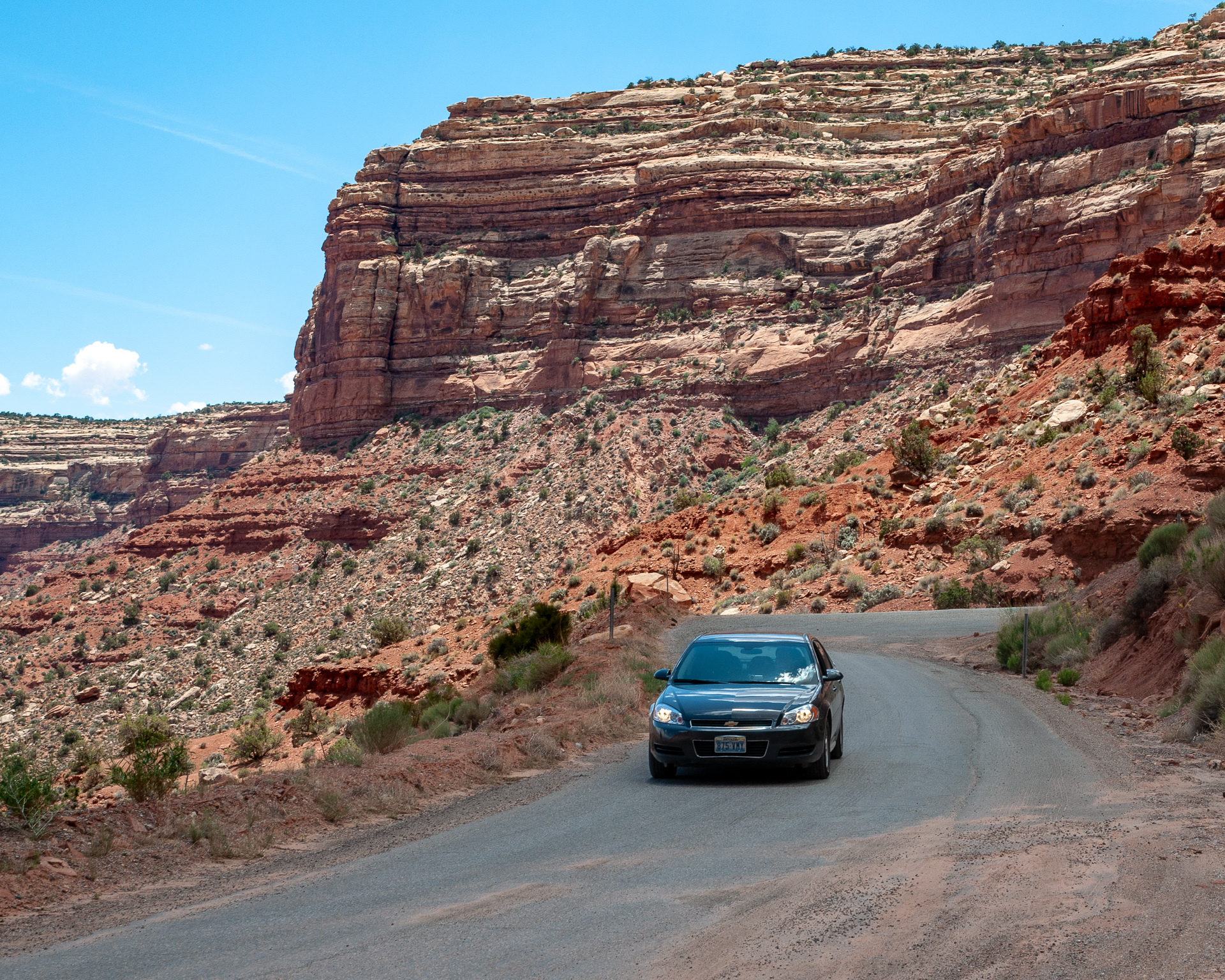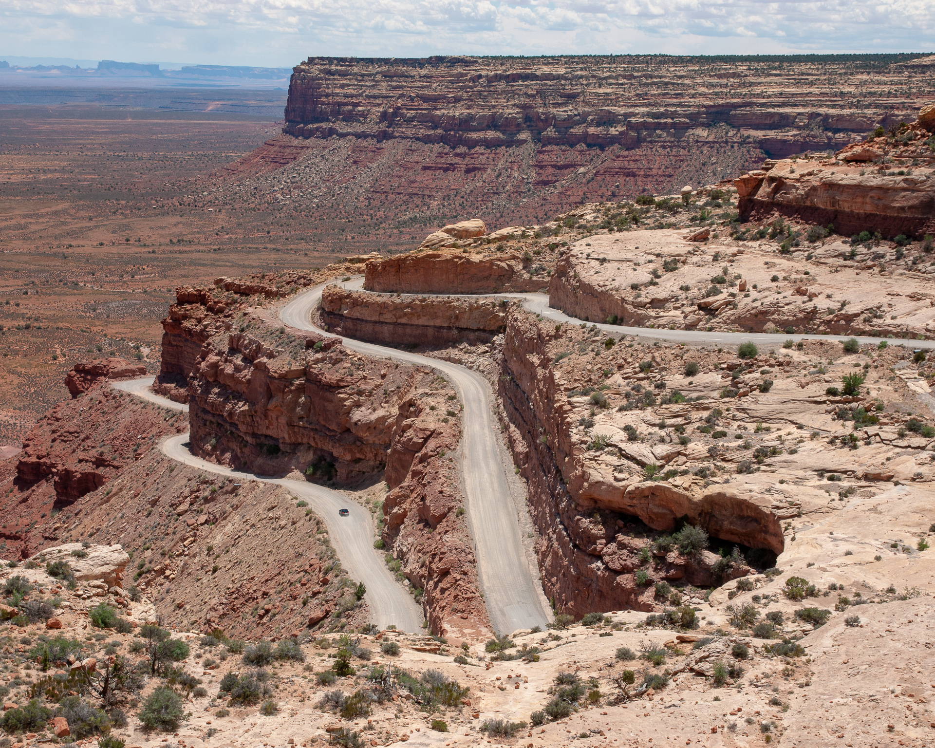 Weiter gings, rechts ab auf die 261 und unser Auto musste die einzigen zwei nichtasphaltierten Meilen des Urlaubs überwinden, den Moki Dugway abwärts. Der war total easy zu fahren.