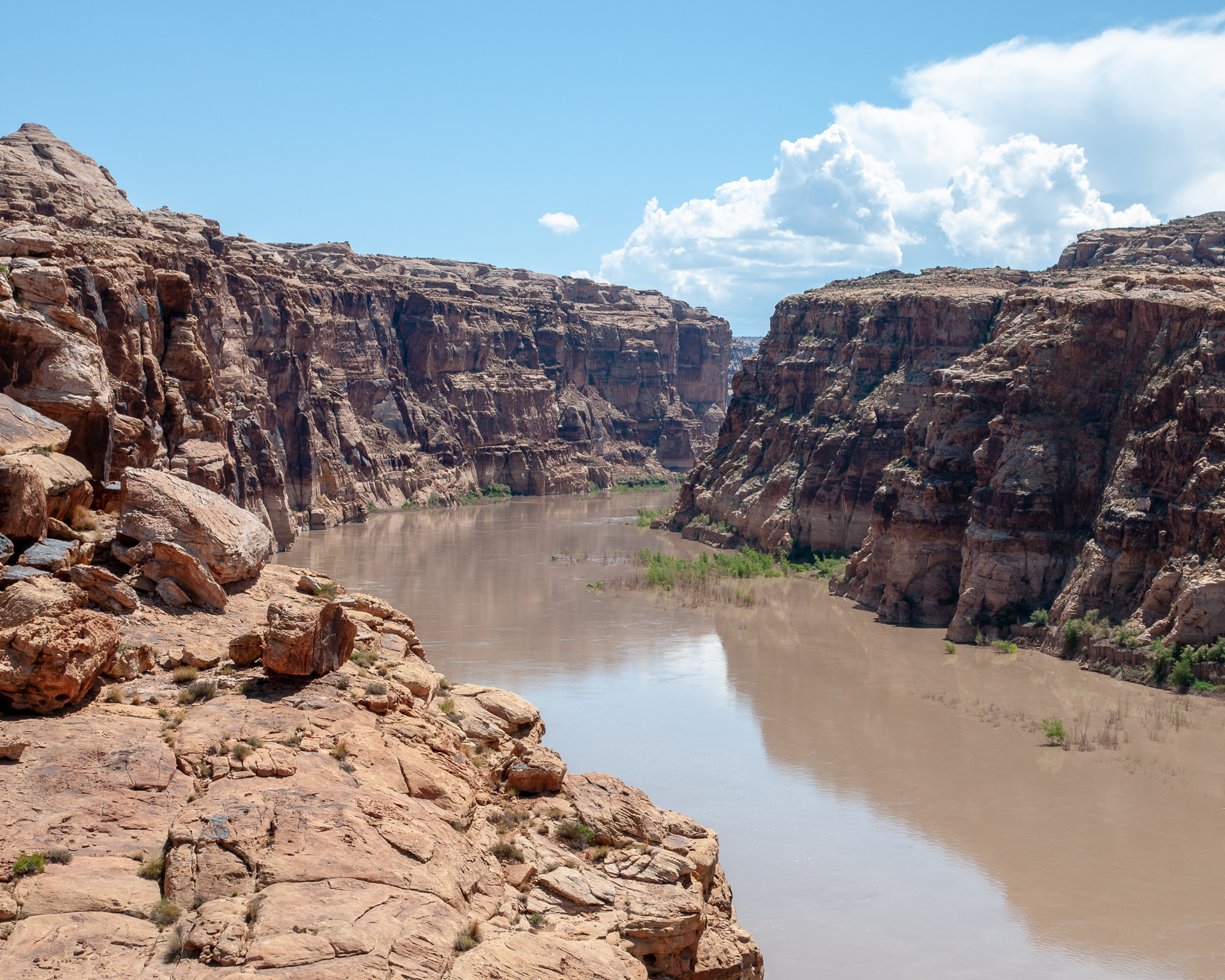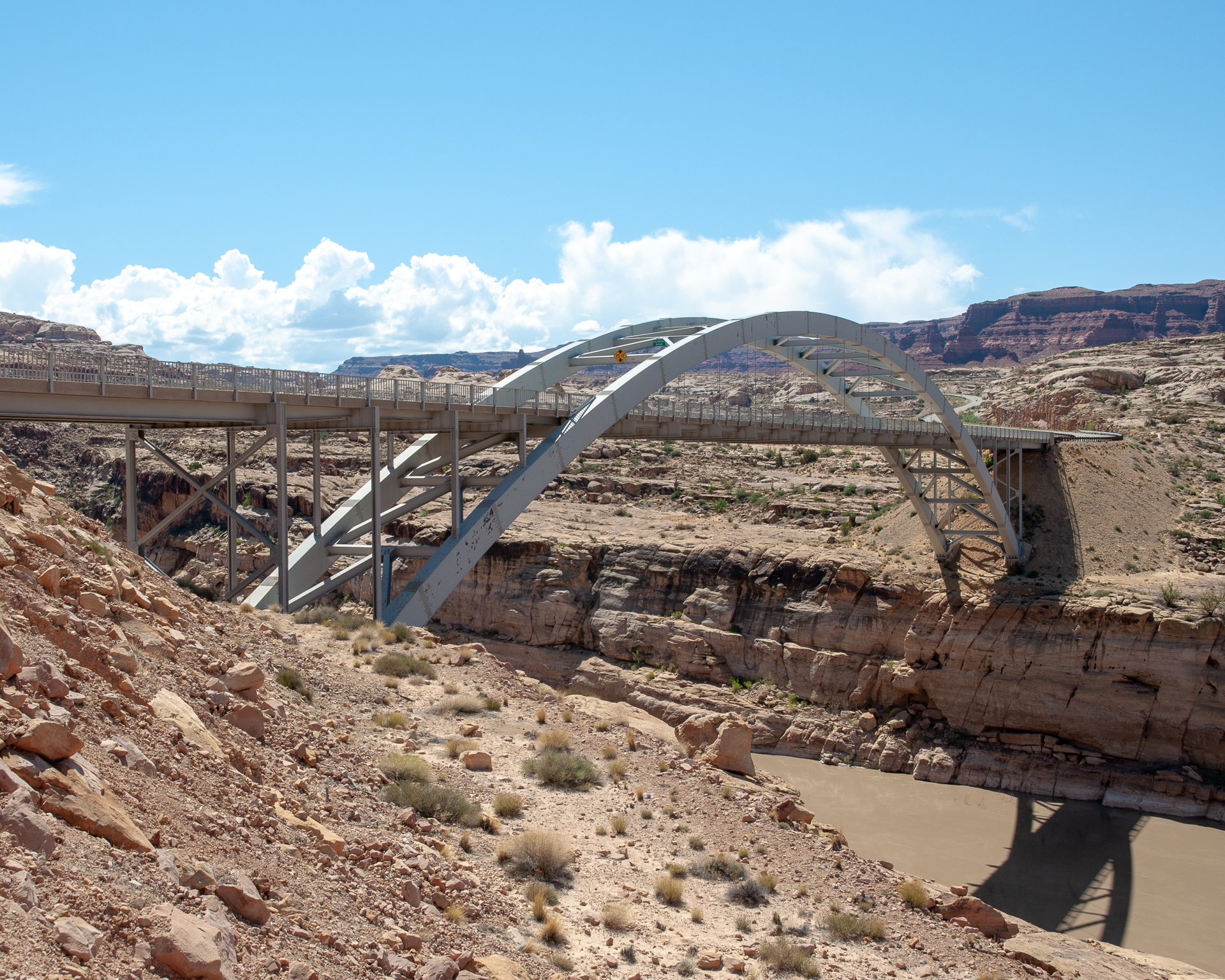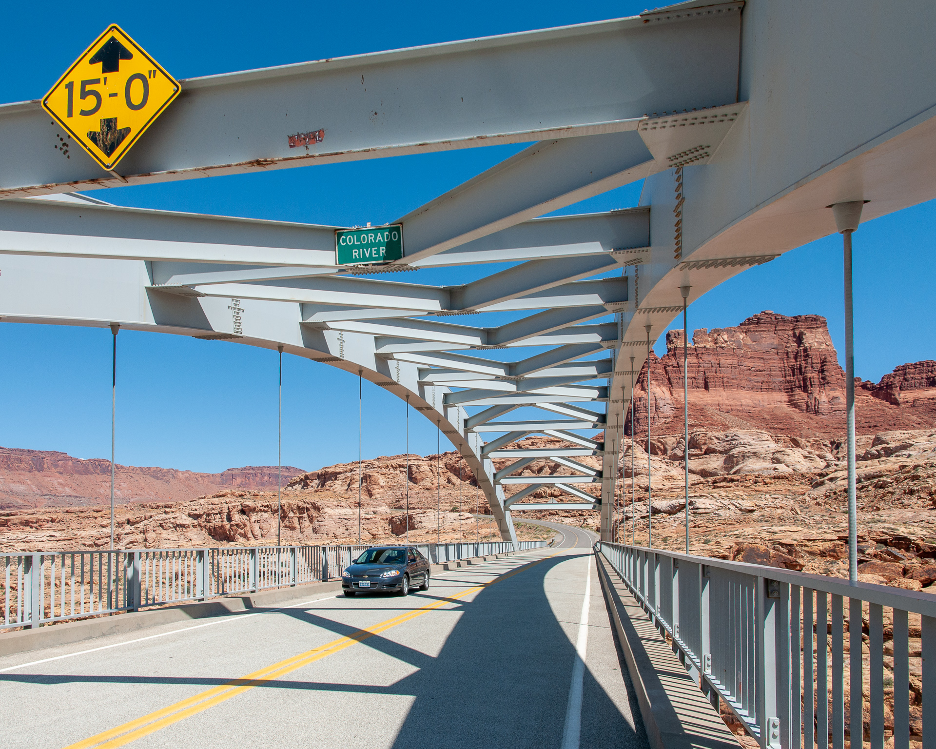 Damit kommen wir dann zum ersten Highlight, der Überquerung des Colorado. Der Wasserstand des Lake Powell war zum Zeitpunkt unserer Reise verhältnismässig hoch.