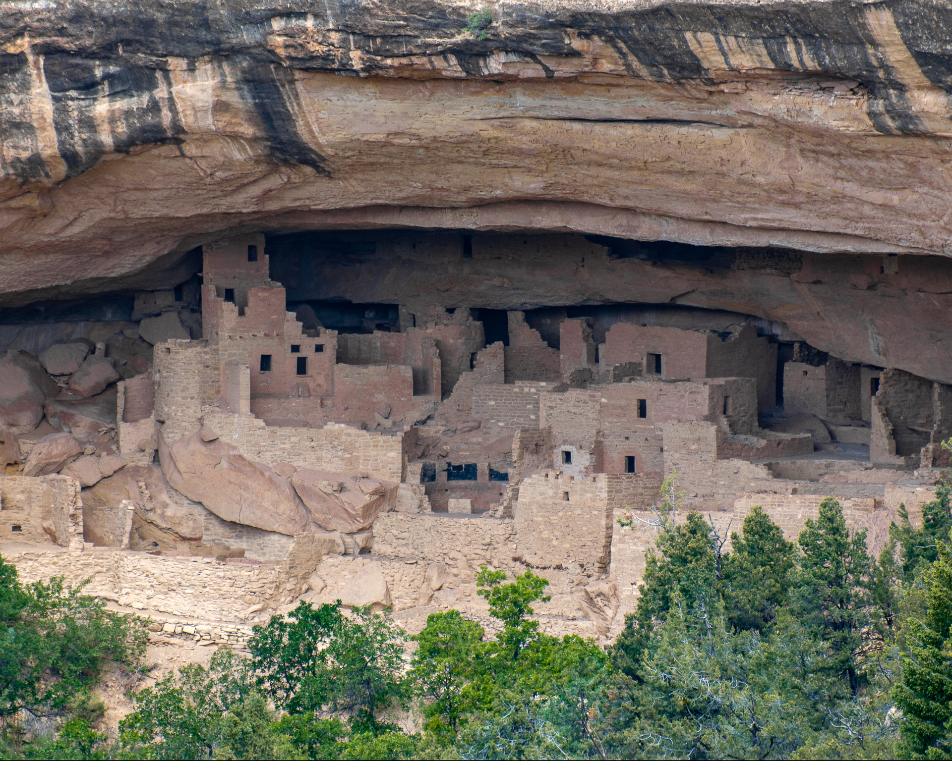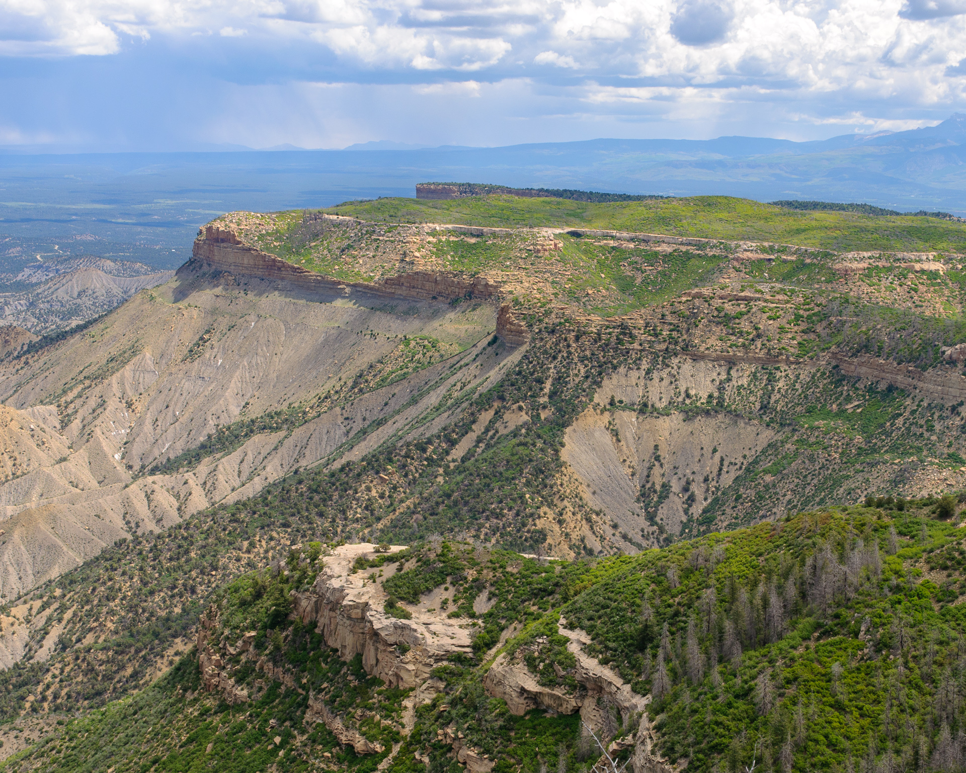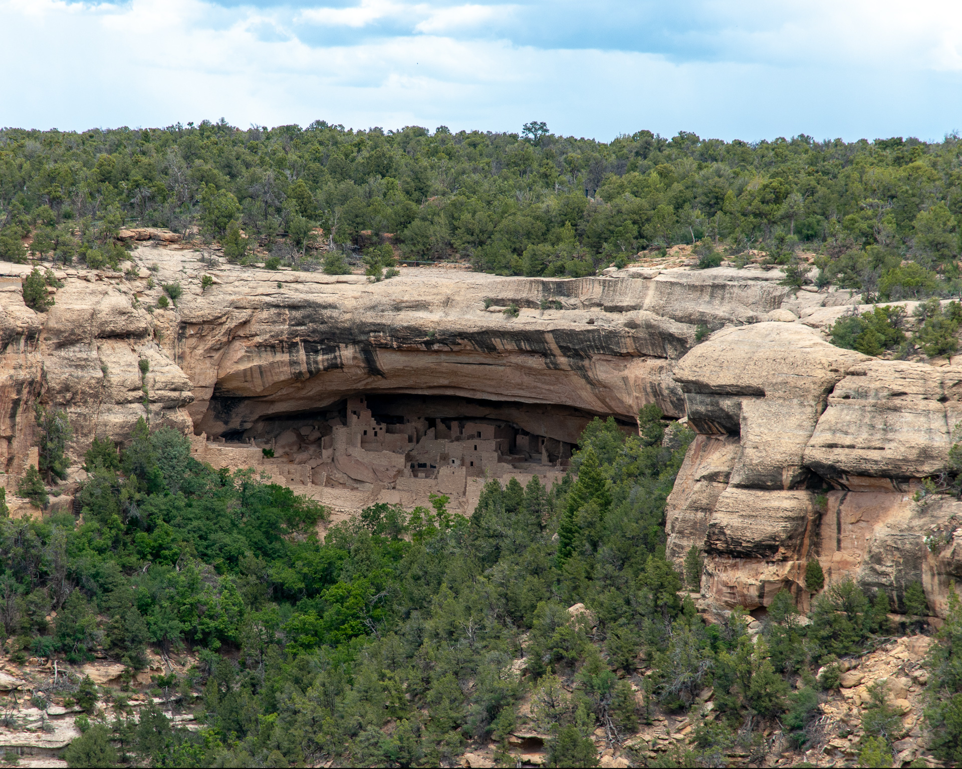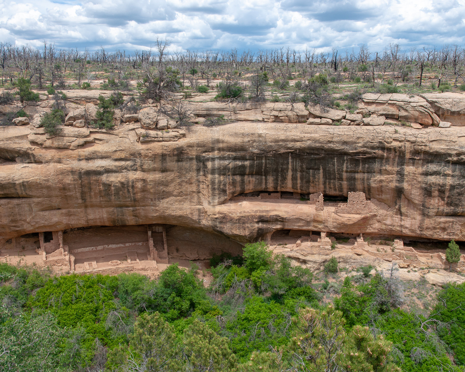 Dann geht es flott Richtung Osten. Ein paar Meter (ziemlich wörtlich zu nehmen) führen durch New Mexico, damit haben wir den Staat auch befahren. „Welcome“ Schilder spart man sich jedoch. Das Four Corners Monument lassen wir links liegen. Recht schnell ist dann Cortez erreicht, ab hier fällt uns der dichte Verkehr auf, nach den letzten Tagen sind wir das gar nicht mehr gewohnt. Programmpunkt heute ist der Mesa Verde Nationalpark. Dieser liegt recht hoch und die Zufahrtsstraße zieht sich 20 Meilen in die Berge hinein. Wir machen ein paar Stops einschliesslich des höchsten Punktes, Park Point Overlook auf 2600m.