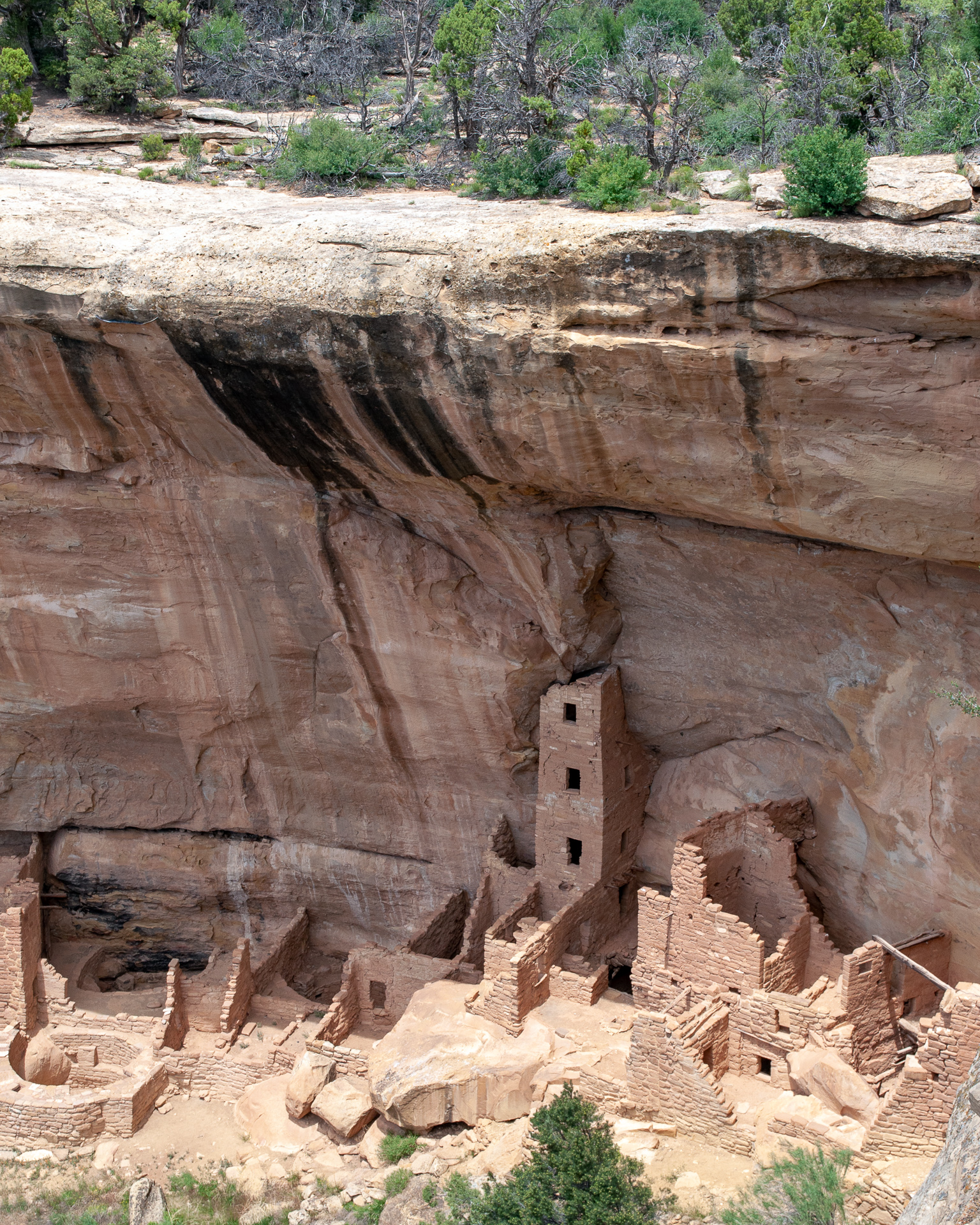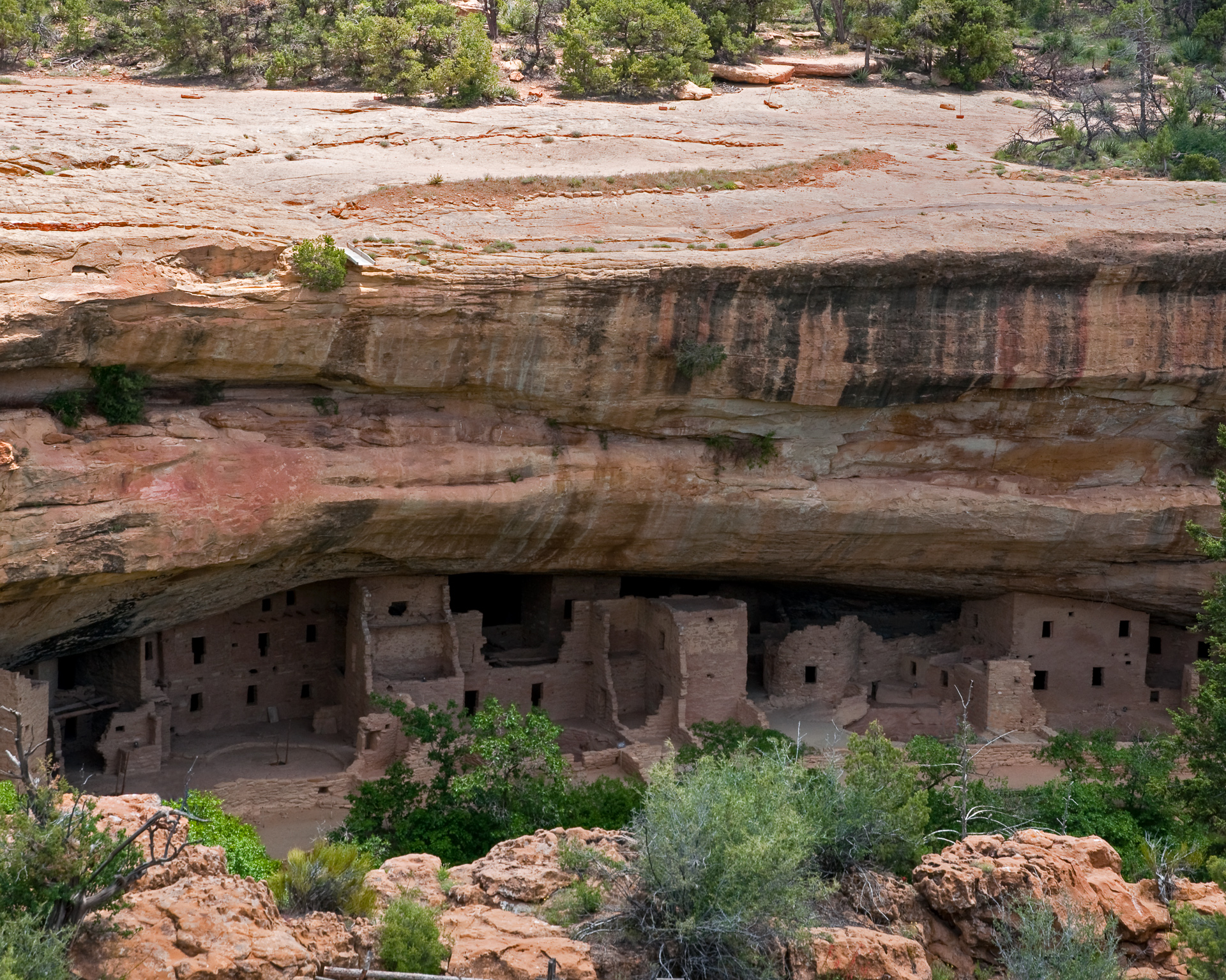 Besichtigt haben wir das frei zugängliche Spruce Tree Haus, und sind dann gemütlich den Mesa Top Loop abgefahren. Karten für die anderen Häuser wären wohl problemlos erhältlich gewesen, aber dort war der Andrang wesentlich größer wie am Spruce Tree Haus. Auf das Cliff Palace Haus hat man vom Loop aus übrigens einen hervorragenden Blick. Den Loop abfahren ist etwas anstrengend, weil zwischen den einzelnen Halten oft nur wenige hundert Meter liegen. Man wünscht sich da schon einen Wanderweg parallel zur Straße, so ein paar km auf völlig ebenen Grund sind ja nur ein Spaziergang.