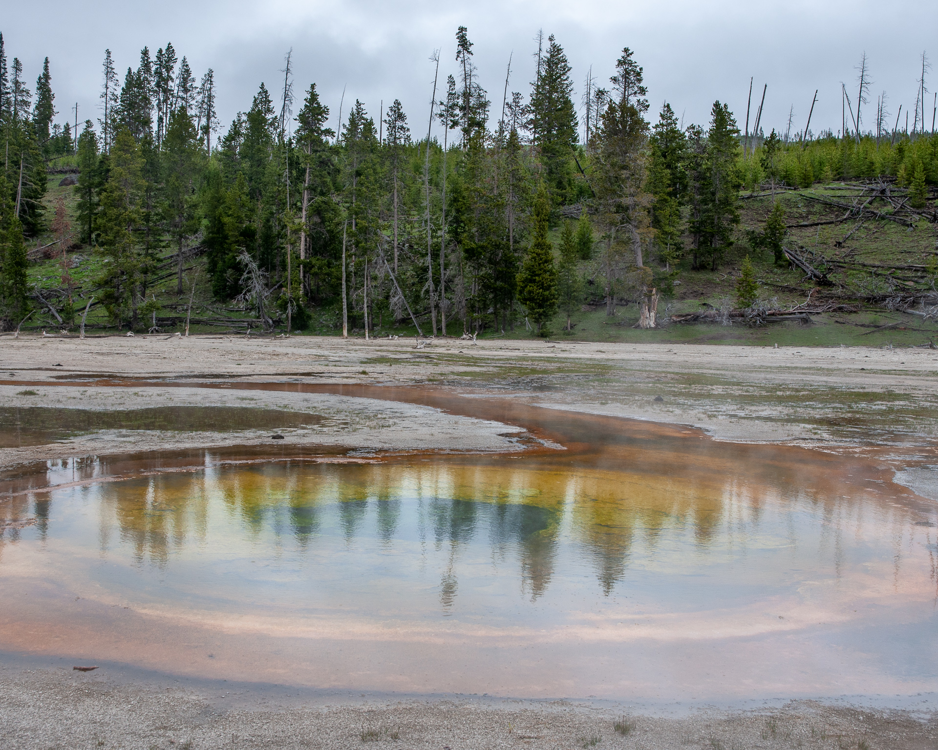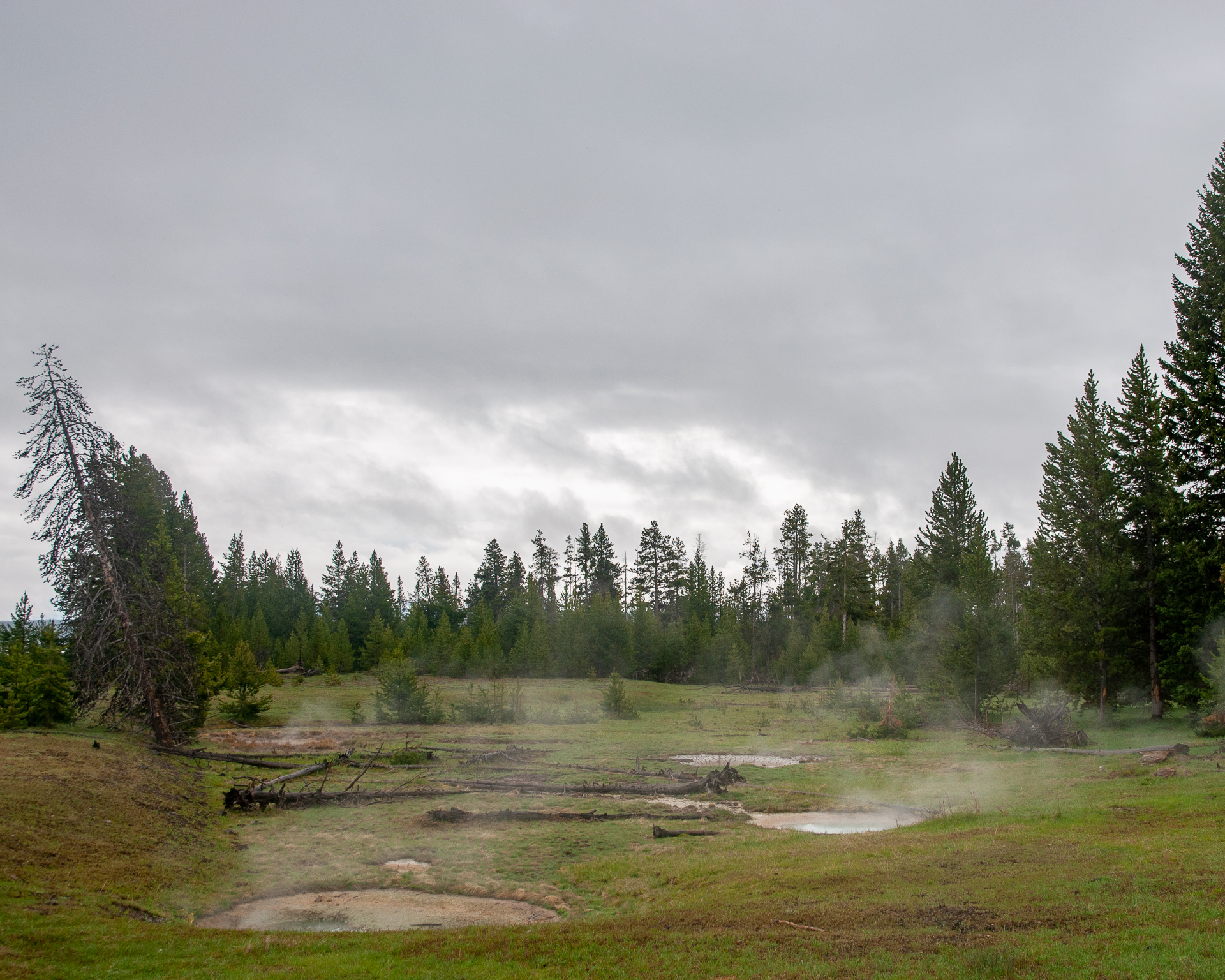 Wie man sieht war das Wetter im Laufe des Nachmittags immer besser geworden, zeitweise hatten wir sogar Sonnenschein. So ging dann ein interessanter Tag zu Ende, fürs Midway Geyser Bassin blieb schon keine Zeit mehr. Insgesamt waren wir gut 10 Stunden unterwegs gewesen. Ich hab den Tag mal nach den Zeitstempeln der Fotos rekonstruiert, vielleicht ganz interessant: