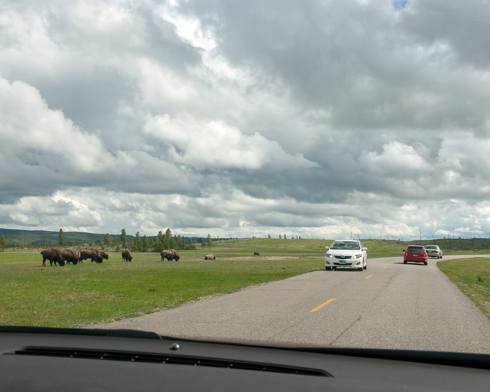 Mit der Ruhe war es aber schnell vorbei, als wir West Thumb verließen, kam der erste Bus mit vielen Japanerinnen an, die stellten sich dann nach gerade mal 5 Minuten Fahrt alle am Klohäuschen an…